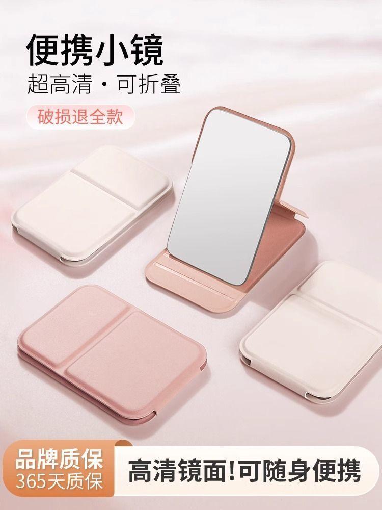 Espejo de maquillaje de dibujos animados, lindo espejo pequeño plegable para dormitorio de estudiantes, espejo de escritorio para viaje, espejo de tocador