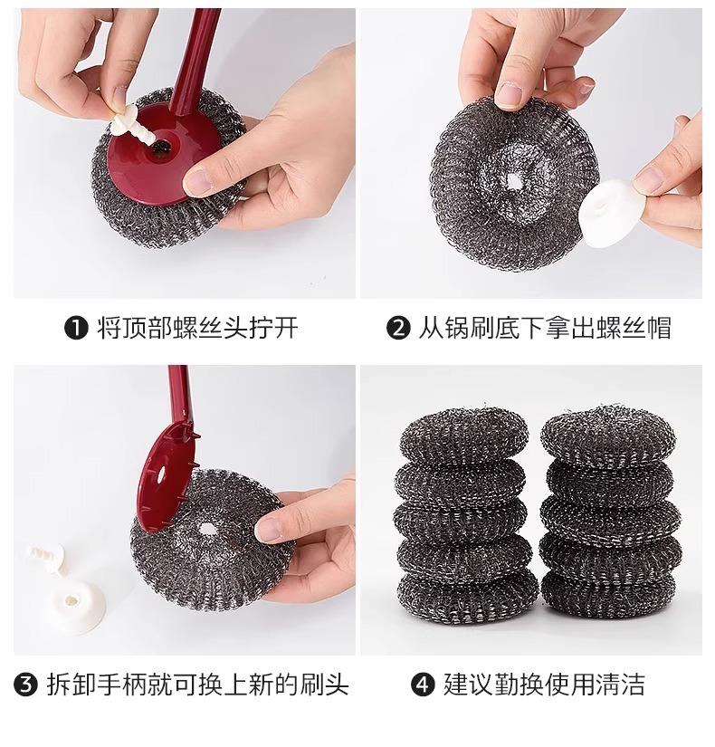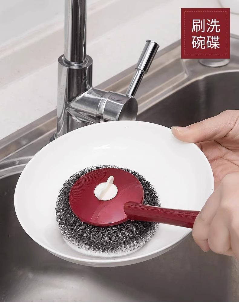 Bola de Alambre de Acero Inoxidable que no se Desprende para Lavar Ollas, Lavar Ollas, Lavavajillas, Mango para Lavavajillas, Bola Limpiadora de Cepillos, Cocina