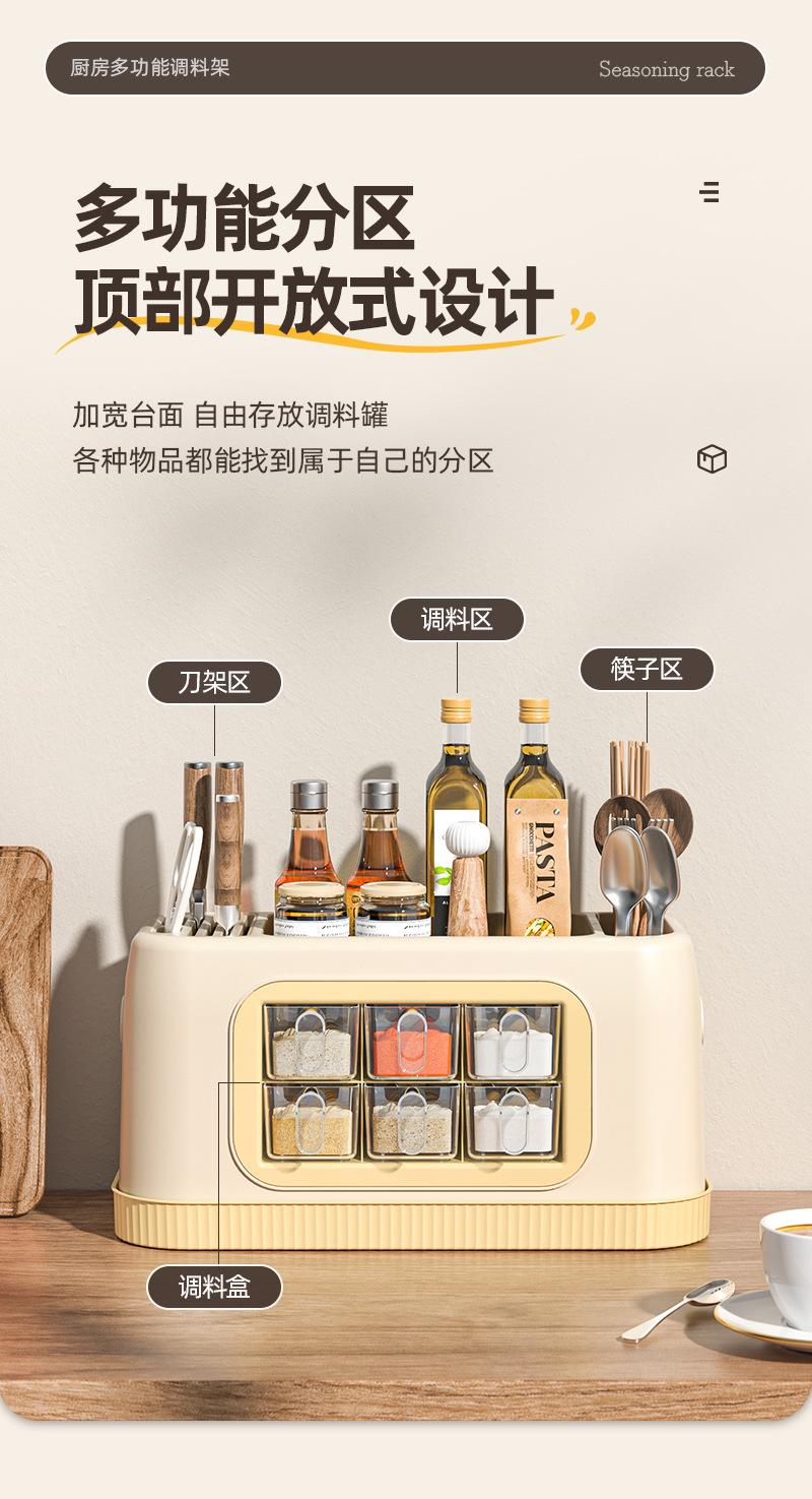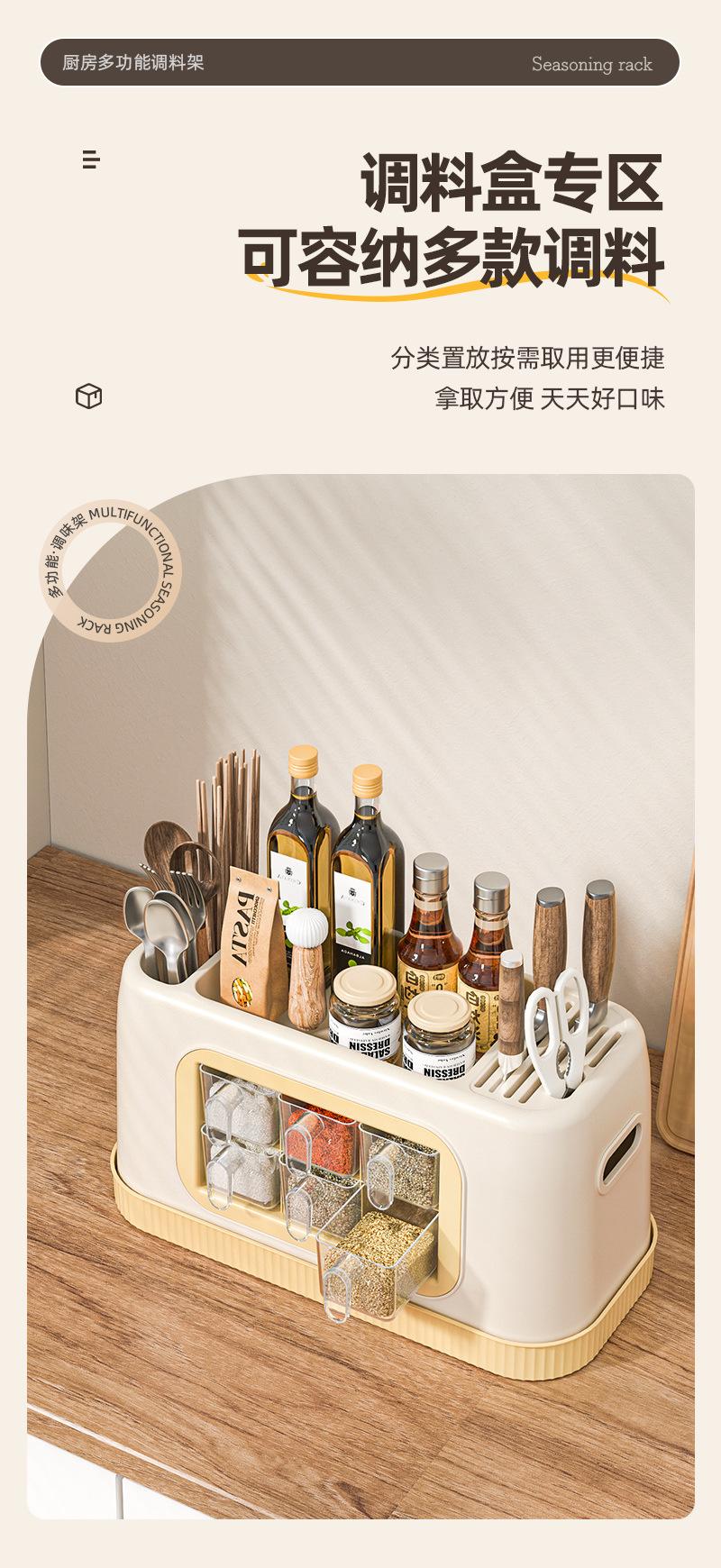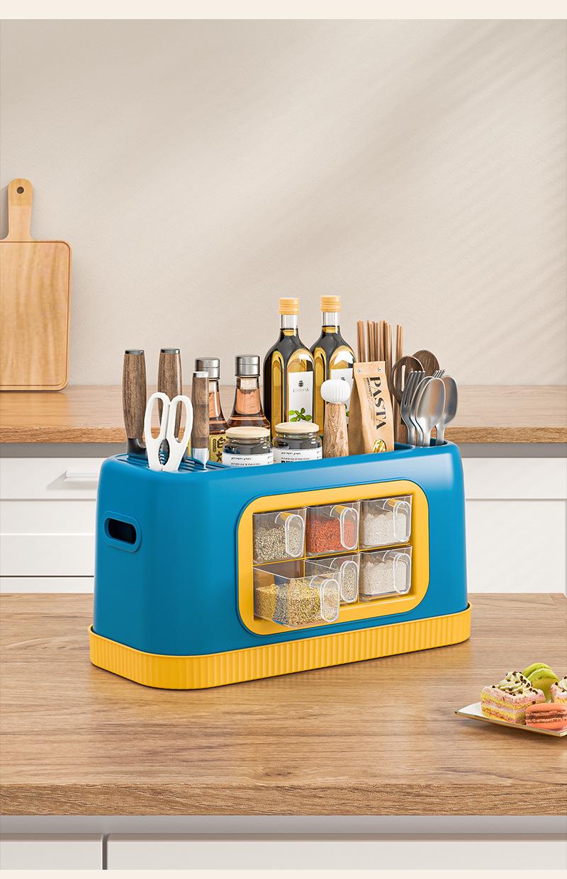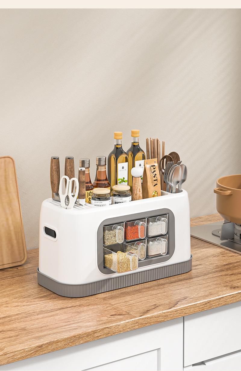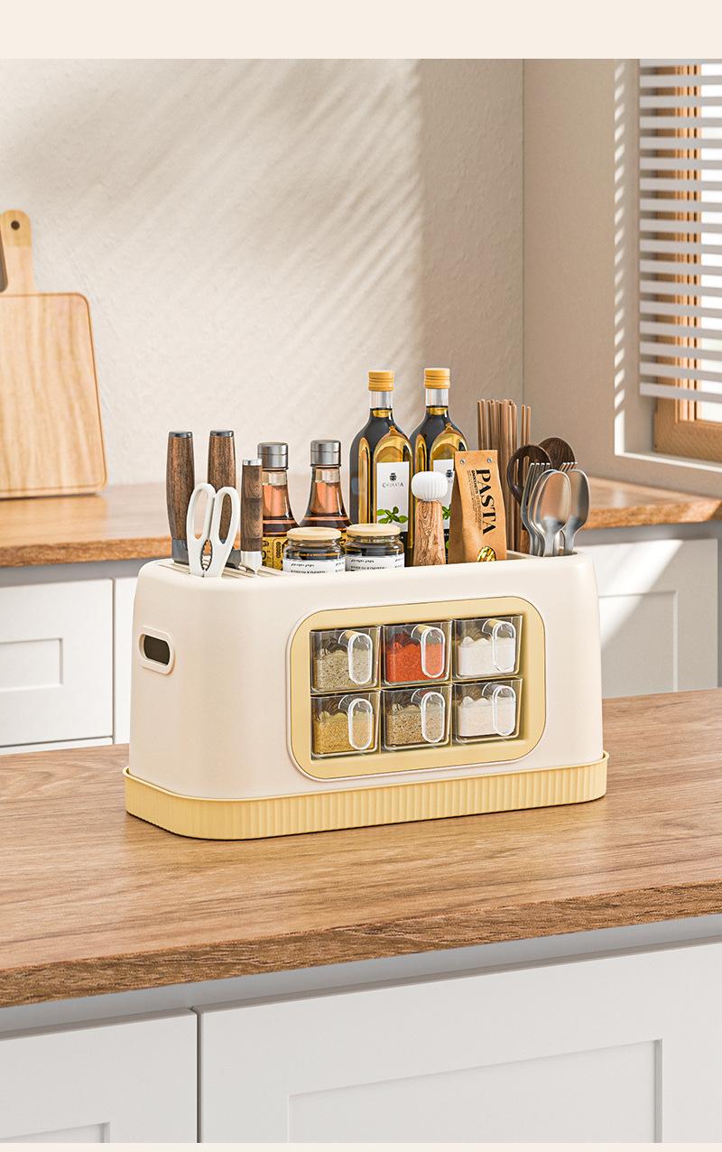 Caja de condimentos combinada, adecuada para el hogar, estante para cuchillos, suministros de cocina, estante de almacenamiento de condimentos, caja de almacenamiento multifuncional con múltiples compartimentos integrados