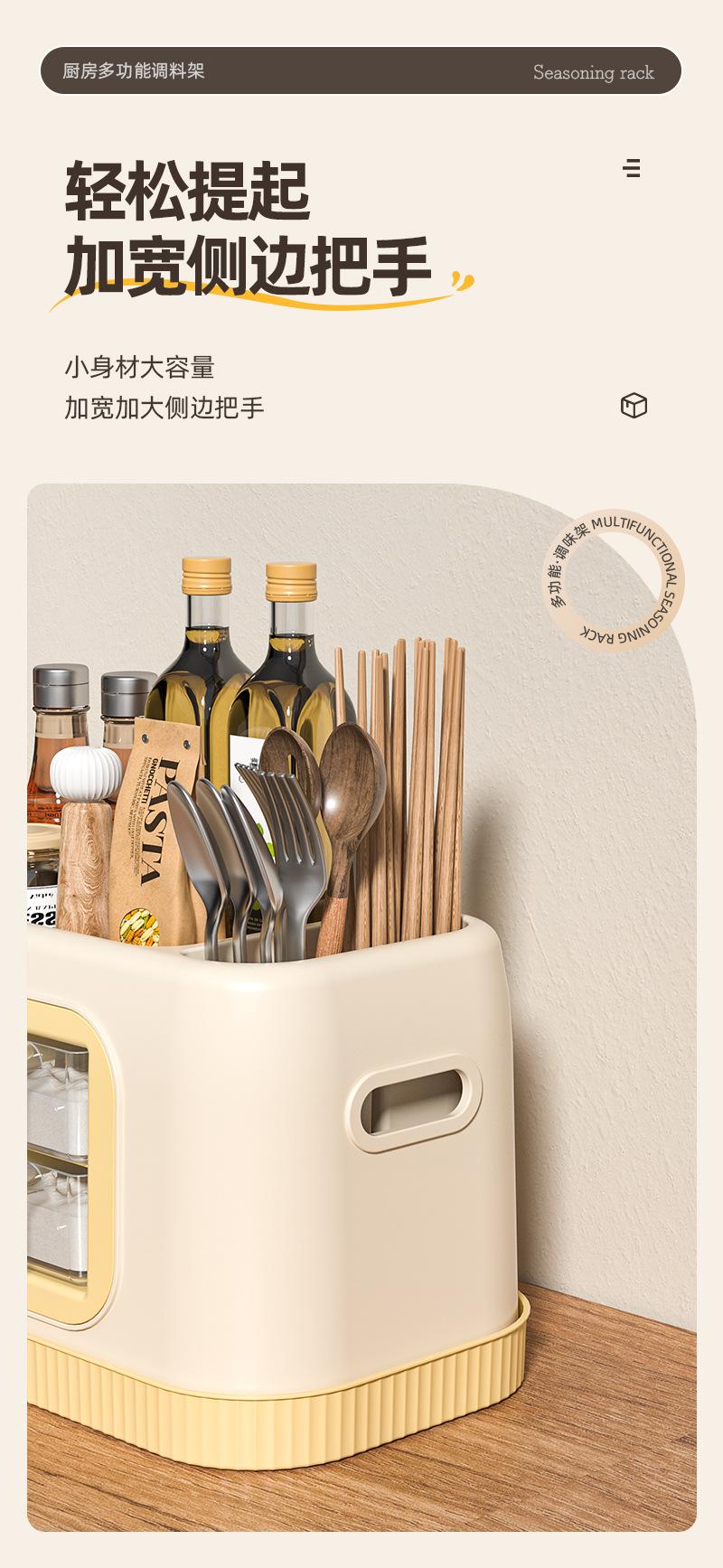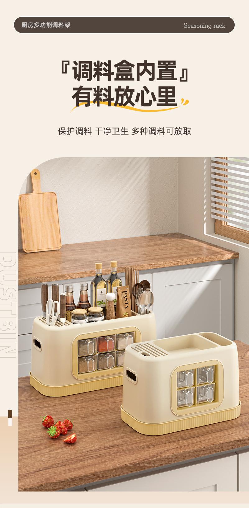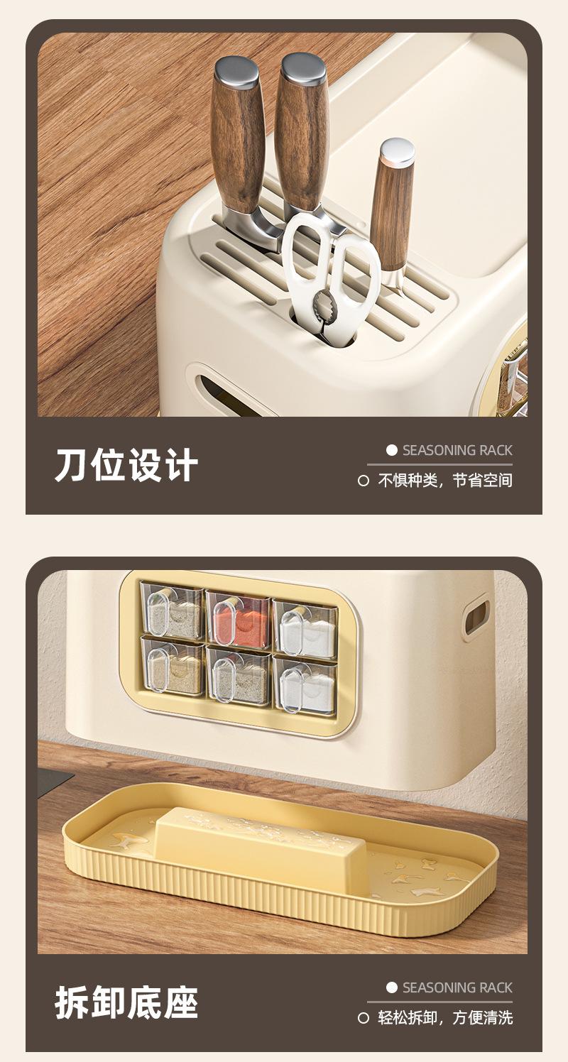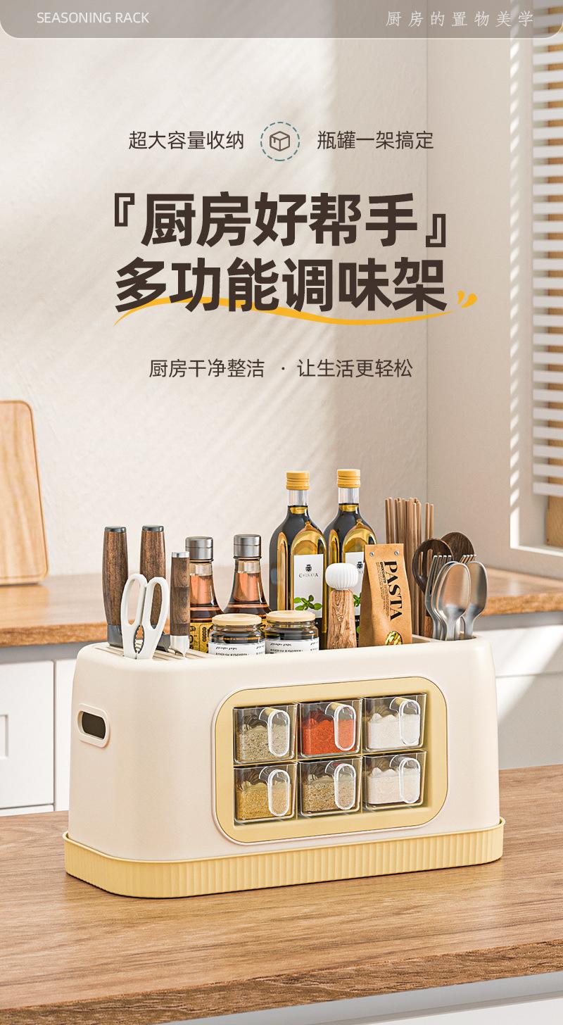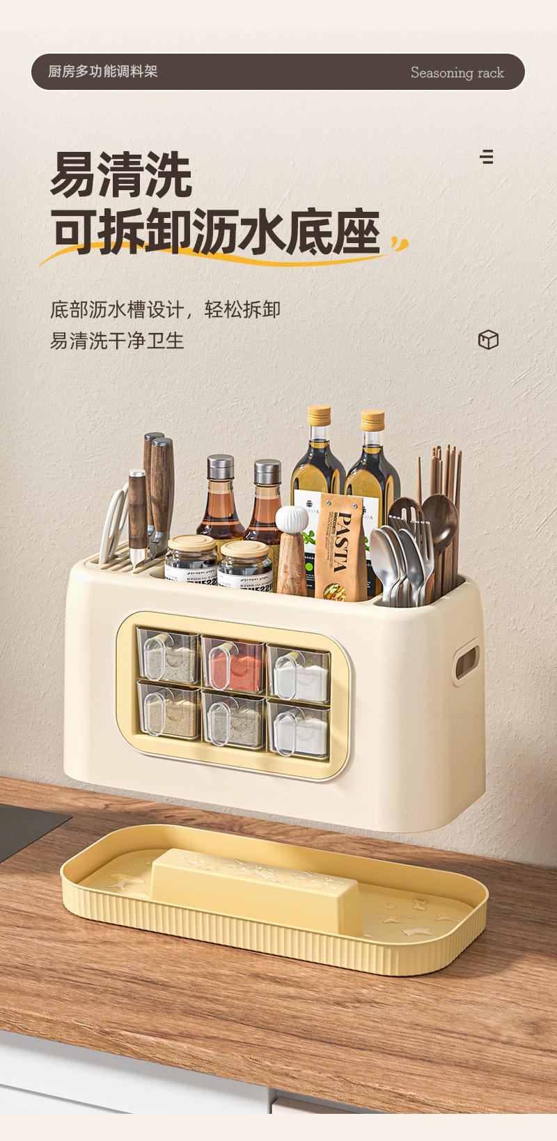 Caja de condimentos combinada, adecuada para el hogar, estante para cuchillos, suministros de cocina, estante de almacenamiento de condimentos, caja de almacenamiento multifuncional con múltiples compartimentos integrados
