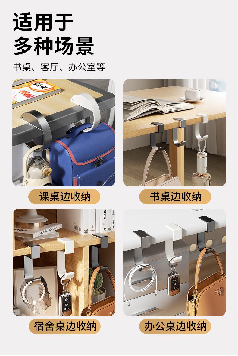 Gancho para colgar bolsas de escritorio, gancho extraíble, gancho para colgar bolsas de estudiantes, gancho portátil lateral para escritorio sin perforaciones