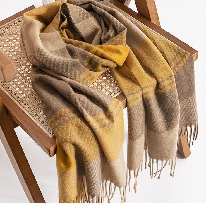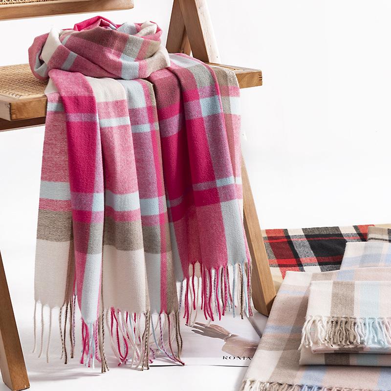Bufanda de Moda para Mujer Chal Largo Invierno Grueso Cálido Bufanda Grande a Cuadros Chal Envolvente al Tacto de Imitación Cachemira