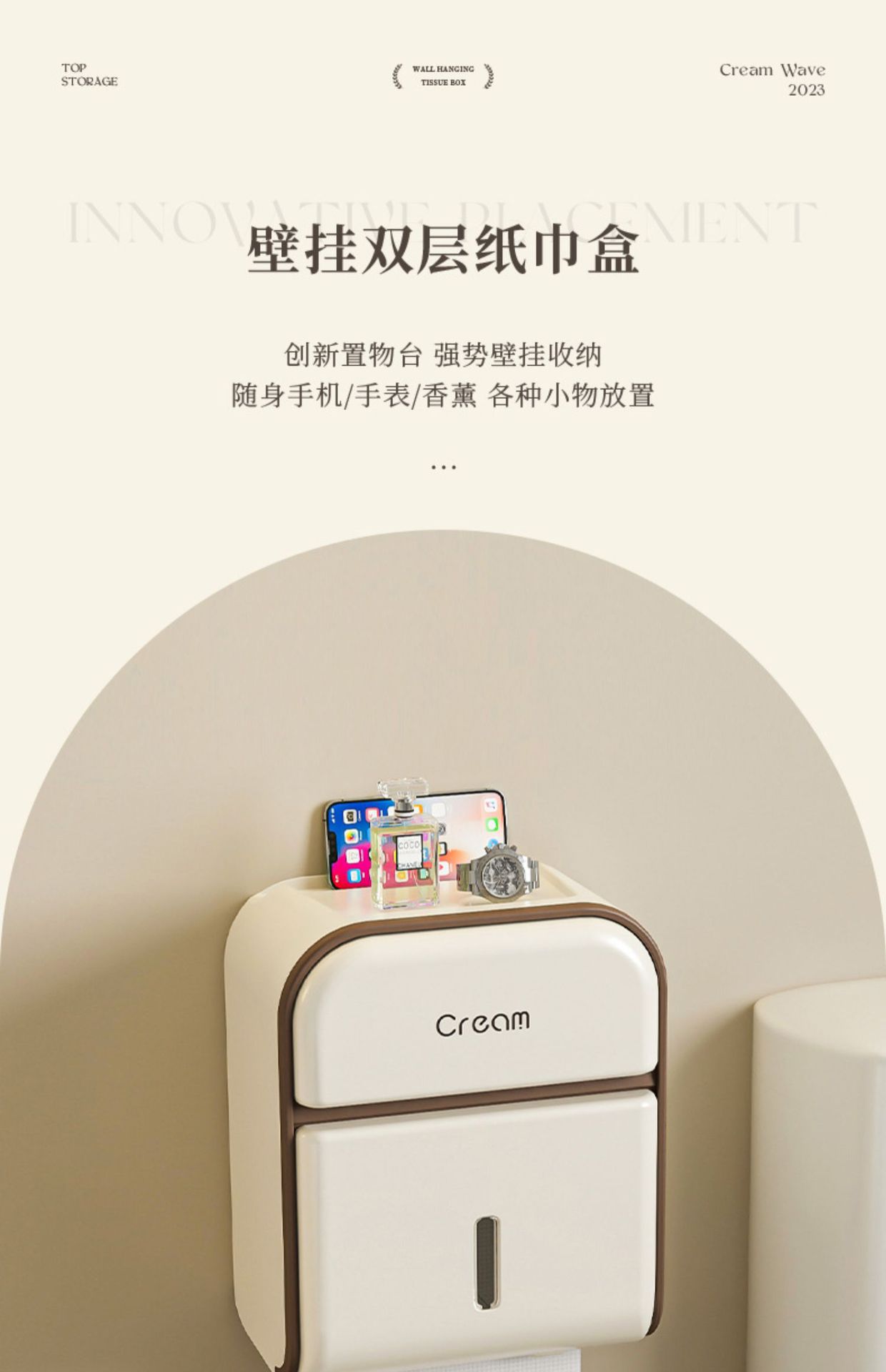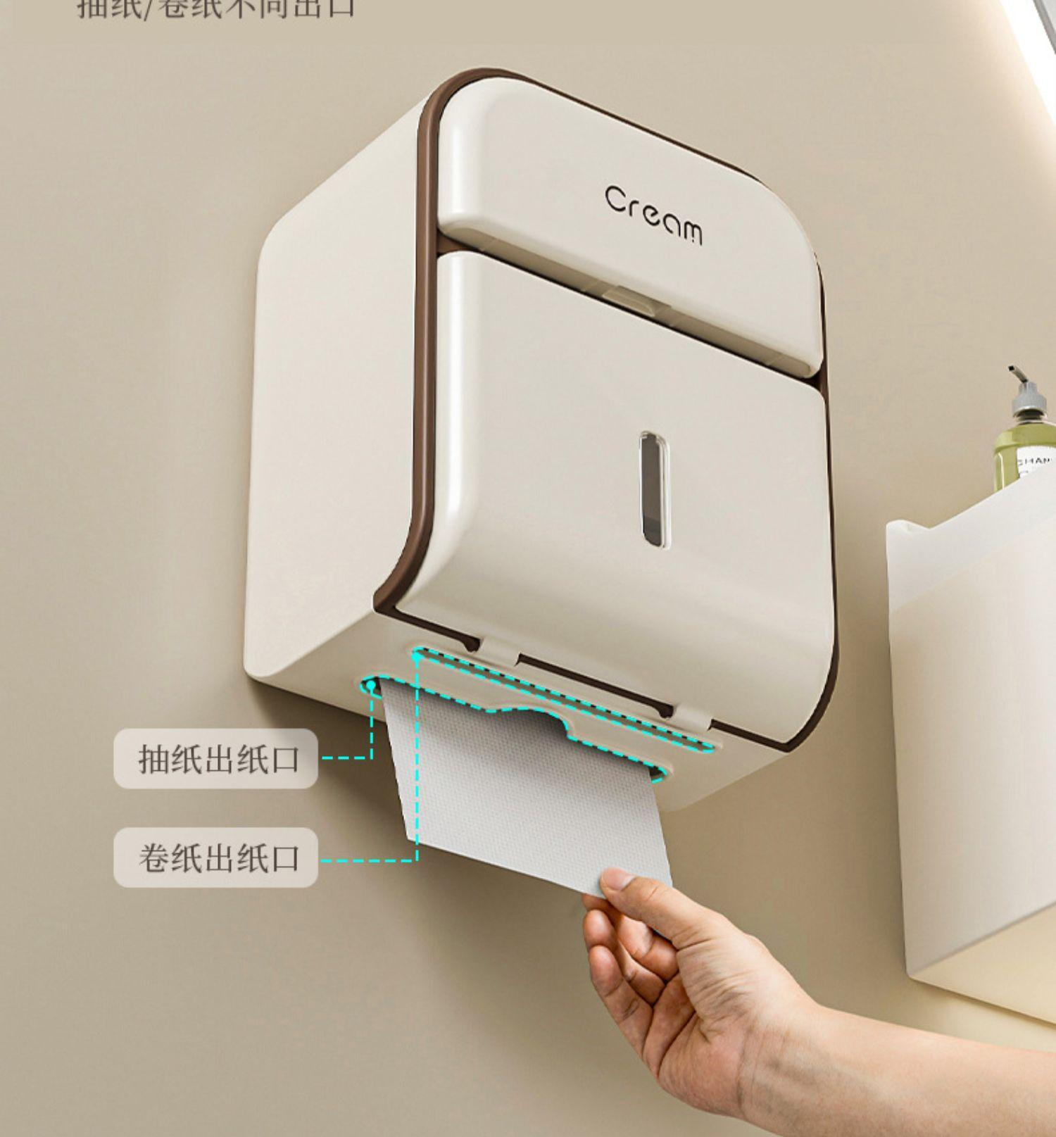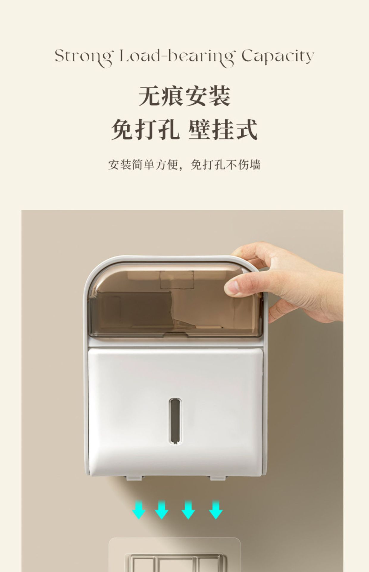 Caja de papel higiénico, caja de pañuelos de pared, caja de papel higiénico impermeable sin perforaciones, estante de almacenamiento de rollos de papel higiénico