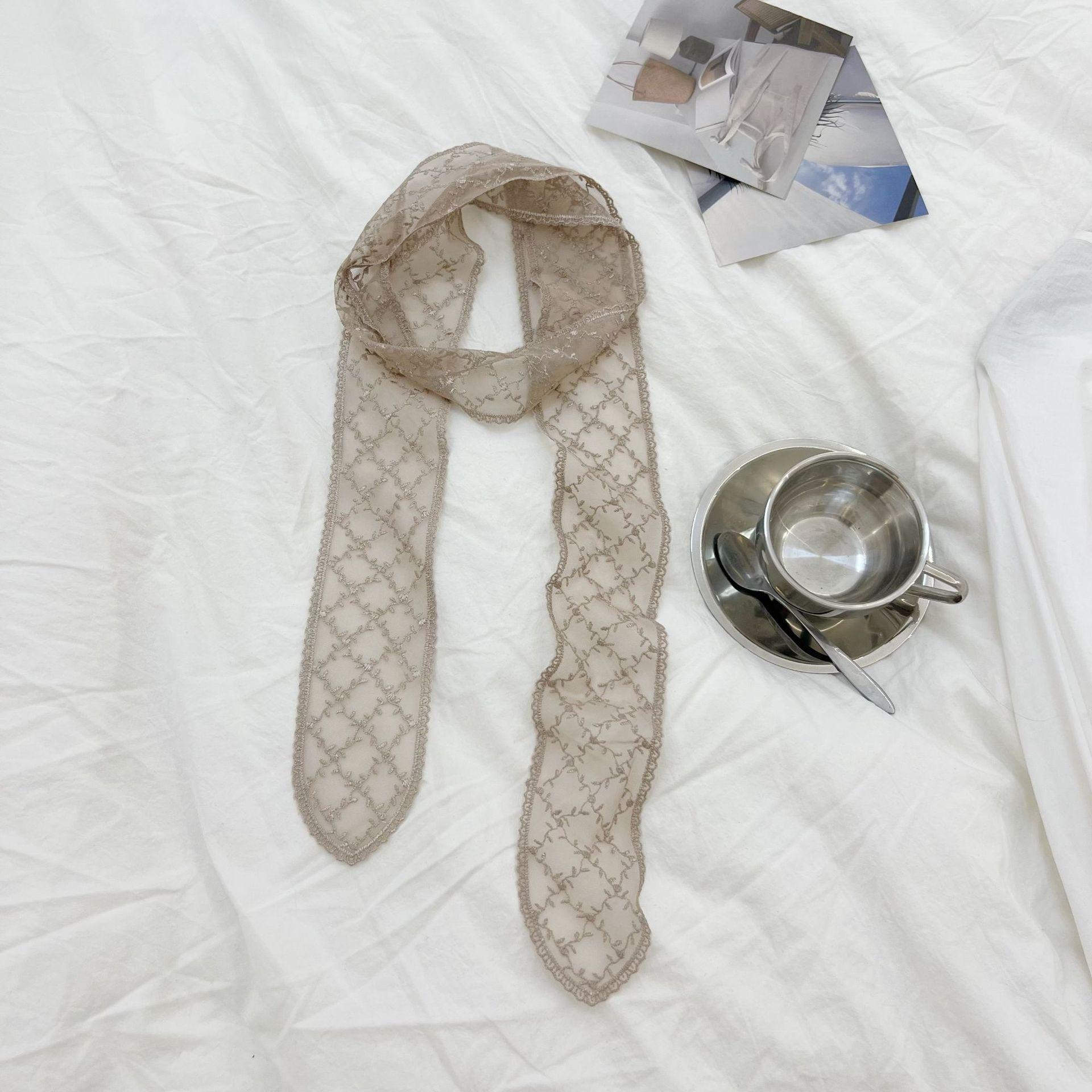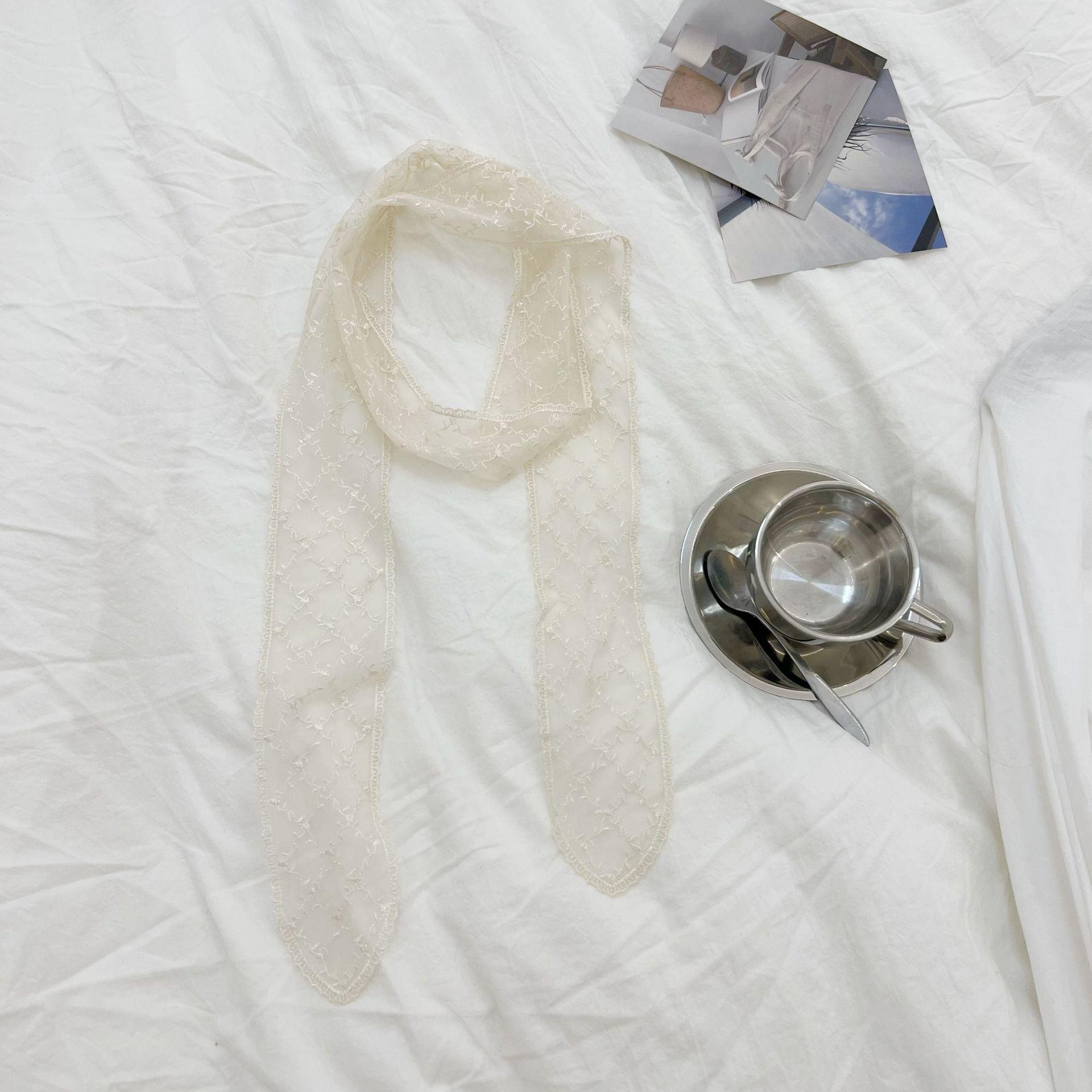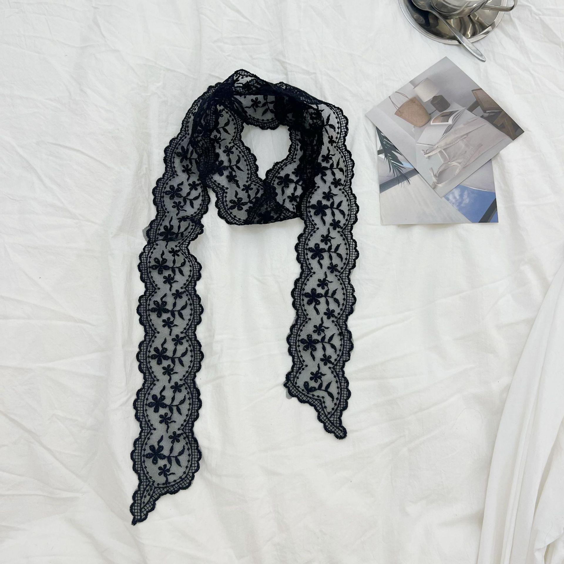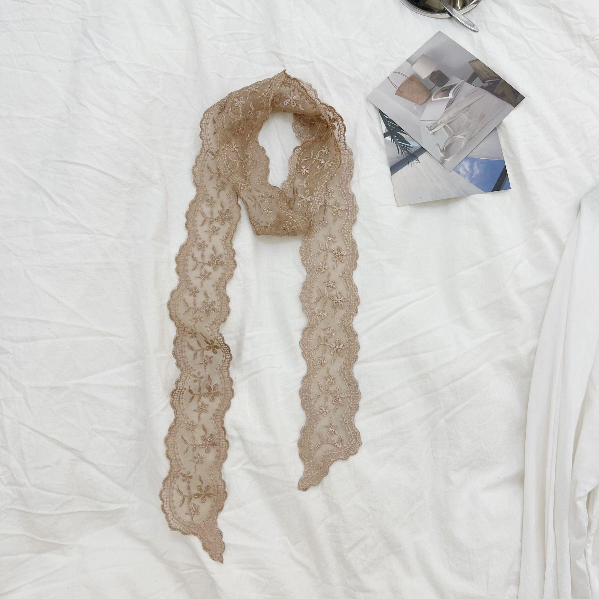 Elegante Coreano Retro Encaje Cinturón Diadema Cinta Larga Bufanda Decorativa Ins Bufanda de Seda Pequeña Collar Bufanda de Seda para Mujer