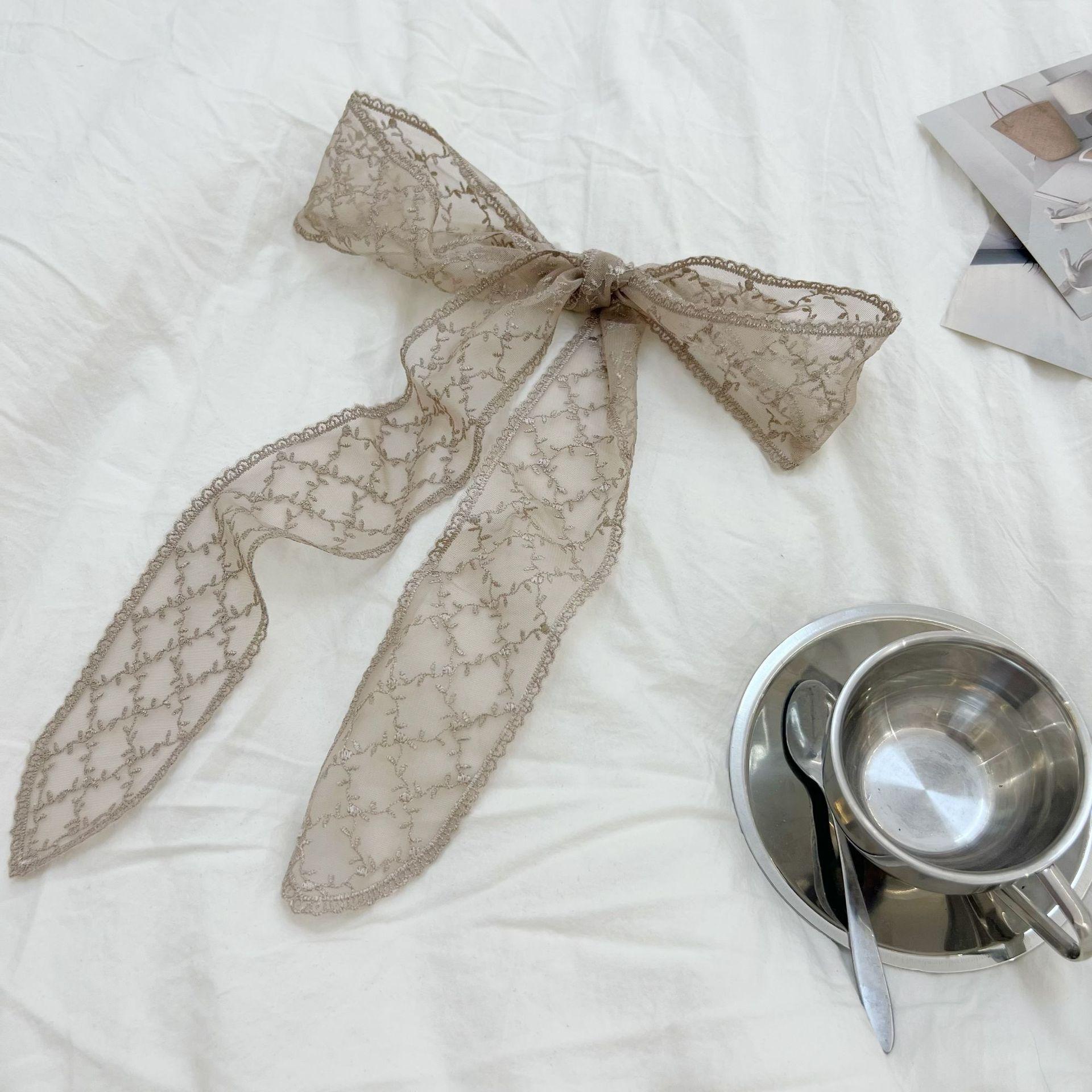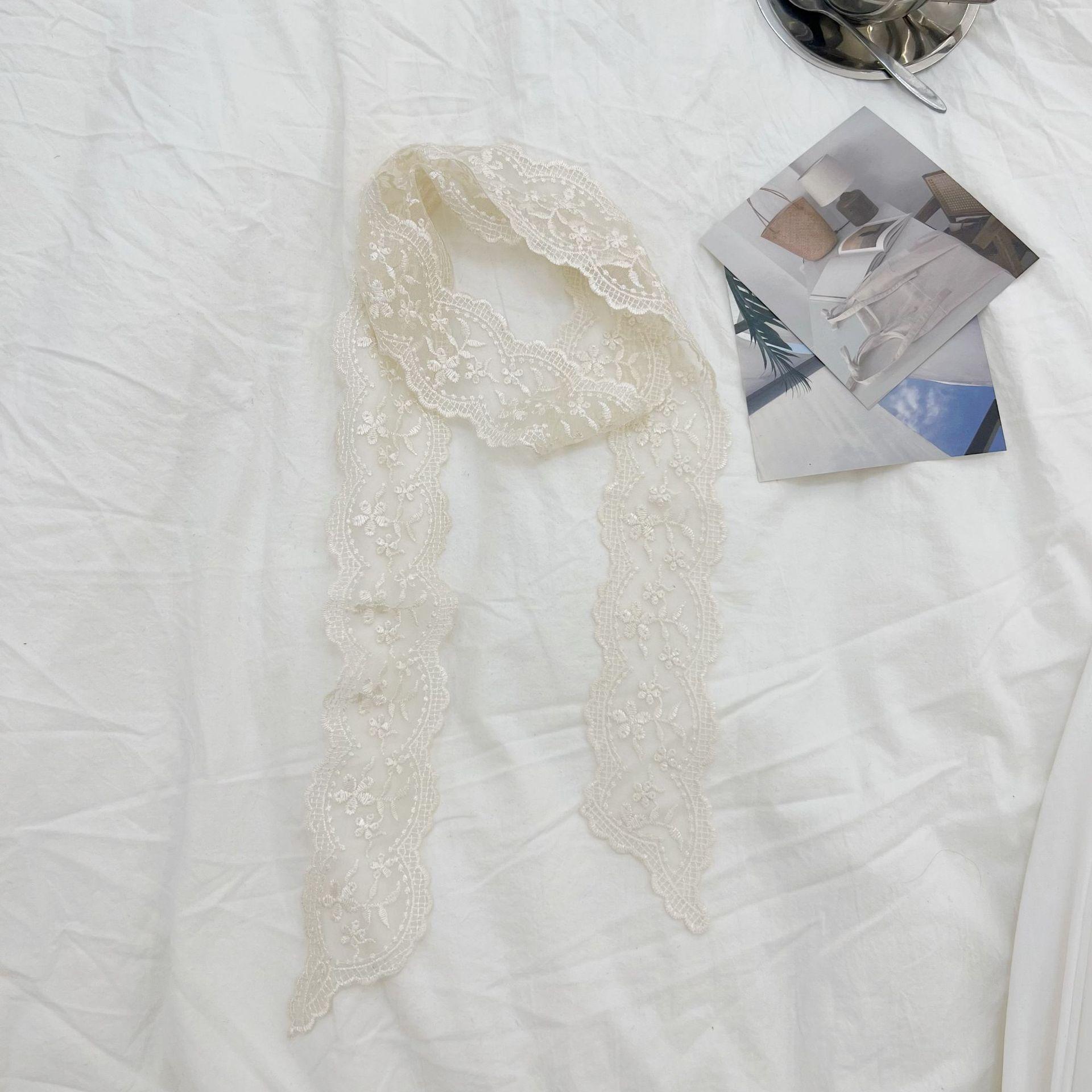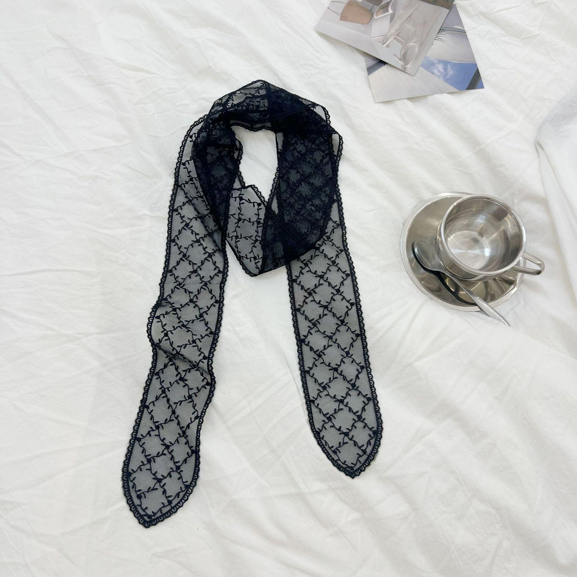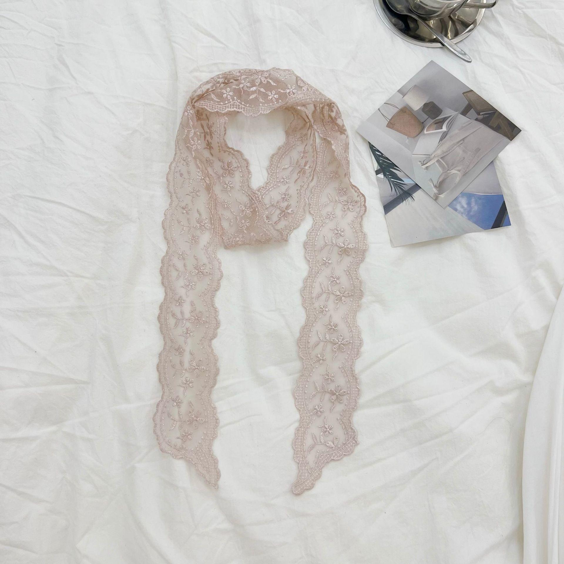 Elegante Coreano Retro Encaje Cinturón Diadema Cinta Larga Bufanda Decorativa Ins Bufanda de Seda Pequeña Collar Bufanda de Seda para Mujer
