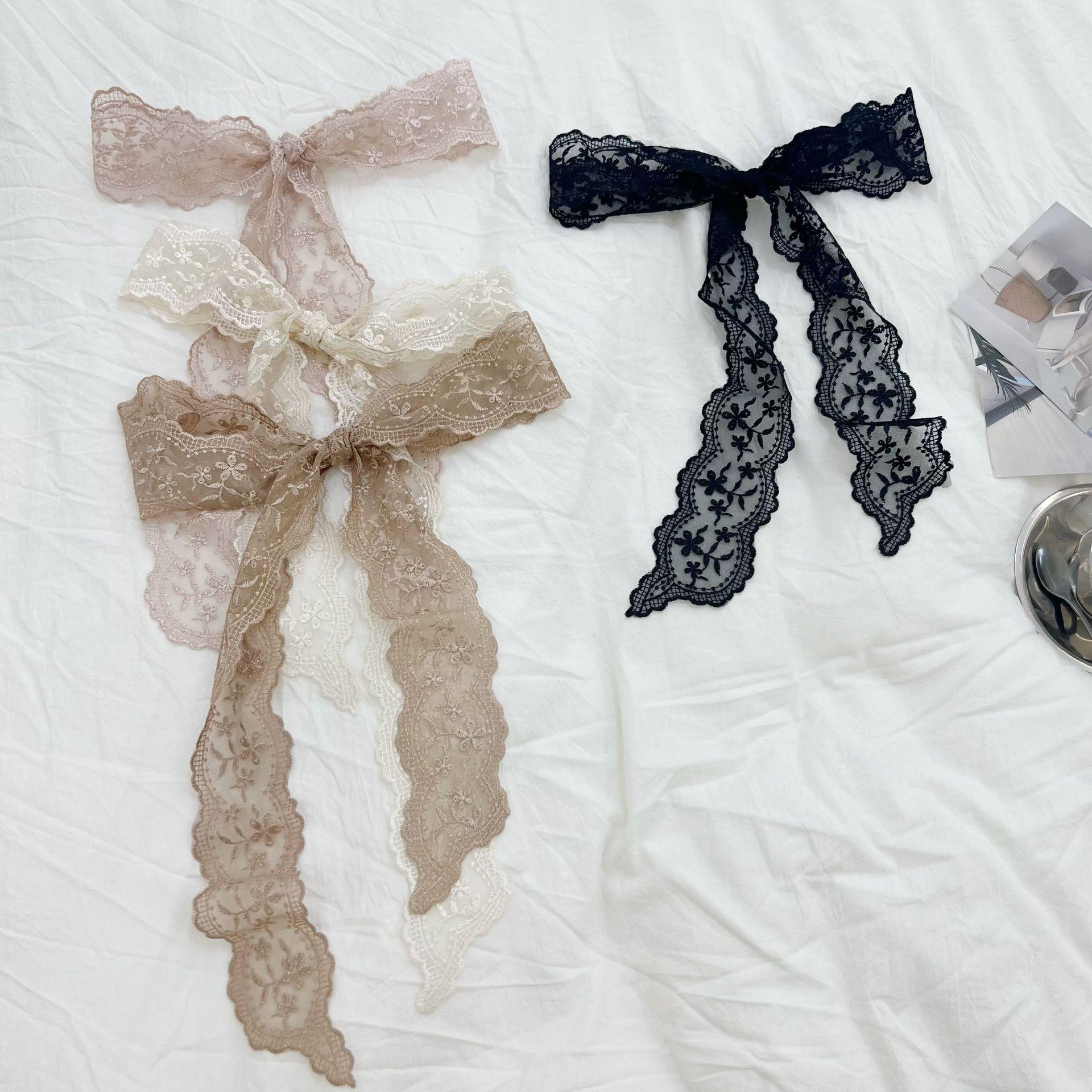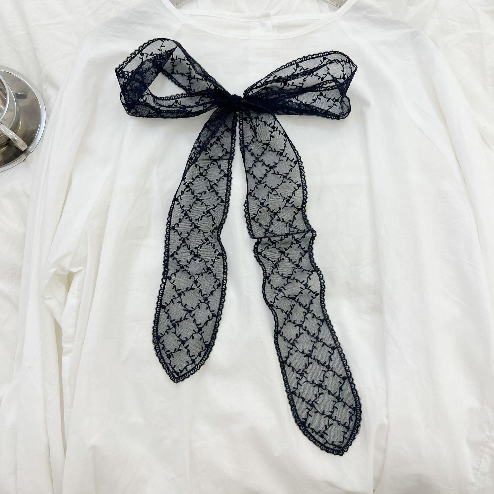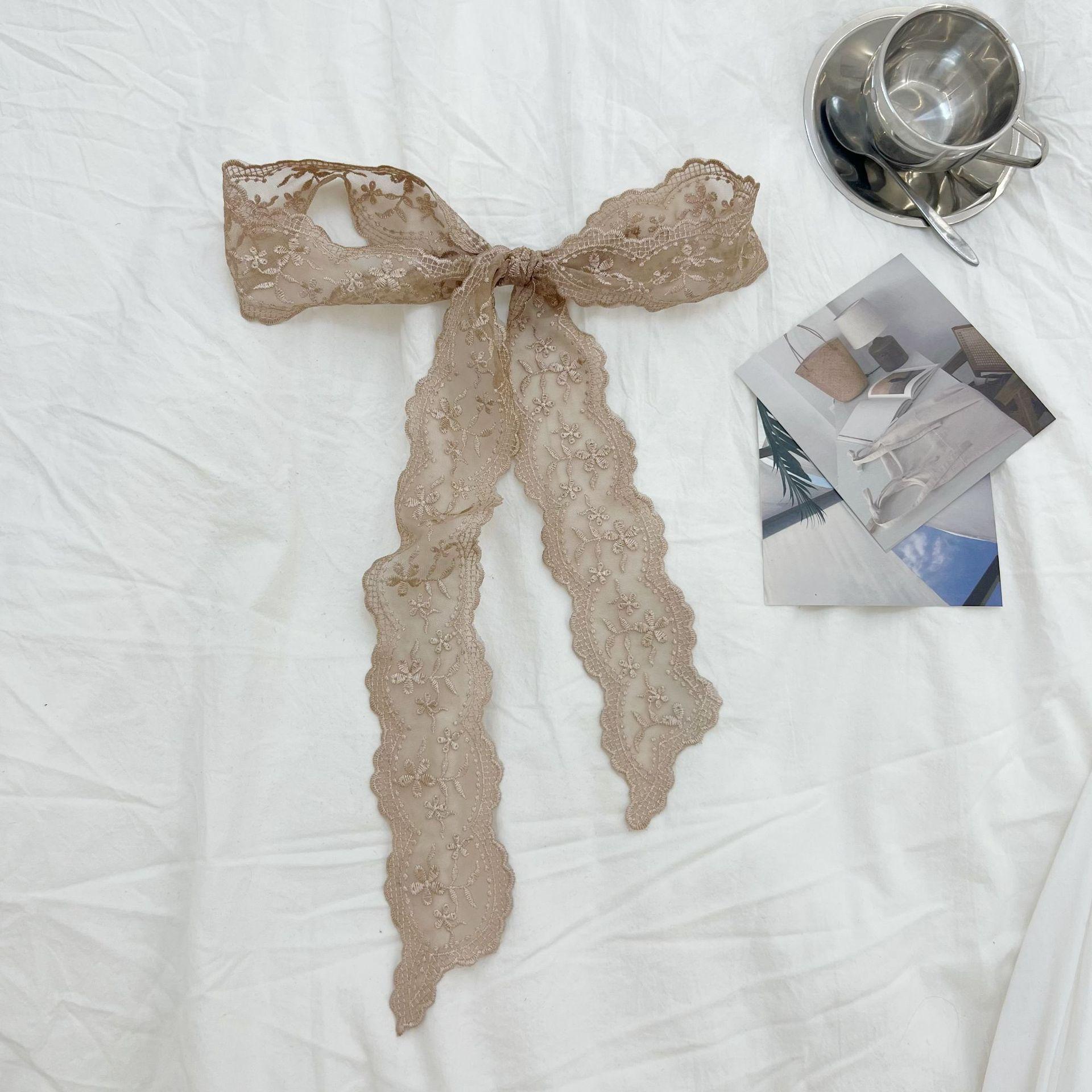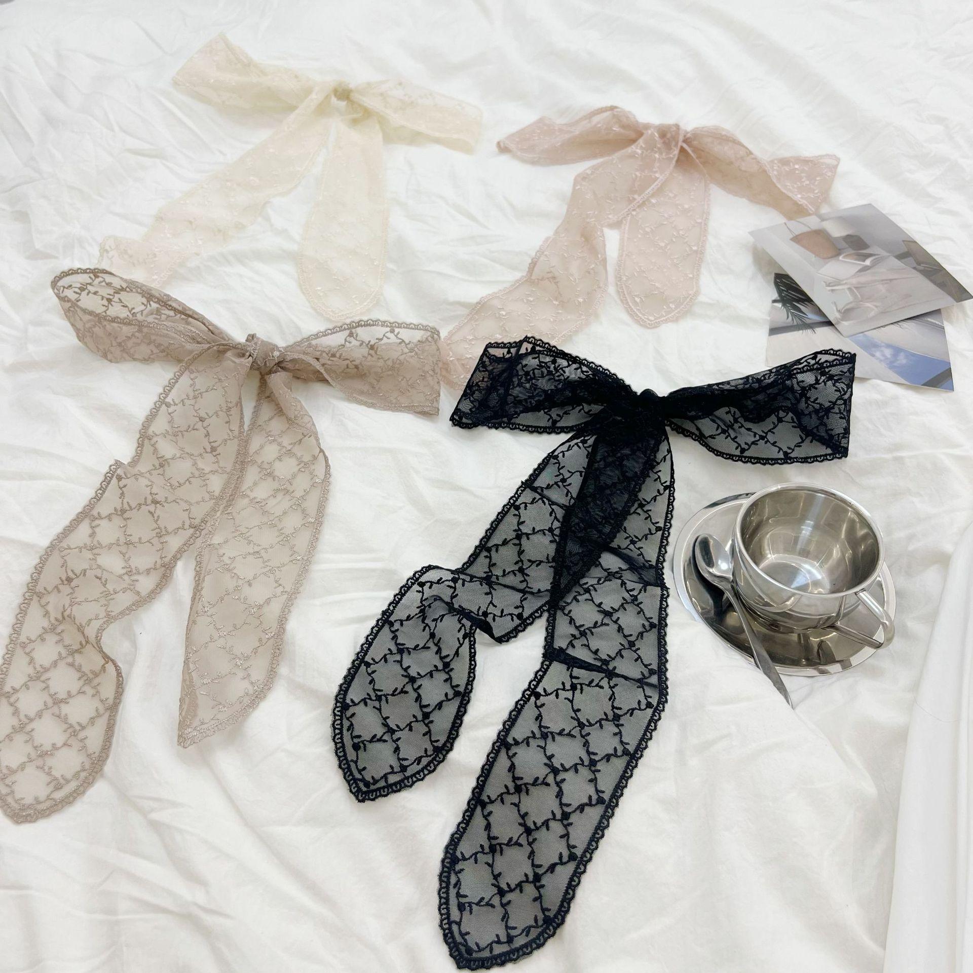 Elegante Coreano Retro Encaje Cinturón Diadema Cinta Larga Bufanda Decorativa Ins Bufanda de Seda Pequeña Collar Bufanda de Seda para Mujer