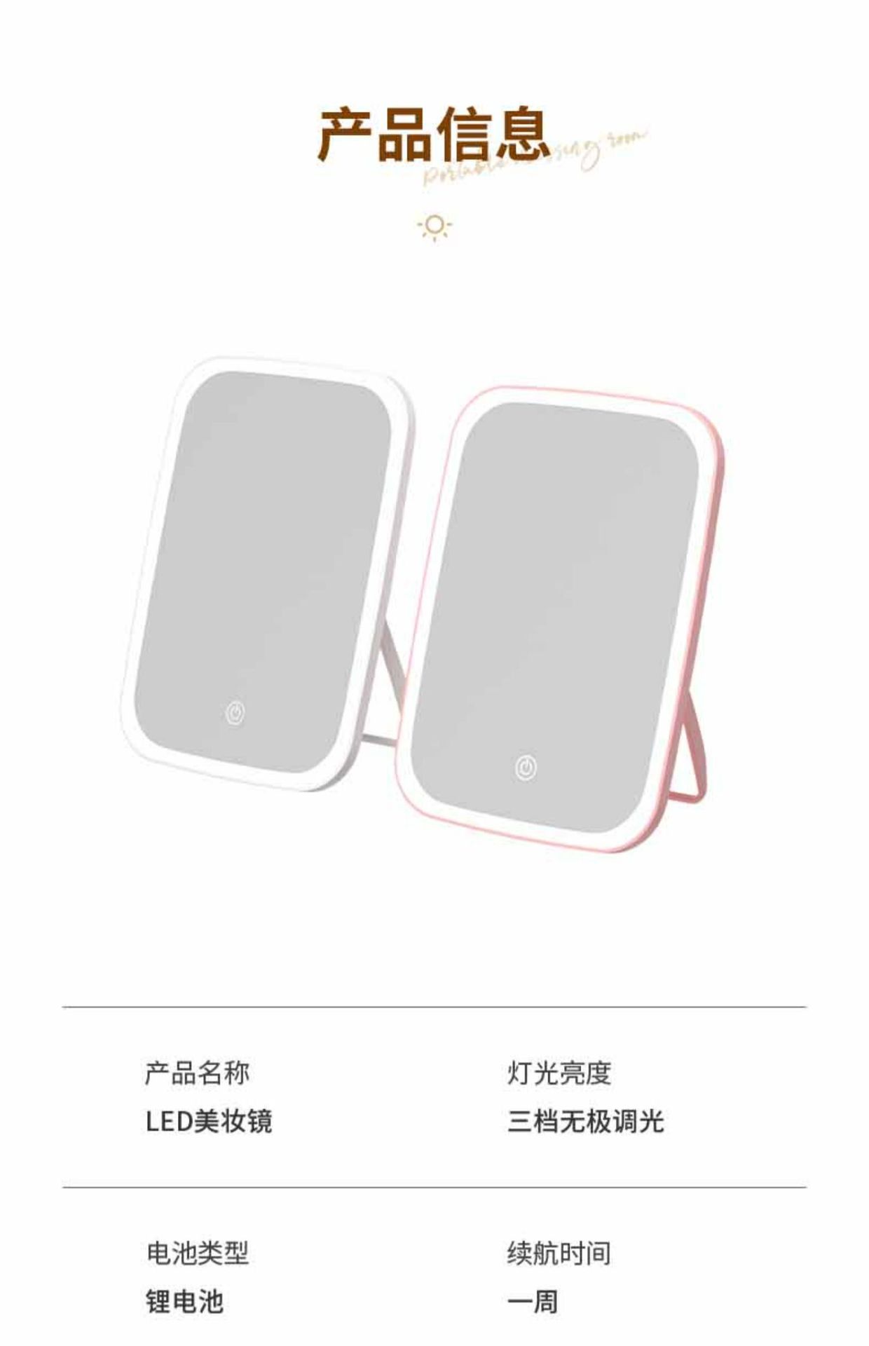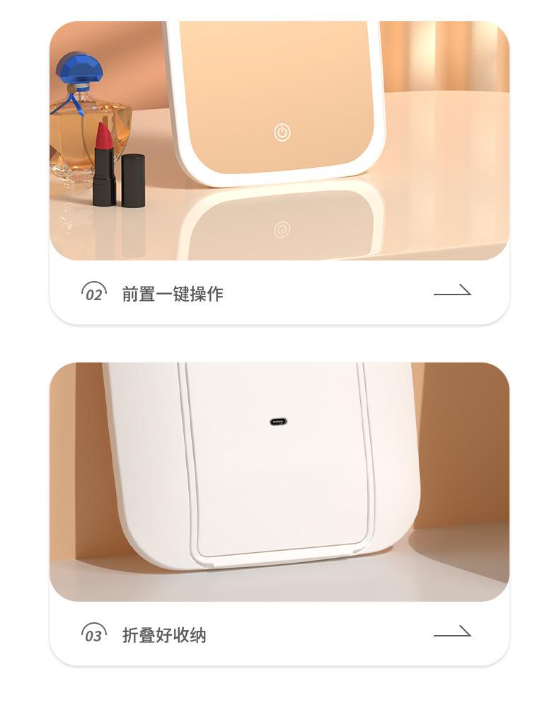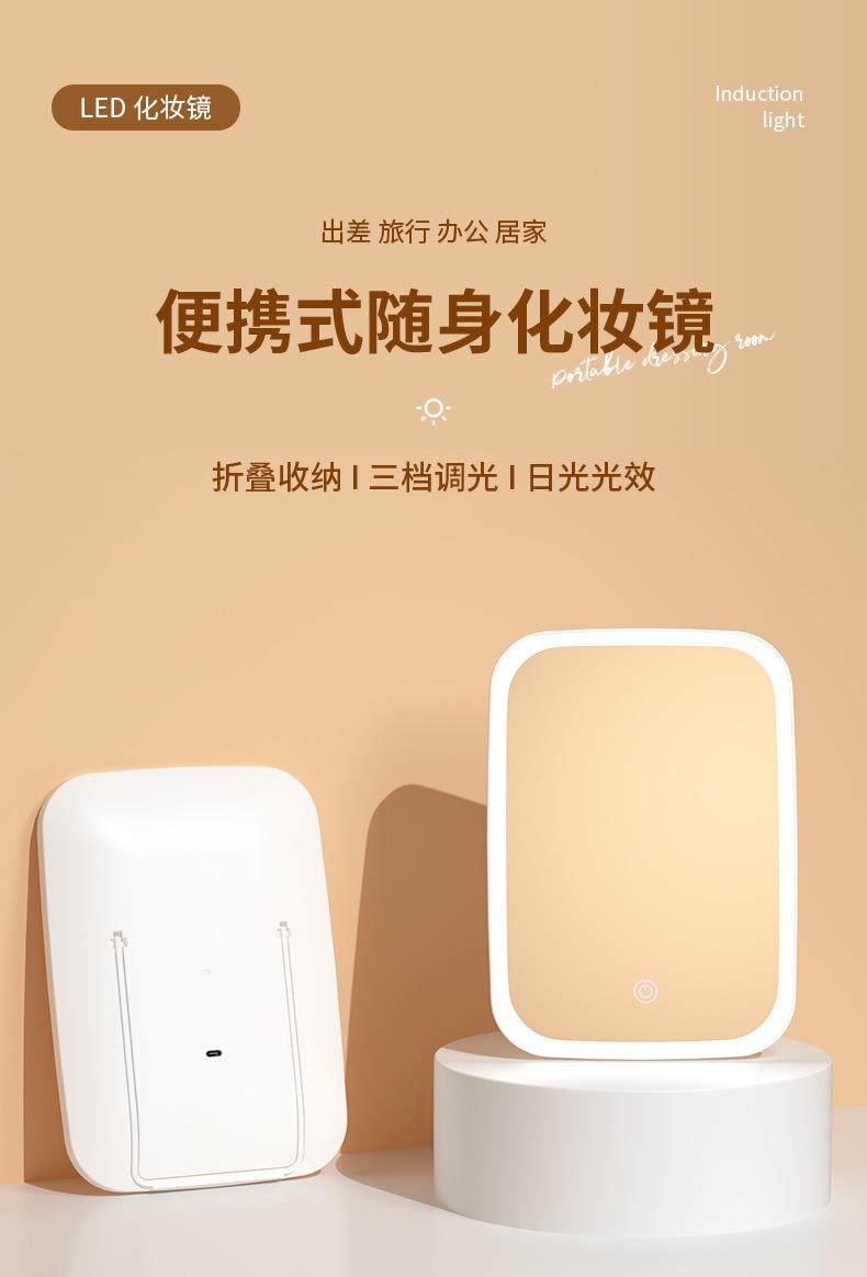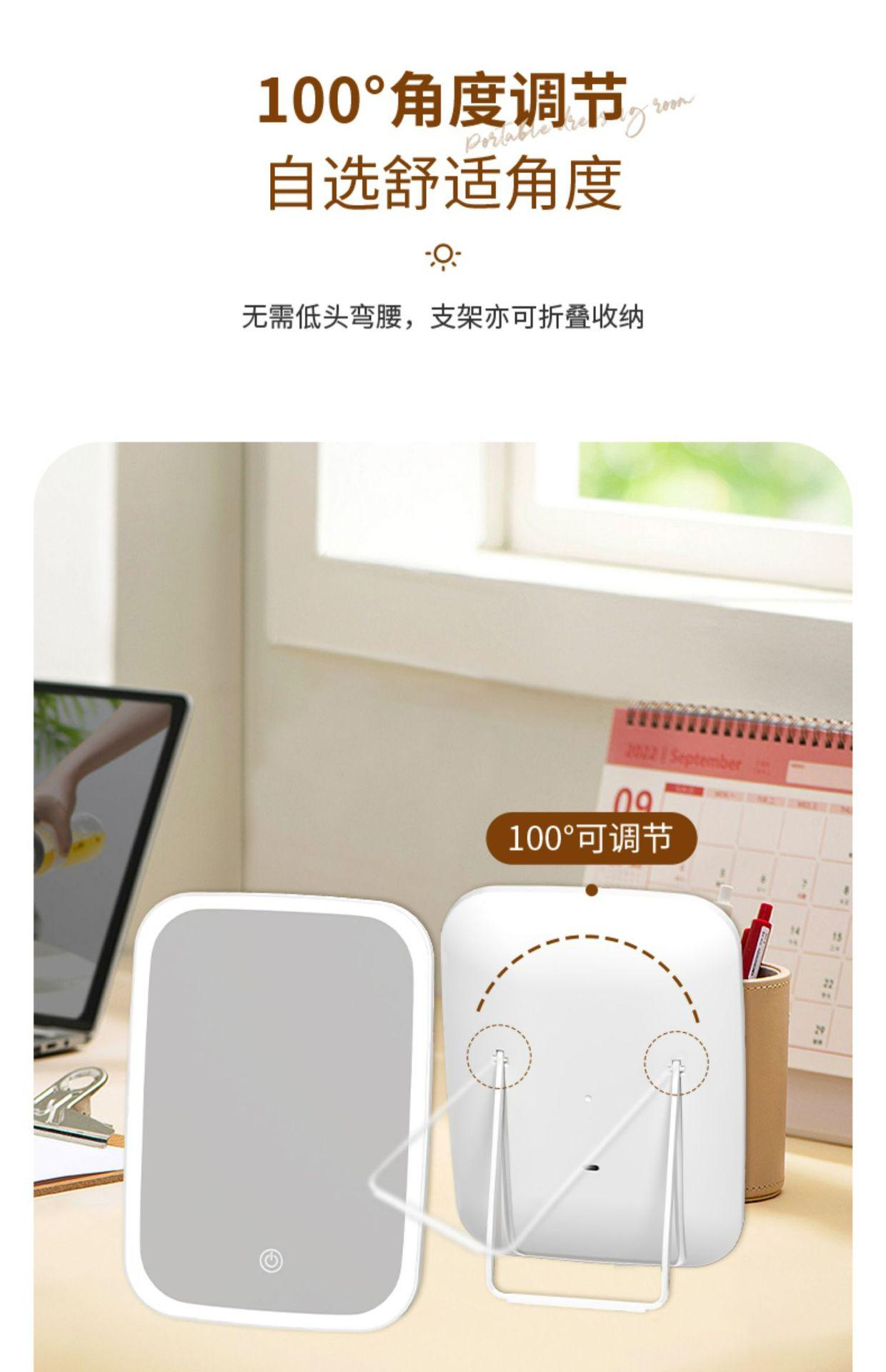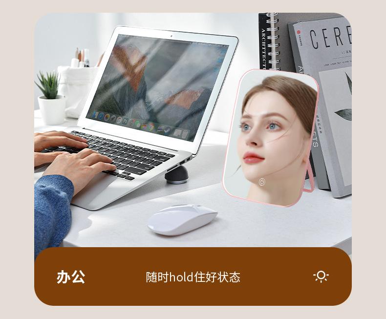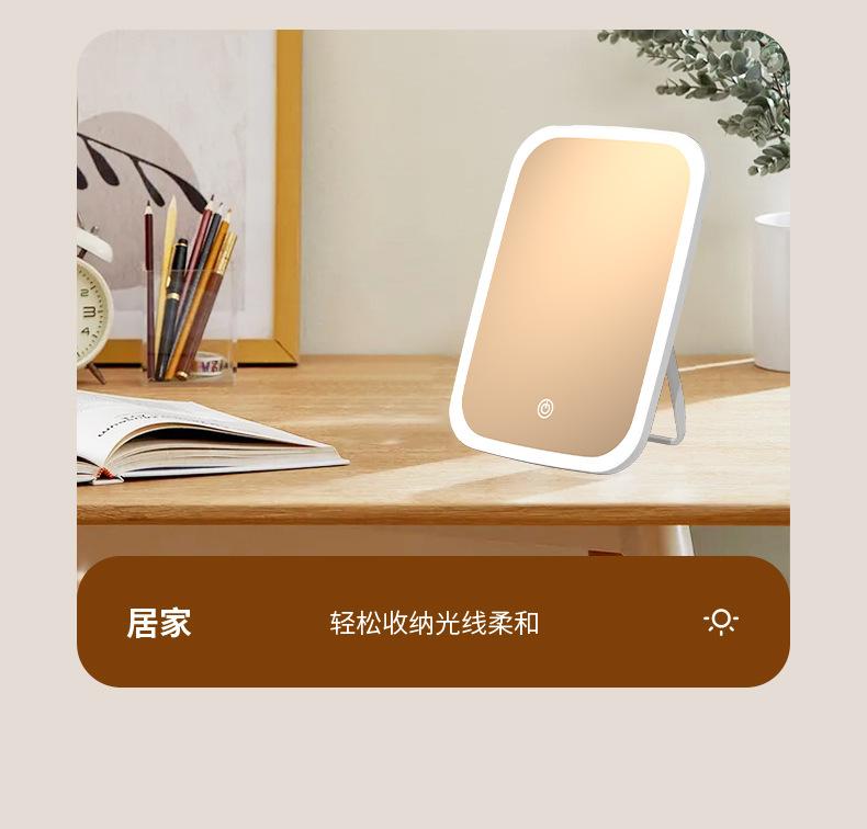 Espejo de maquillaje LED con luz de relleno, plegable, para mujer, estilo de celebridad de Internet, para estudiantes, pequeño espejo portátil de escritorio para dormitorio.