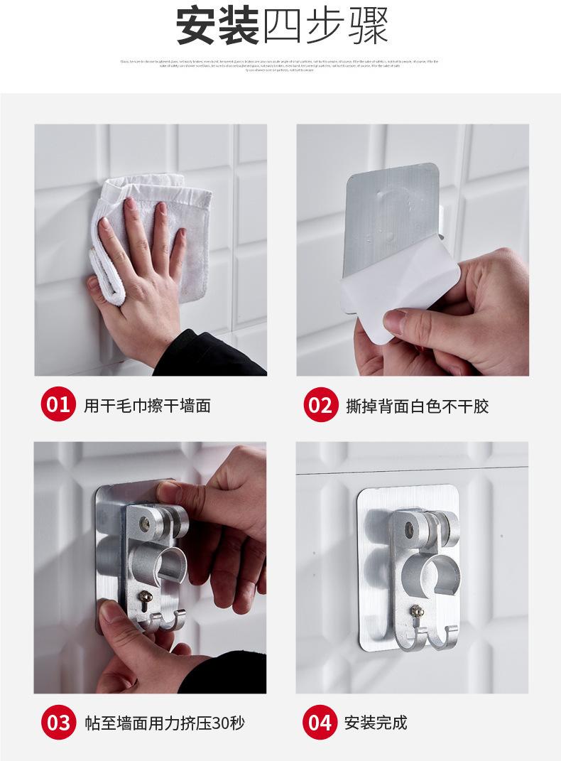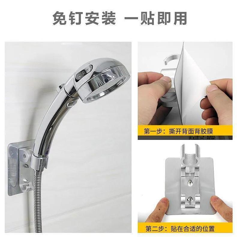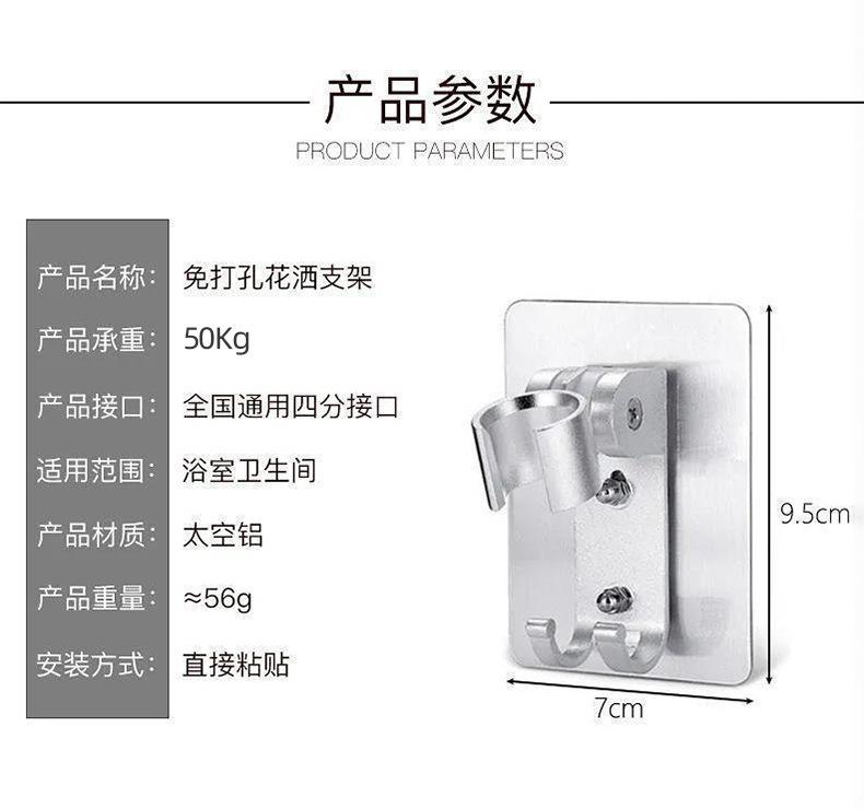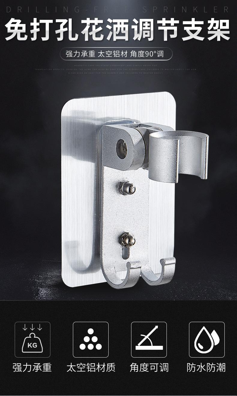Soporte de ducha de aluminio espacial sin perforaciones, base de cabezal de ducha de ángulo ajustable, artefacto fijo para ducha de baño