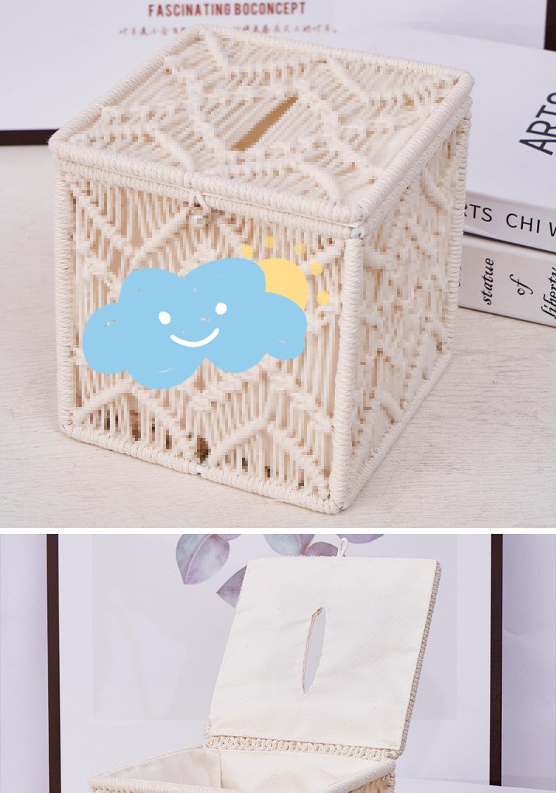 Caja de pañuelos Amazon nórdica para el hogar, caja de almacenamiento diario, caja de papel tejida con cuerda de algodón creativa transfronteriza