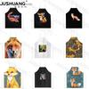 Delantal Pintado Impermeable de Lino Pintado Estampado Transfronterizo Personalizable para Cocina Tareas Domésticas a Prueba de Aceite y Anti-Suciedad