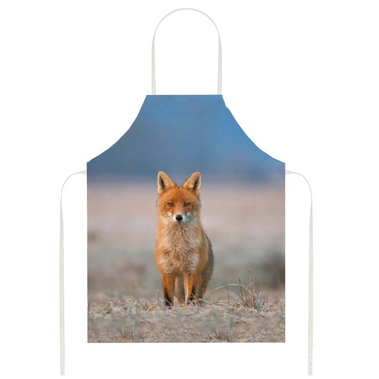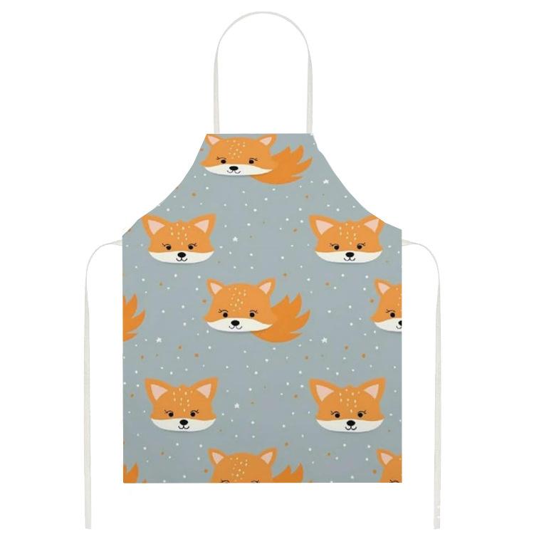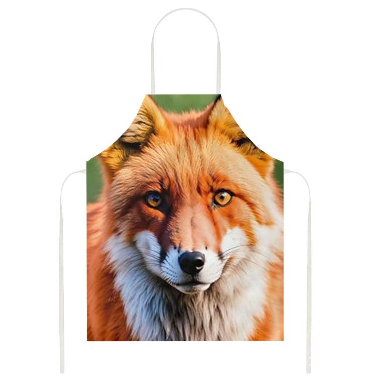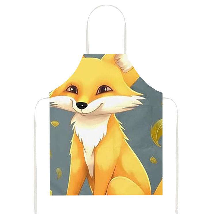 Lino Impermeable Transfronterizo de Zorro, Delantal Estampado Creativo, Personalizable para Tareas Domésticas de Cocina, Delantal a Prueba de Aceite y Antimanchas
