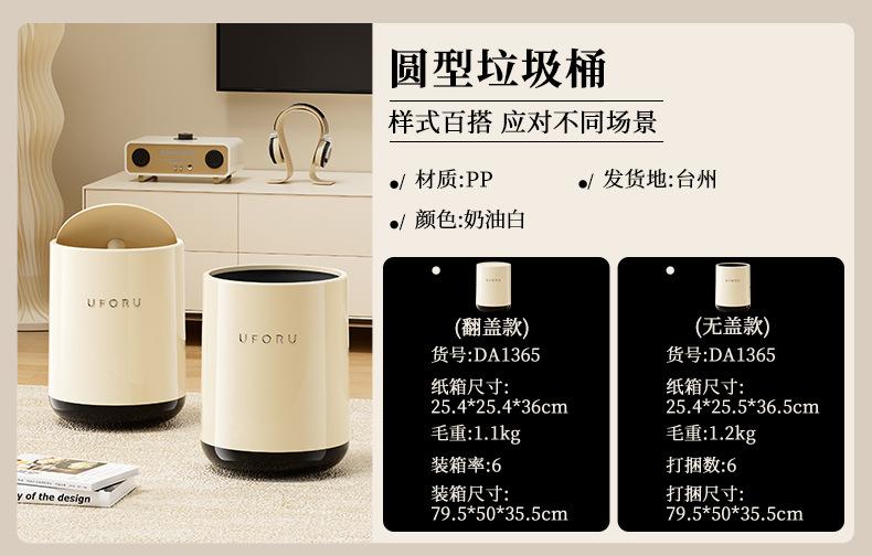 Flip-top cylindrical trash can-cream white