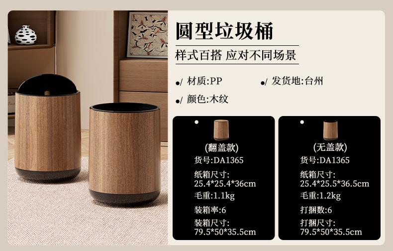 Coverless cylindrical trash can-wood grain