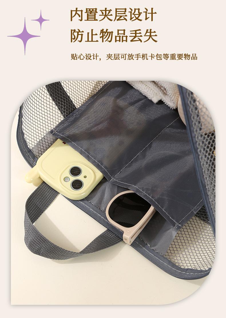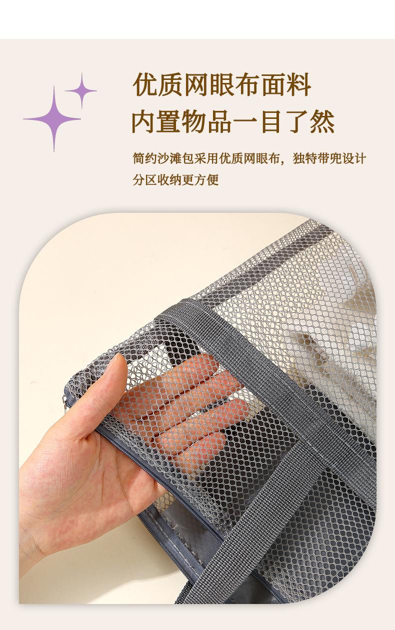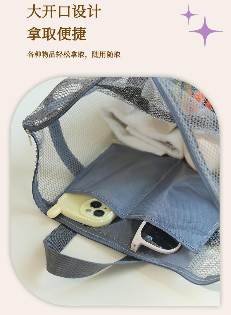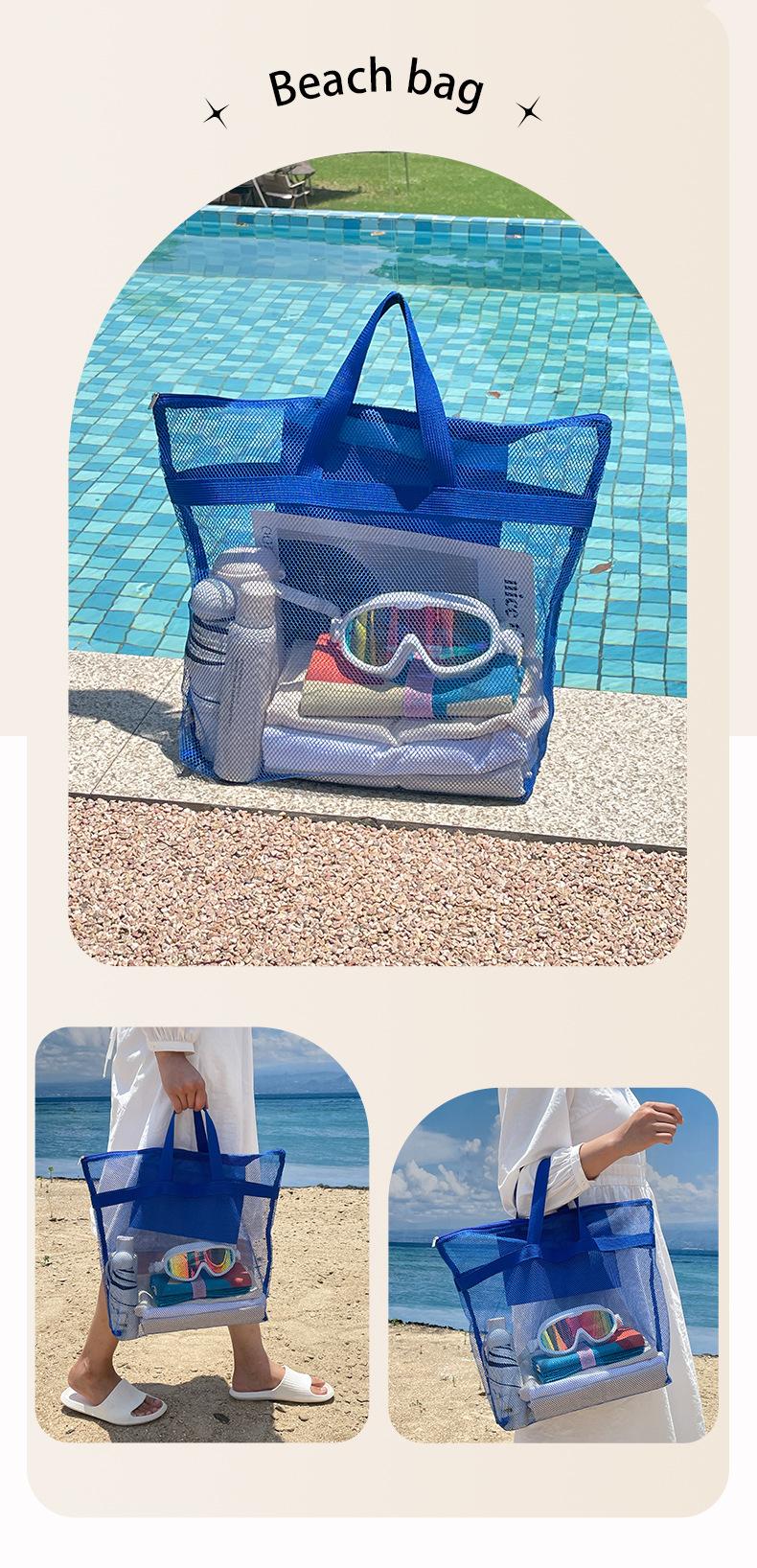 Compra Nueva Bolsa de Malla de Almacenamiento de Viaje Plegable Transpirable de Gran Capacidad Bolsa de Playa Portátil Multibolsillo Transparente al por mayor en Joom.pro