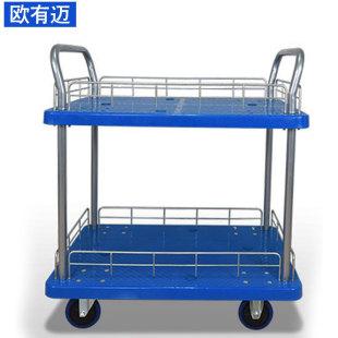 | Ventas directas de fabricantes puesto móvil carro comedor carro de herramientas carro de plataforma de plástico de doble capa listo para entrega |