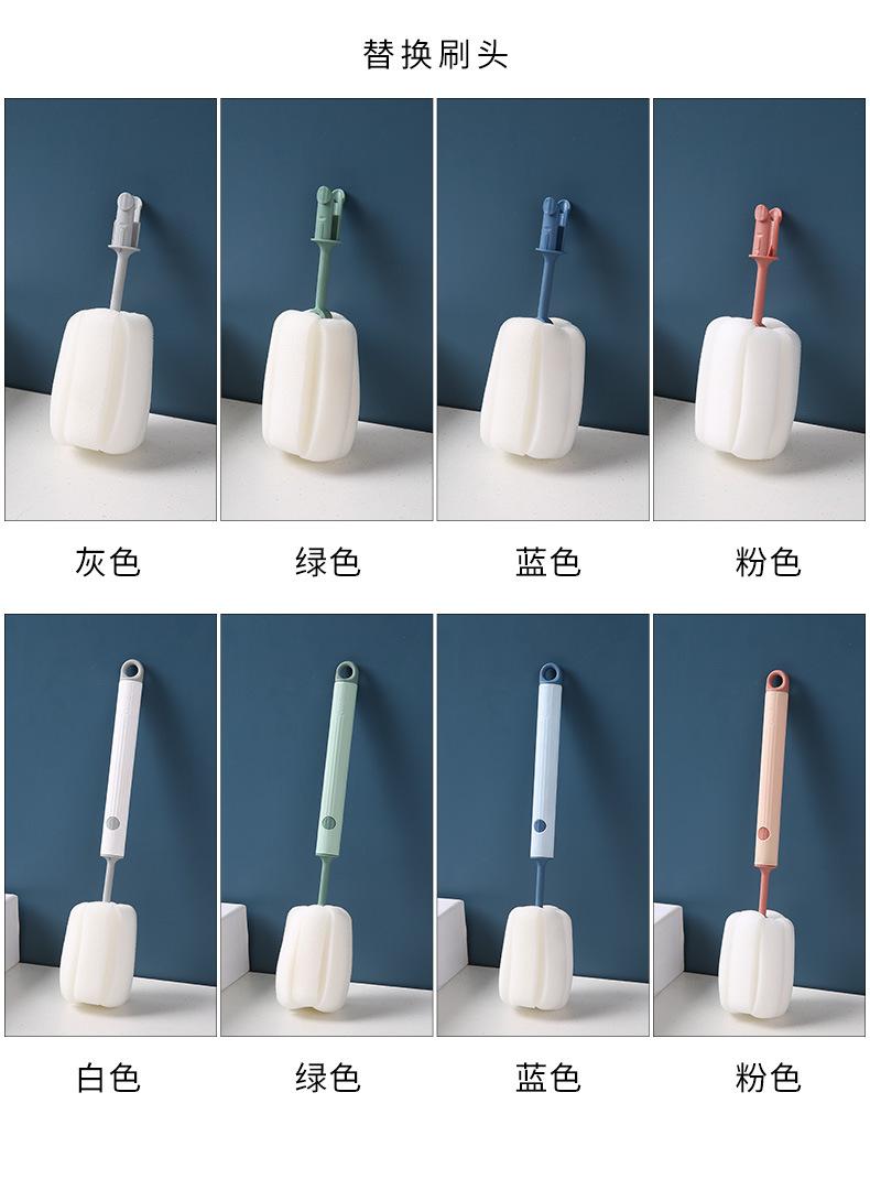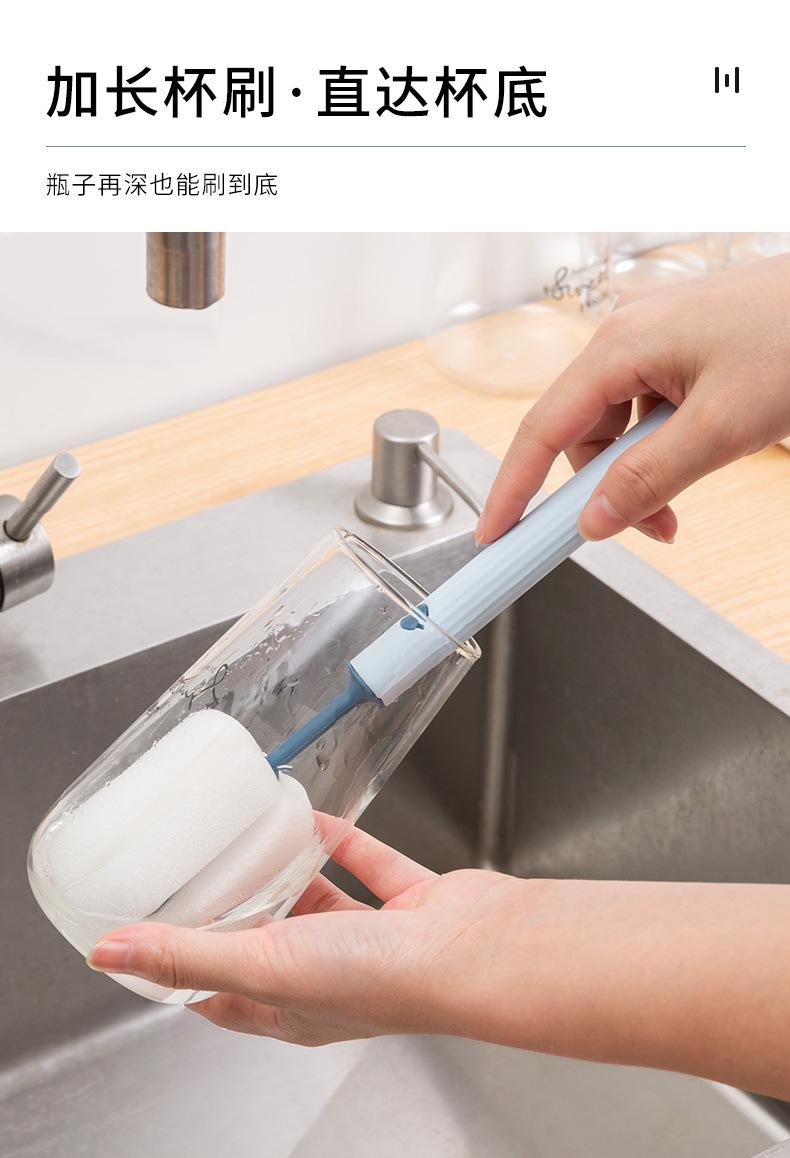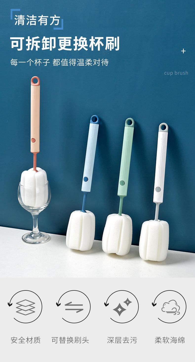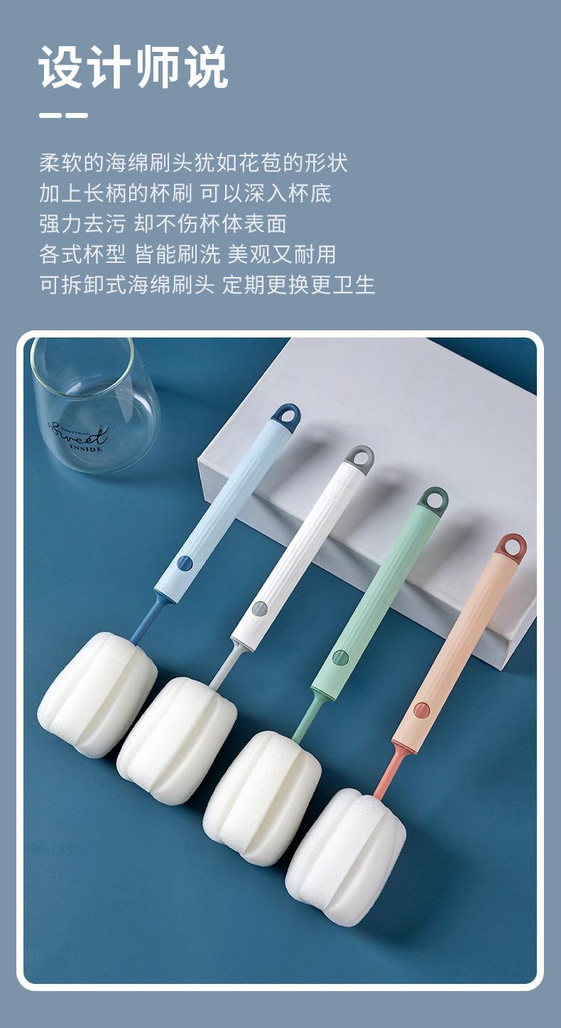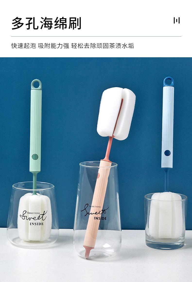 Cepillo de esponja de mango largo al por mayor, cepillo de limpieza descontaminante removible, cepillo para botellas absorbente de agua para vasos de vidrio domésticos sin esquinas muertas