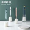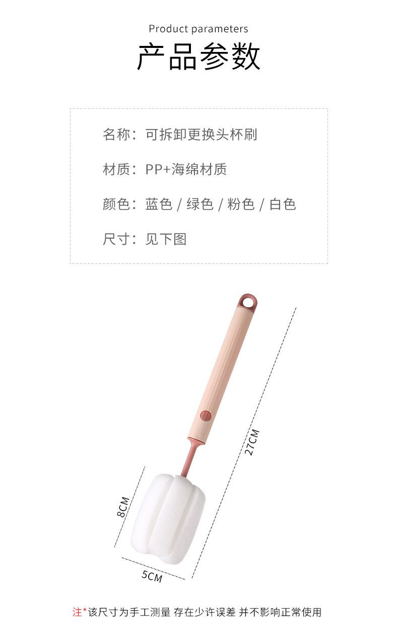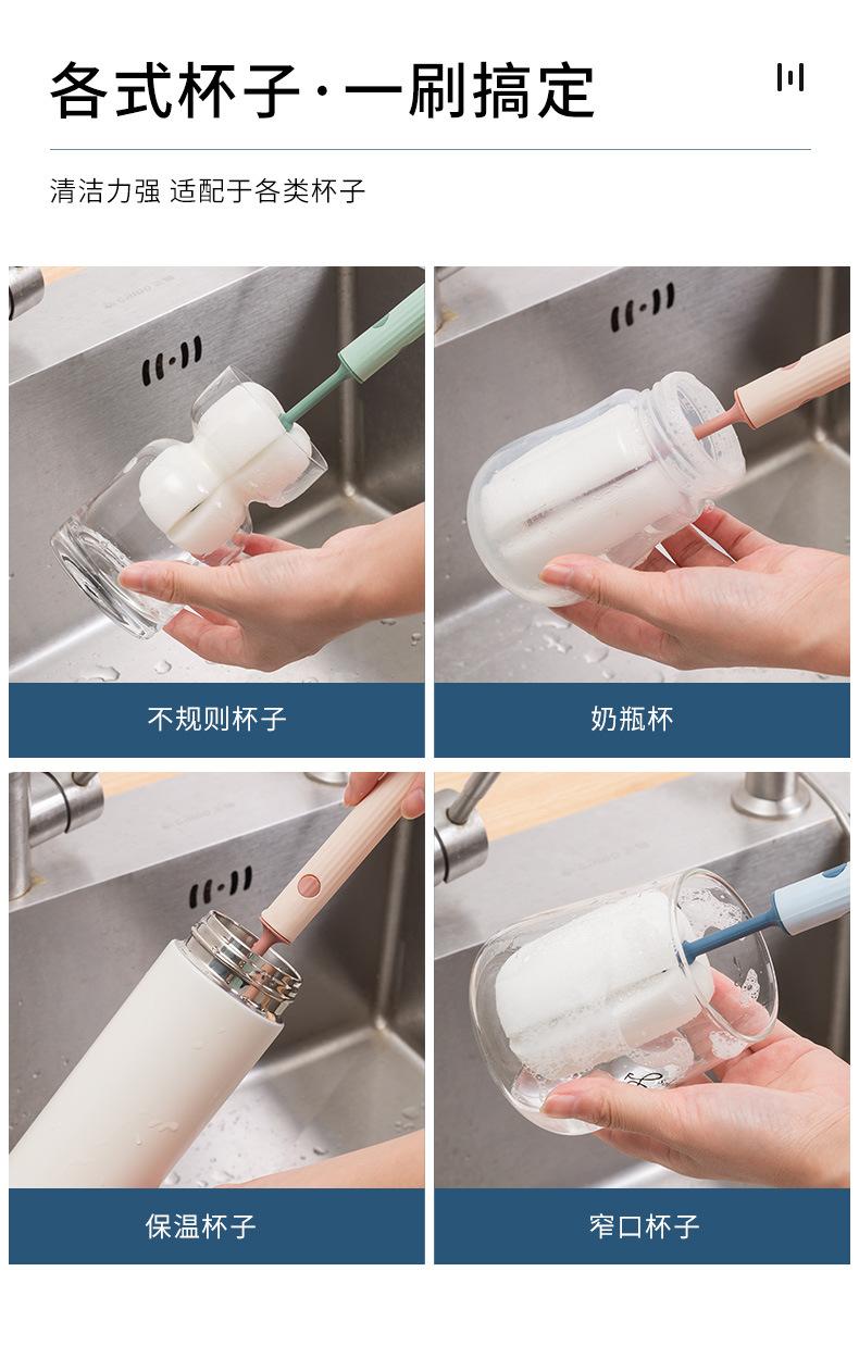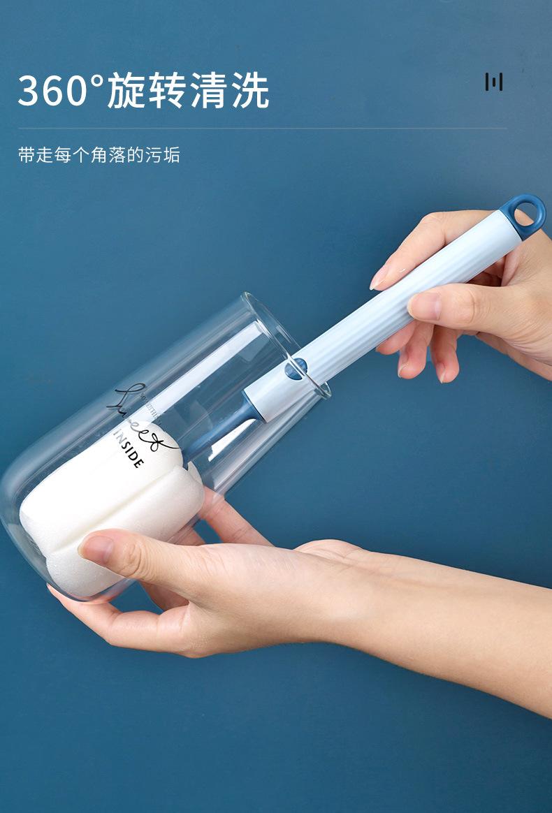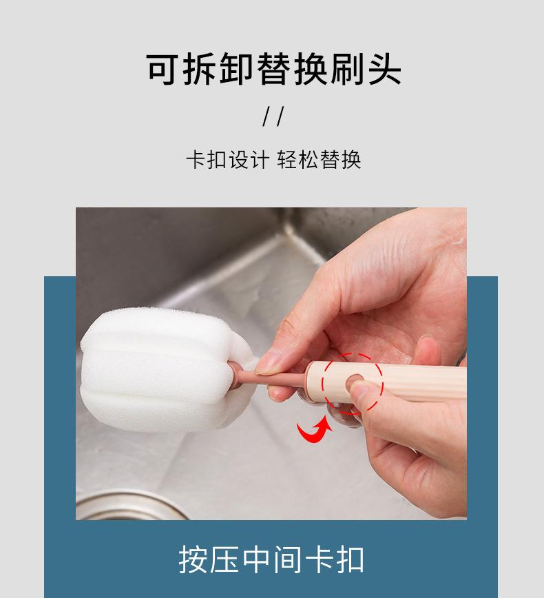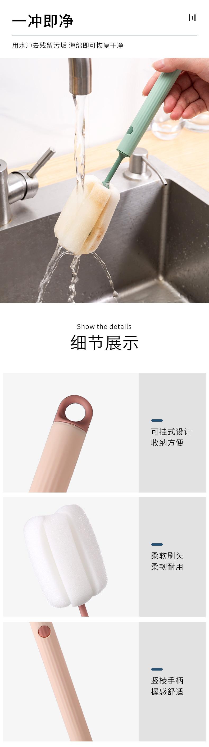 Cepillo de esponja de mango largo al por mayor, cepillo de limpieza descontaminante removible, cepillo para botellas absorbente de agua para vasos de vidrio domésticos sin esquinas muertas