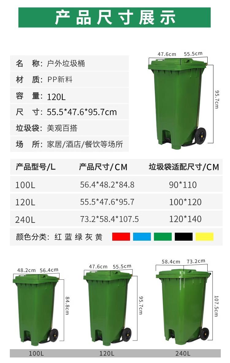 Contenedor de Basura Exterior de 240L Grande Sanitario Pedal Comercial Engrosado Talla Extra Plástico Cubeta Grande de Clasificación Gran Capacidad