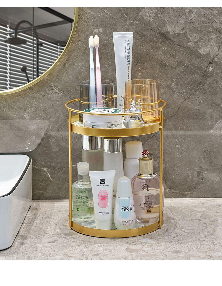 Estante de almacenamiento de doble capa para baño, de lujo y ligero, para escritorio, para cosméticos, bandeja para lavabo de baño, almacenamiento para lavabo