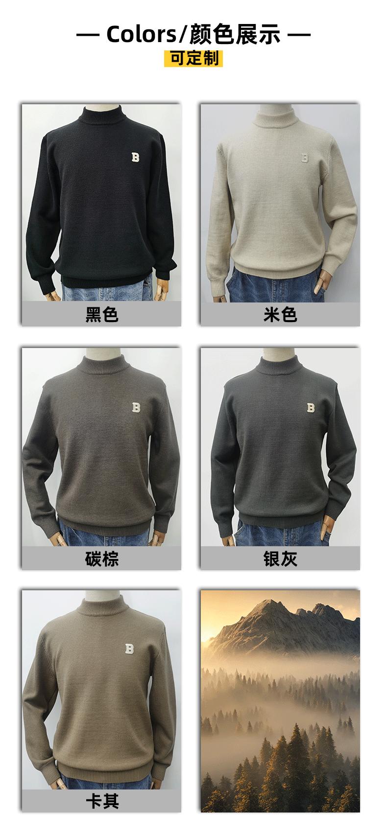 Suéter grueso de manga larga con cuello medio de color liso para hombre, suéter holgado informal de otoño e invierno, nueva camisa cálida de fondo