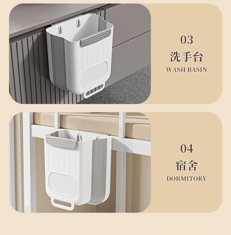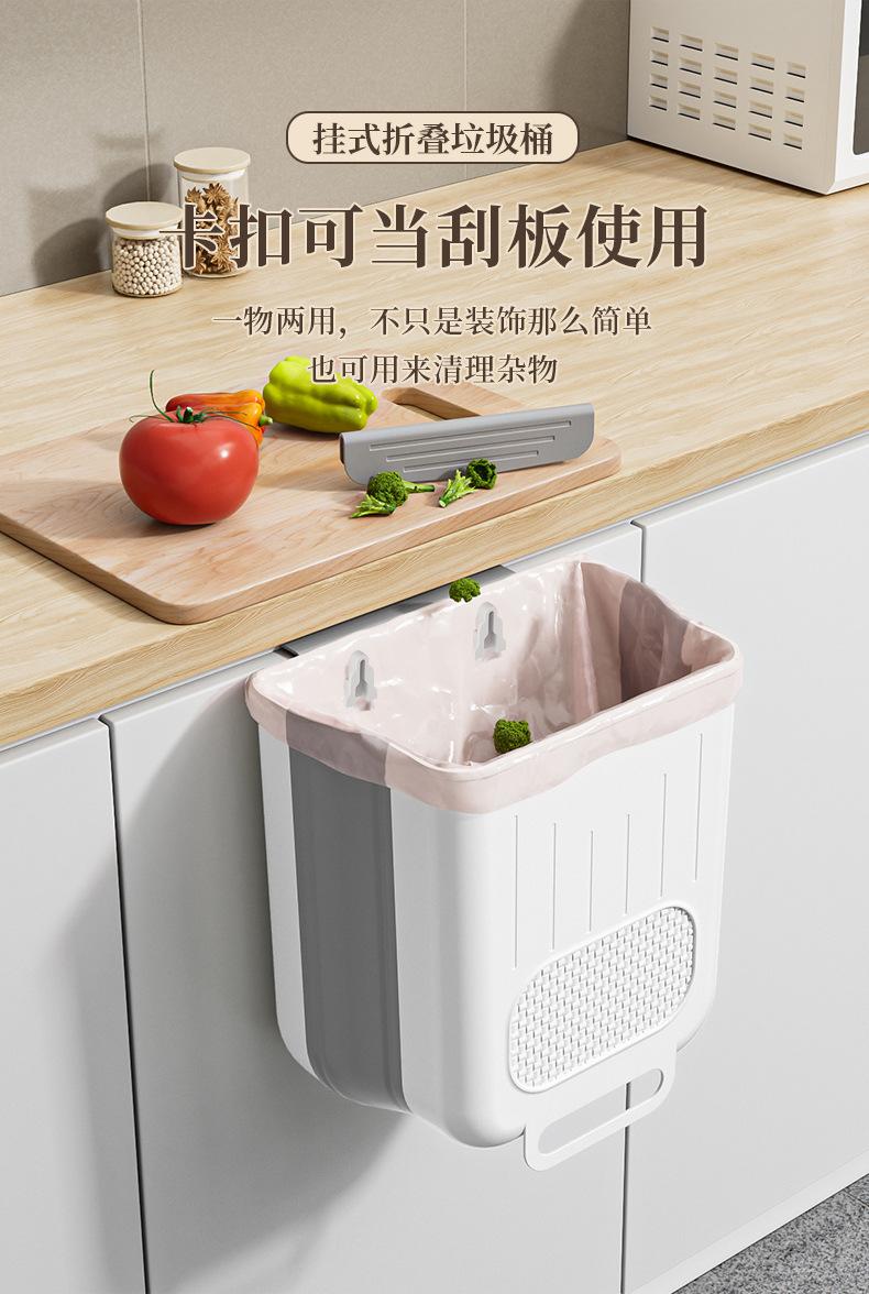 Cubo de basura colgante plegable para cocina, clasificación de desechos de cocina para el hogar, armario, puerta, colgante de pared, barril de almacenamiento, contenedor de papel