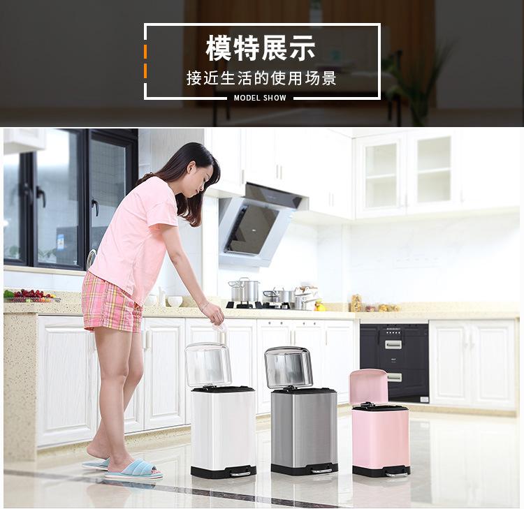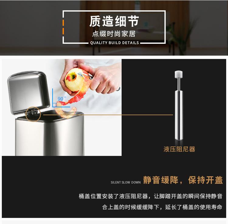 Venta al por mayor, hogar, cocina creativa, hotel, habitación de estilo europeo, cubo de basura de acero inoxidable con pedal, cubo de acero grande