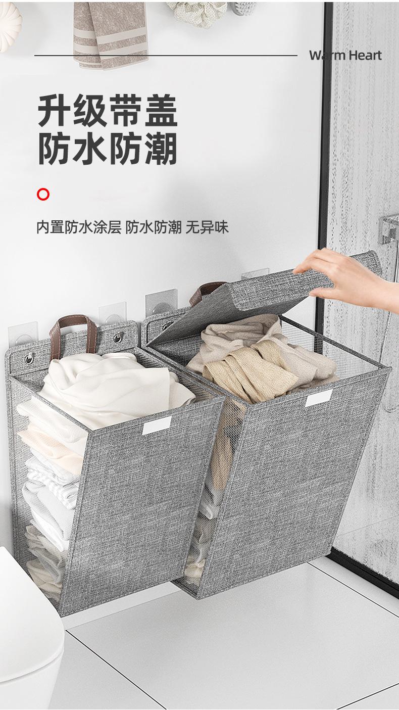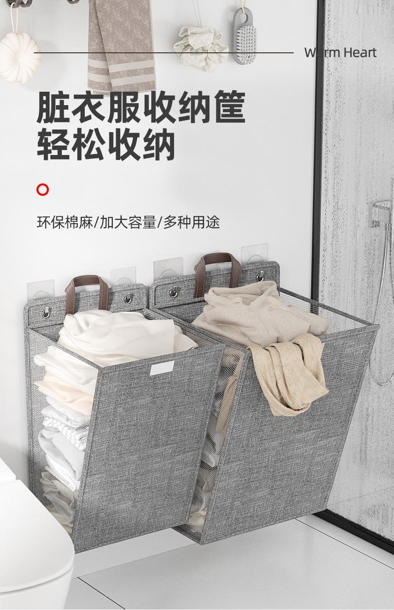Cotton and linen three-dimensional folding hanging bag-grey large size