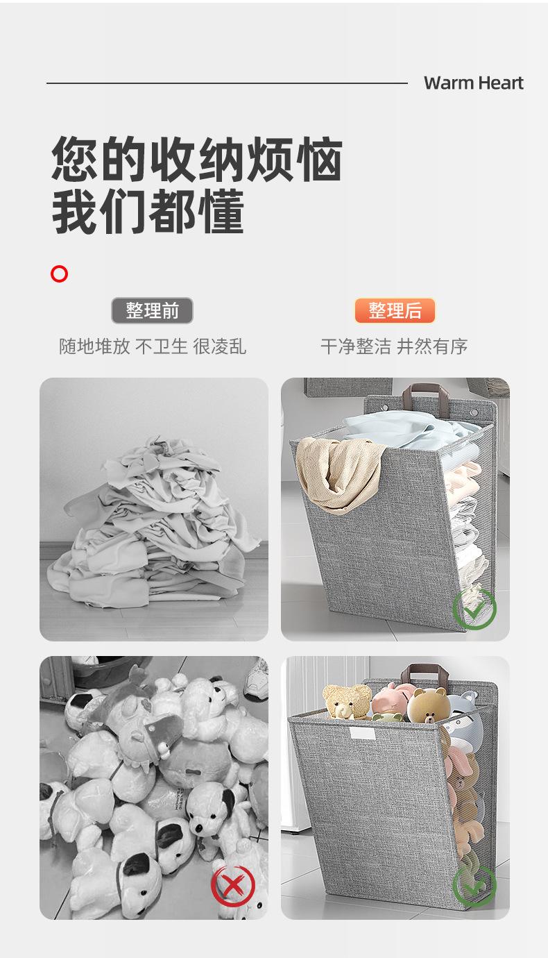 Cotton and linen three-dimensional folding hanging bag-grey medium size, Cotton and linen three-dimensional fo...