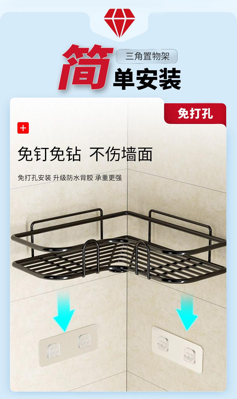 Estante de almacenamiento triangular para baño sin perforaciones Estante de almacenamiento de esquina para inodoro Estante de almacenamiento de esquina para inodoro Colgador de pared triangular