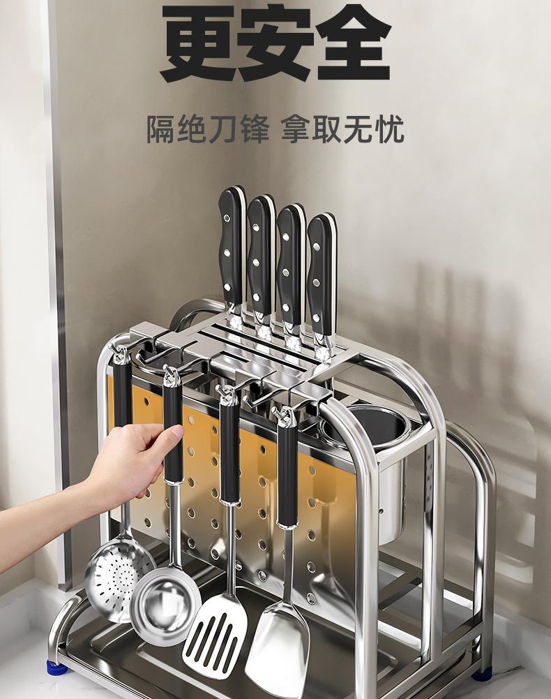 Estante de almacenamiento para cuchillos de cocina de acero inoxidable 304, multifuncional, para tapar ollas y cortar, para encimera, con escurridor de cuchillos.