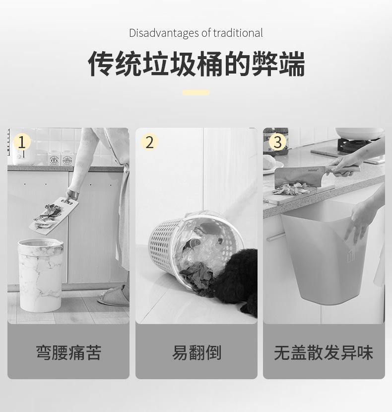 Cubo de basura de cocina, cubo de basura de plástico grande con tapa, para puerta de armario de basura de cocina, montado en la pared, para papel higiénico