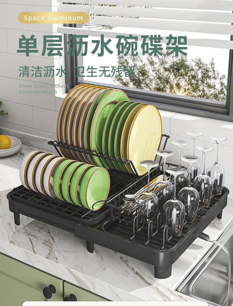 Escurridor de Platos Retráctil de Una Capa para Cocina, Escurridor de Vajilla para el Hogar, Escurridor de Vajilla, Tazas y Cubiertos, Multifuncional, Escurridor Junto al Fregadero