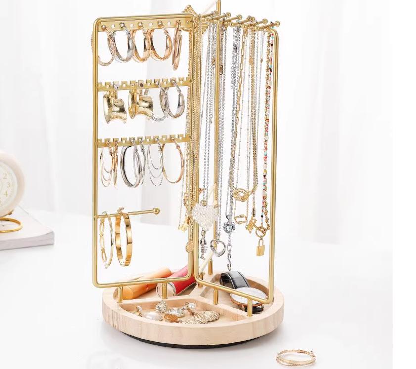 Gold 3-sided rotating jewelry rack 20*35*11cm