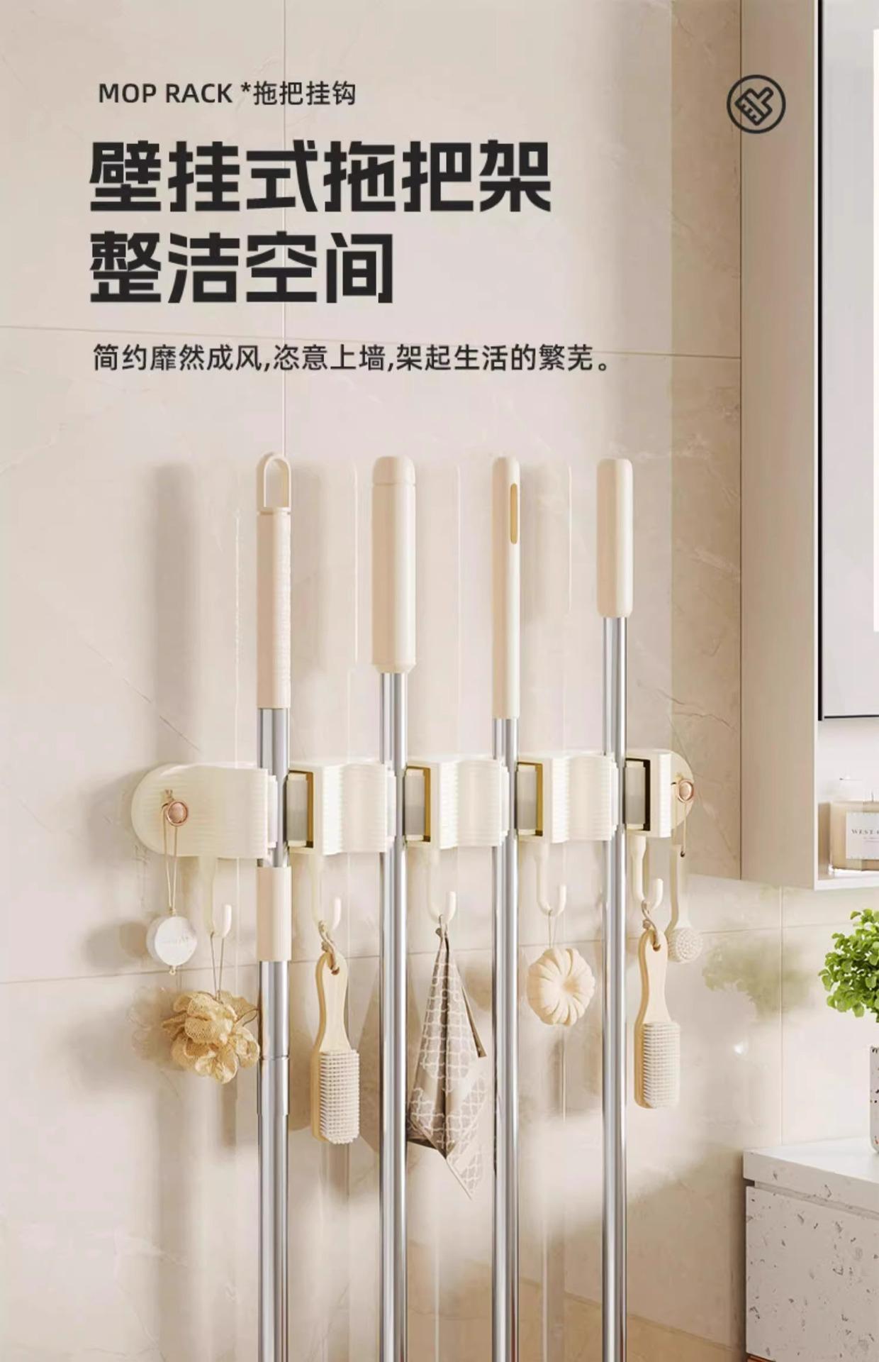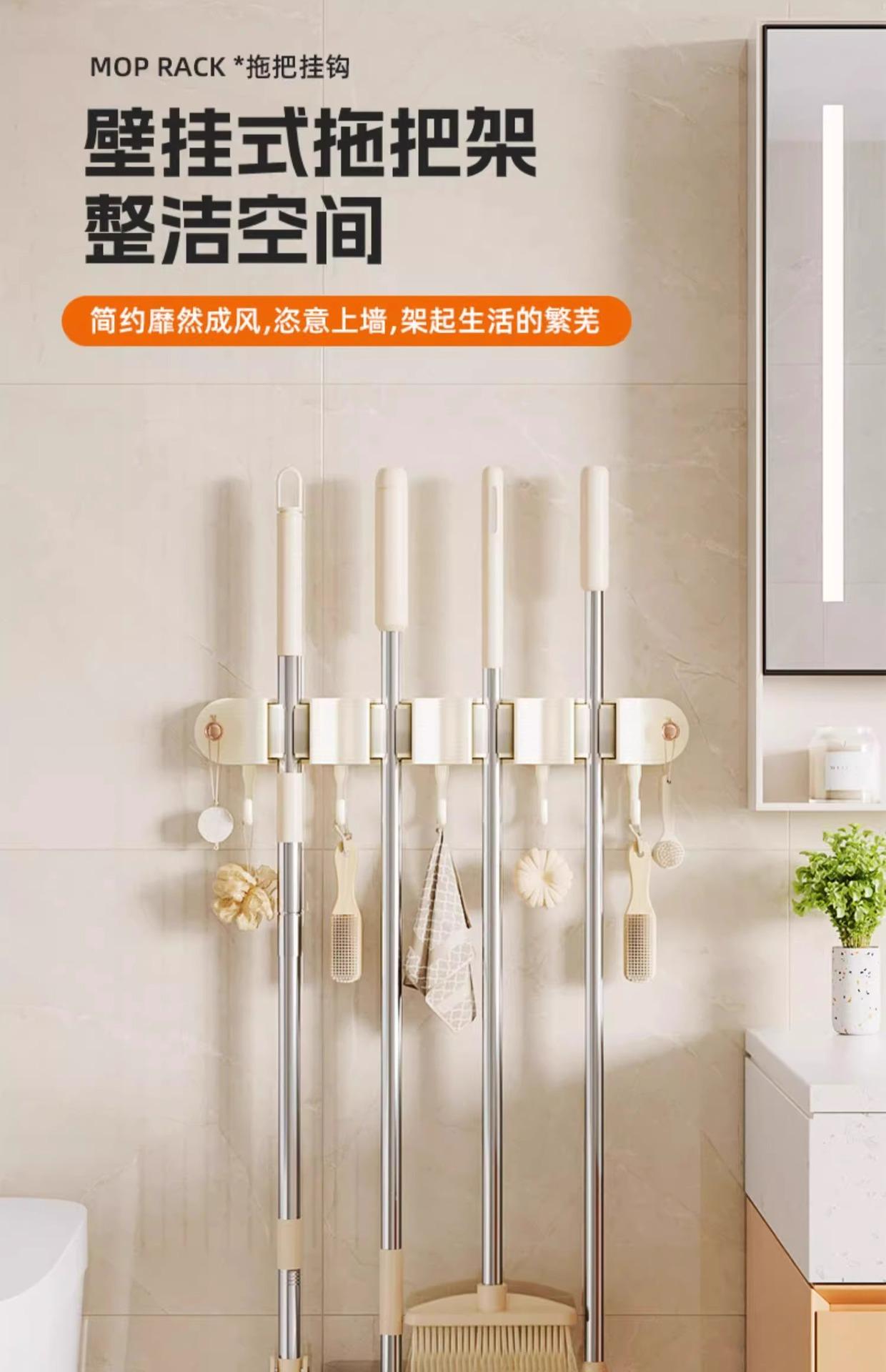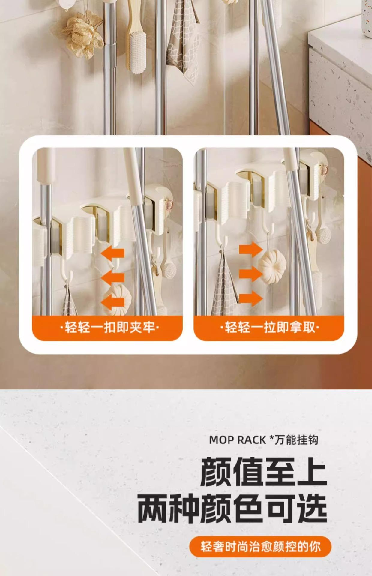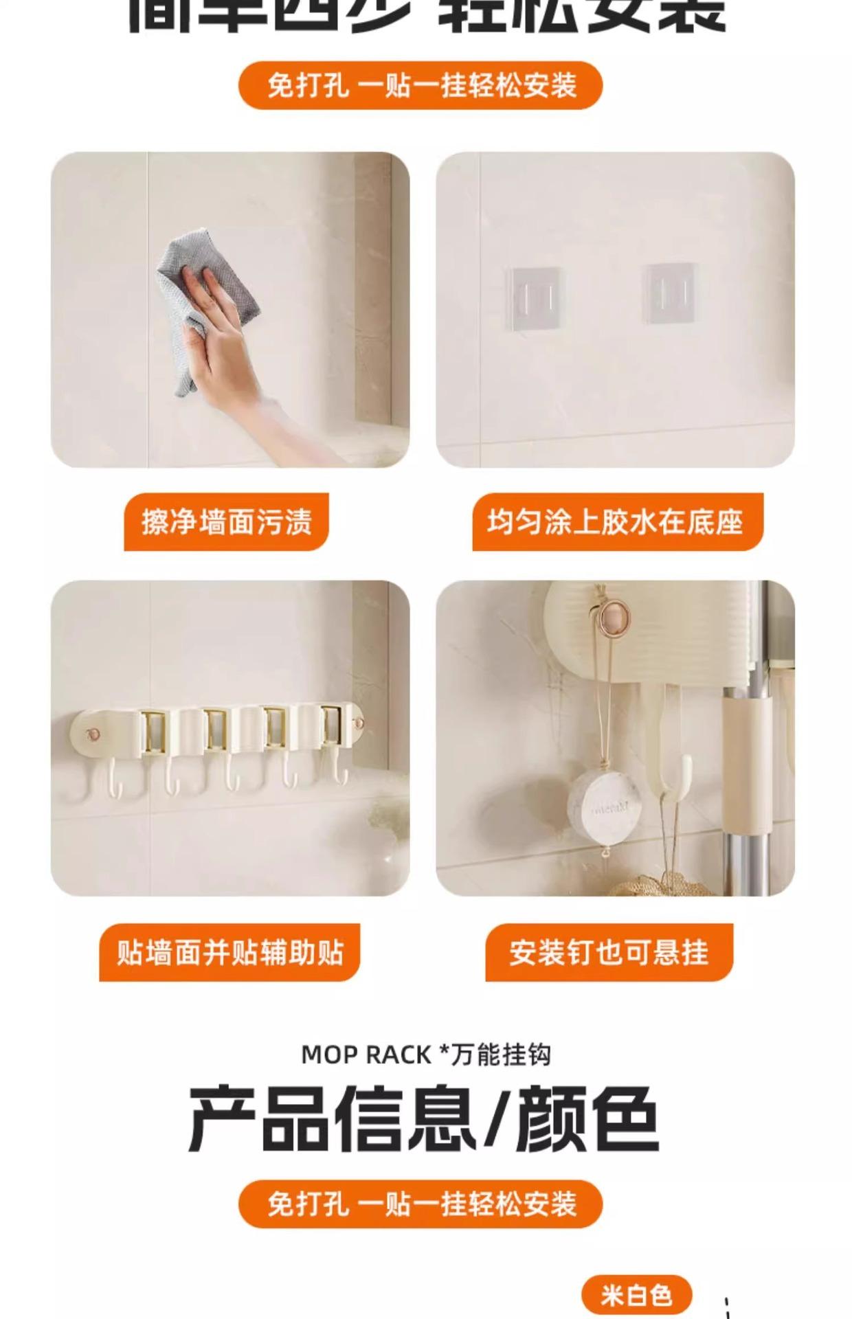 Cream white fashion mop stand [1 pack] 4 clips and 5 hooks