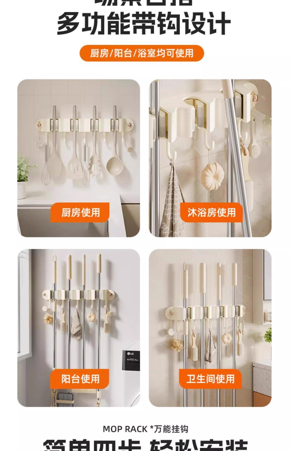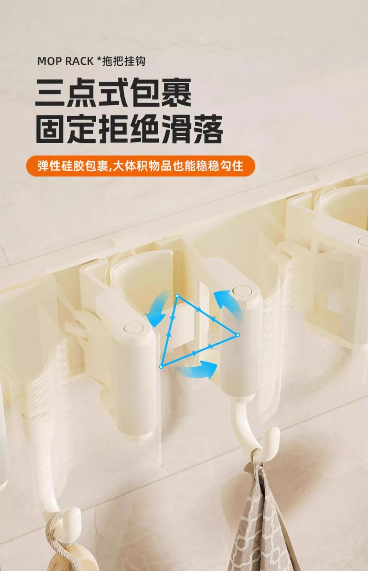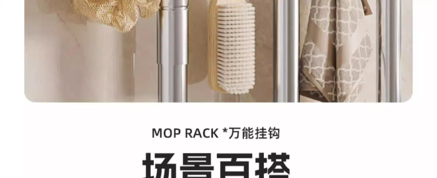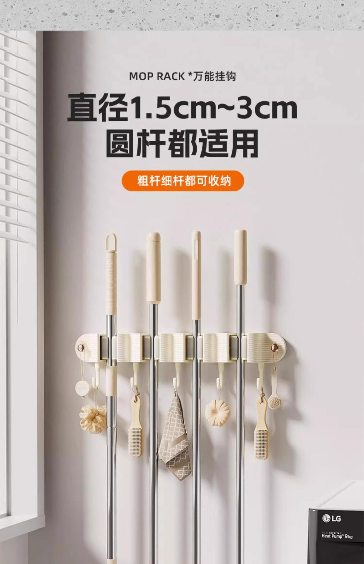 Cream white fashion mop stand [1 pack] 4 clips and 5 hooks