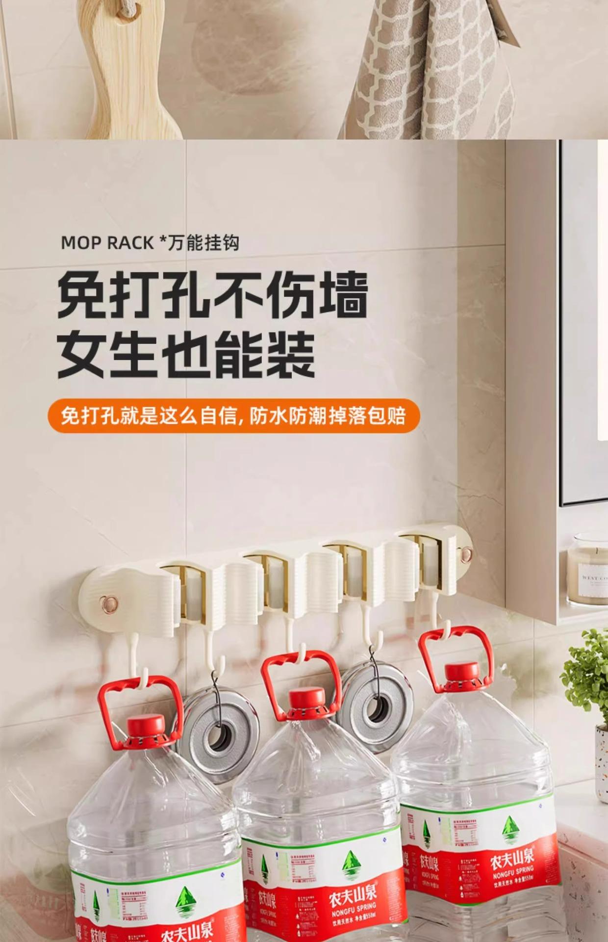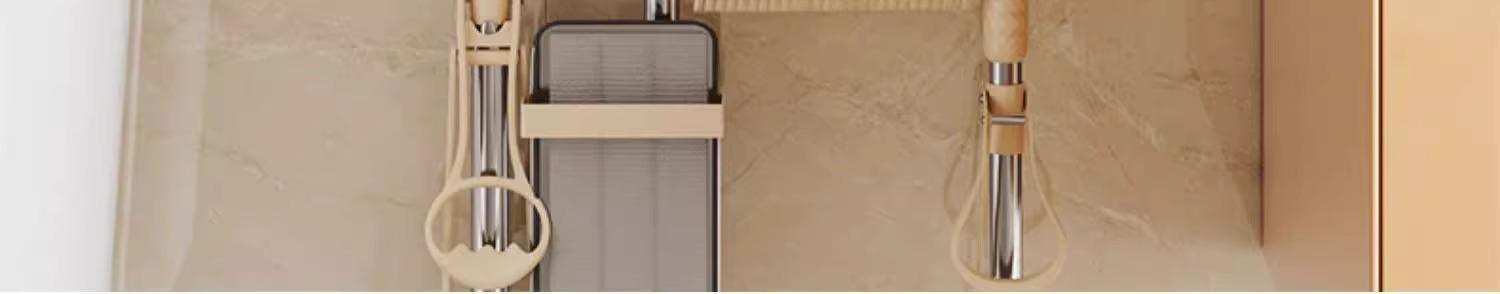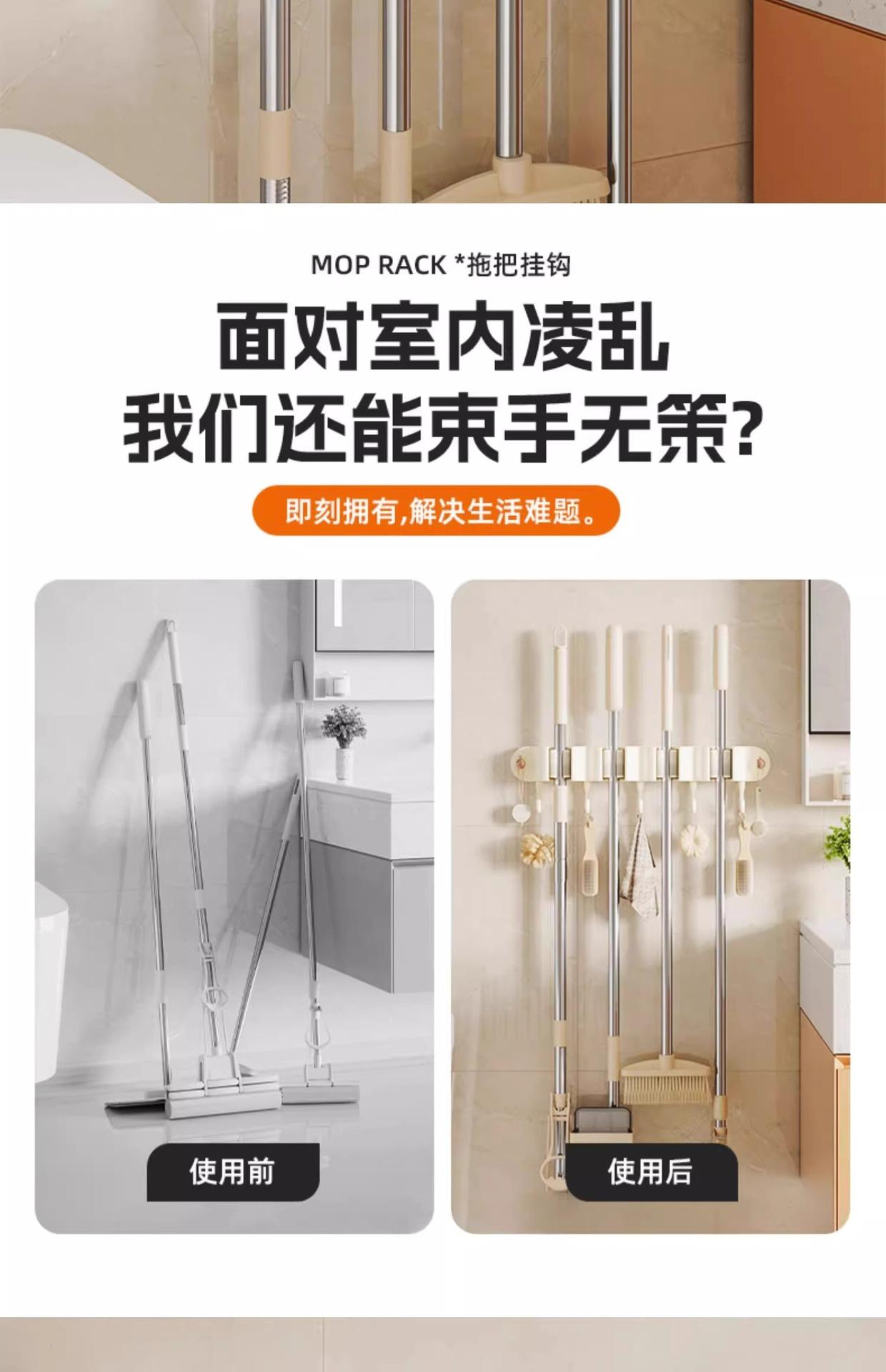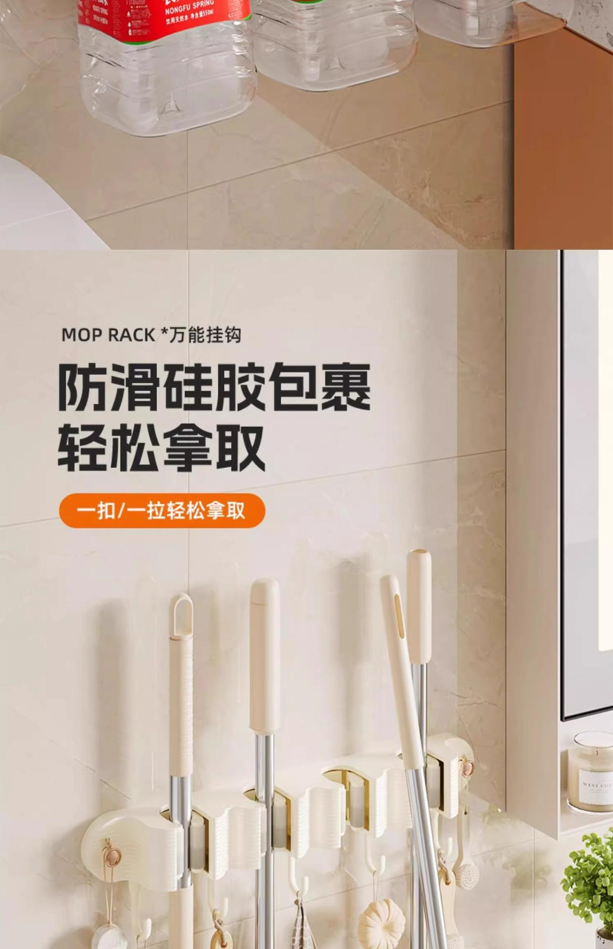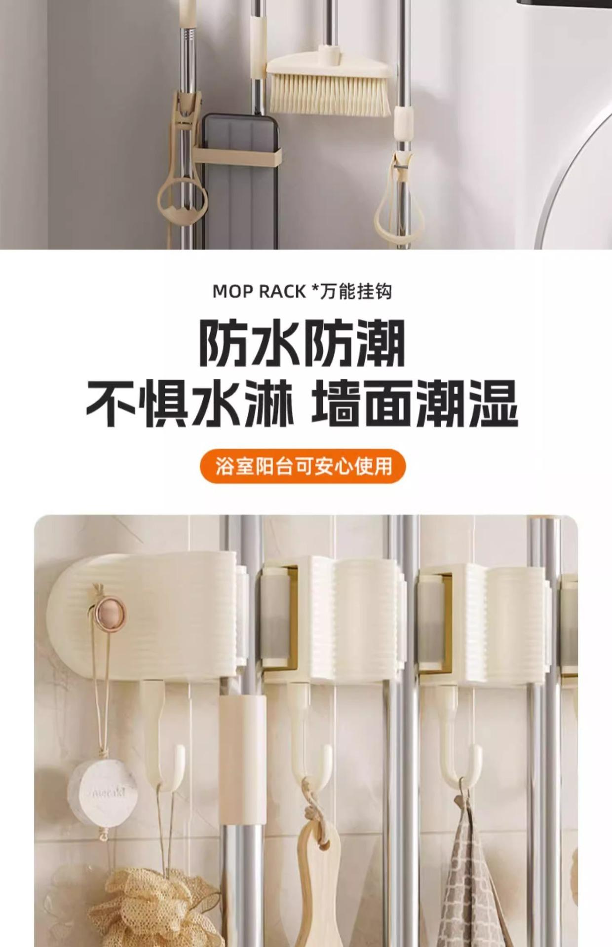 Cream white fashion mop stand [1 pack] 4 clips and 5 hooks