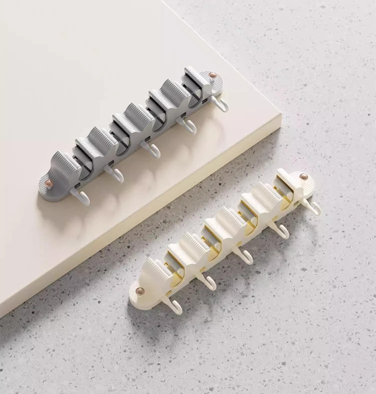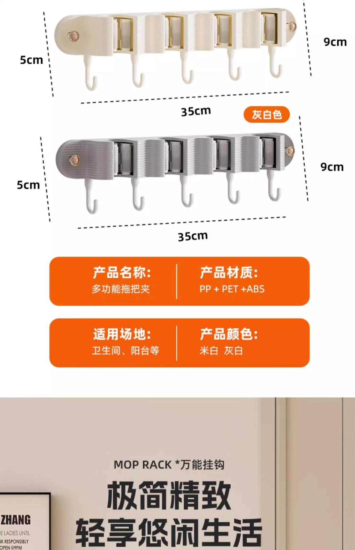 Cream white fashion mop stand [1 pack] 4 clips and 5 hooks, Smoke gray fashion mop stand [1 pack] 4 clips and ...
