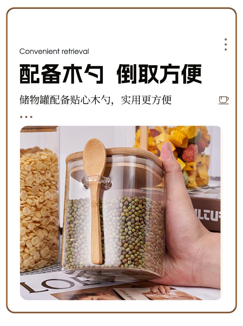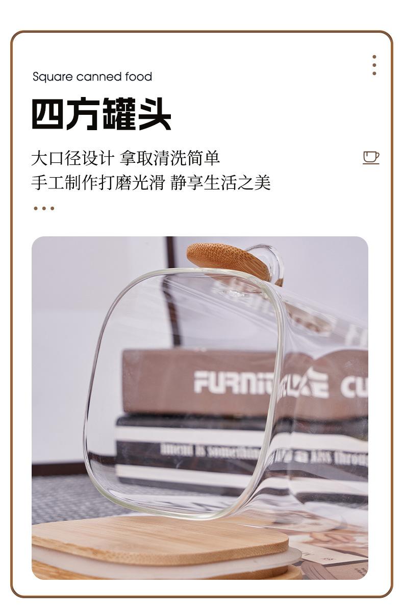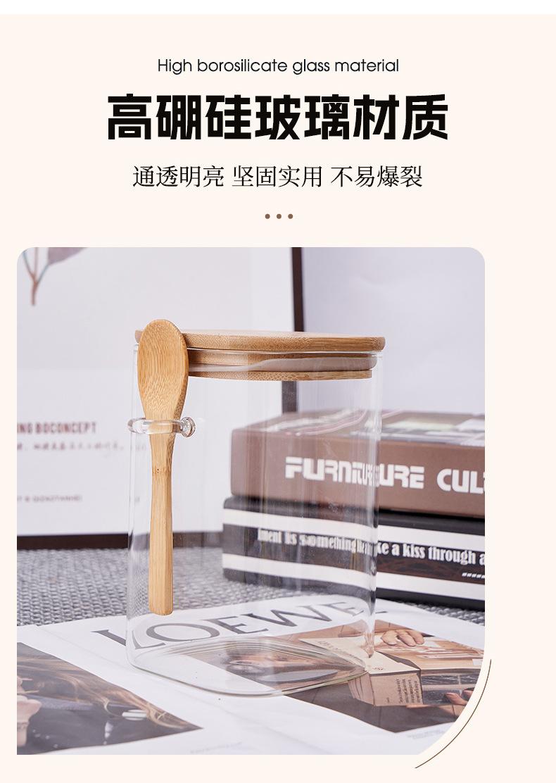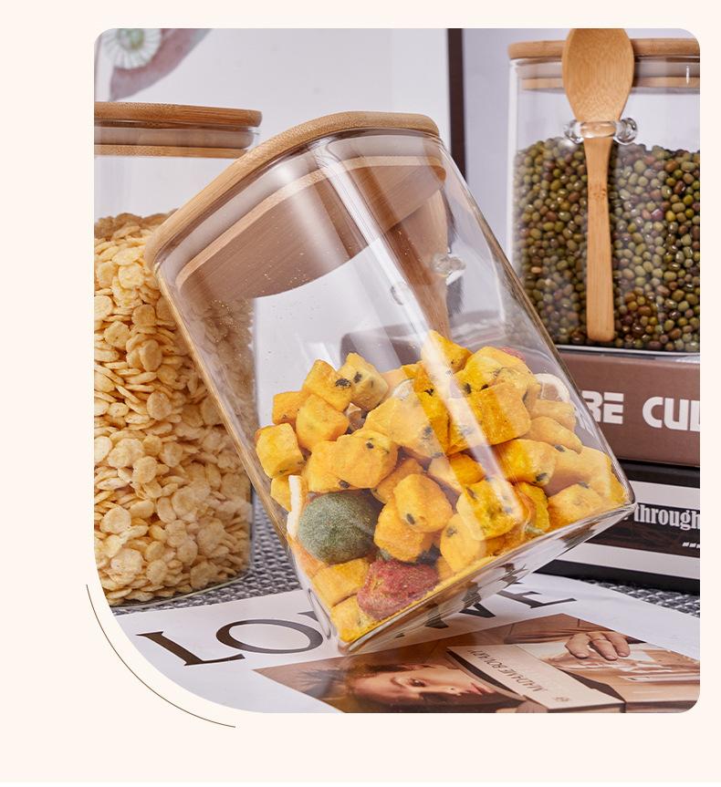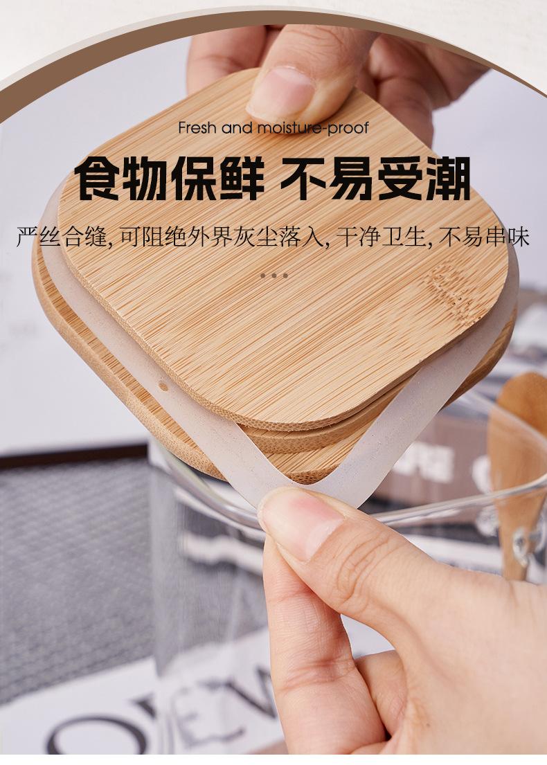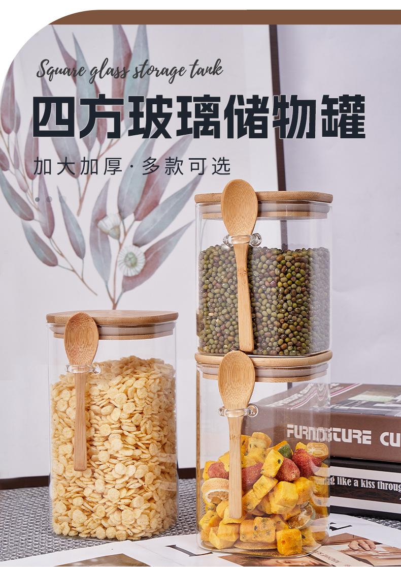 Frasco de Almacenamiento Quartet con Cuchara Venta al por Mayor Frasco Cuadrado de Vidrio Sellado Frasco de Almacenamiento para el Hogar con Cuchara de Madera Frasco para Almacenamiento de Alimentos