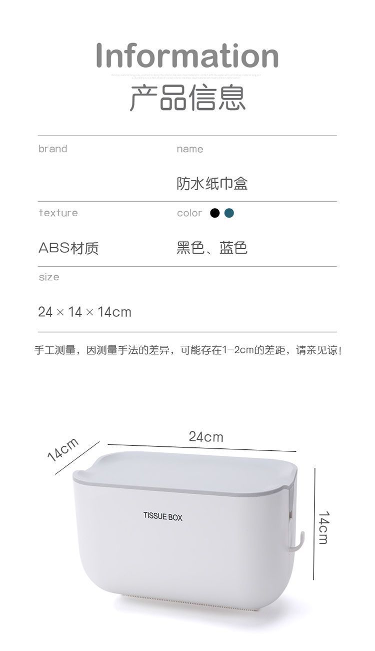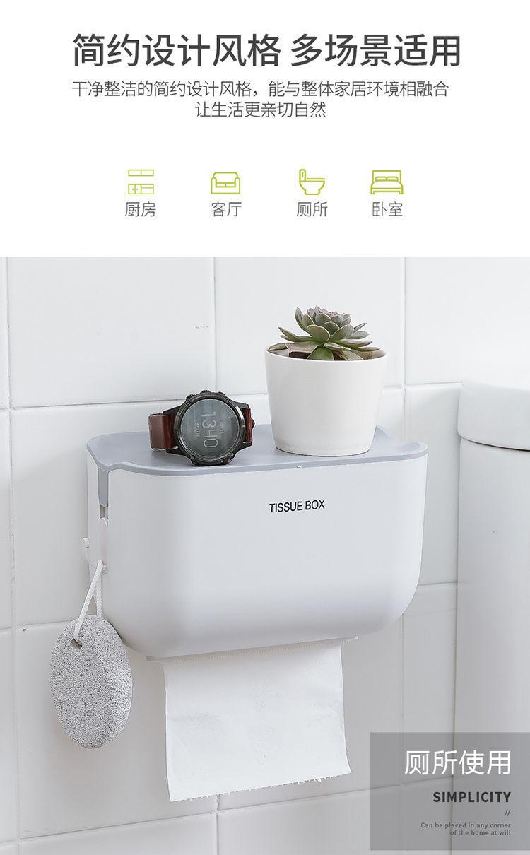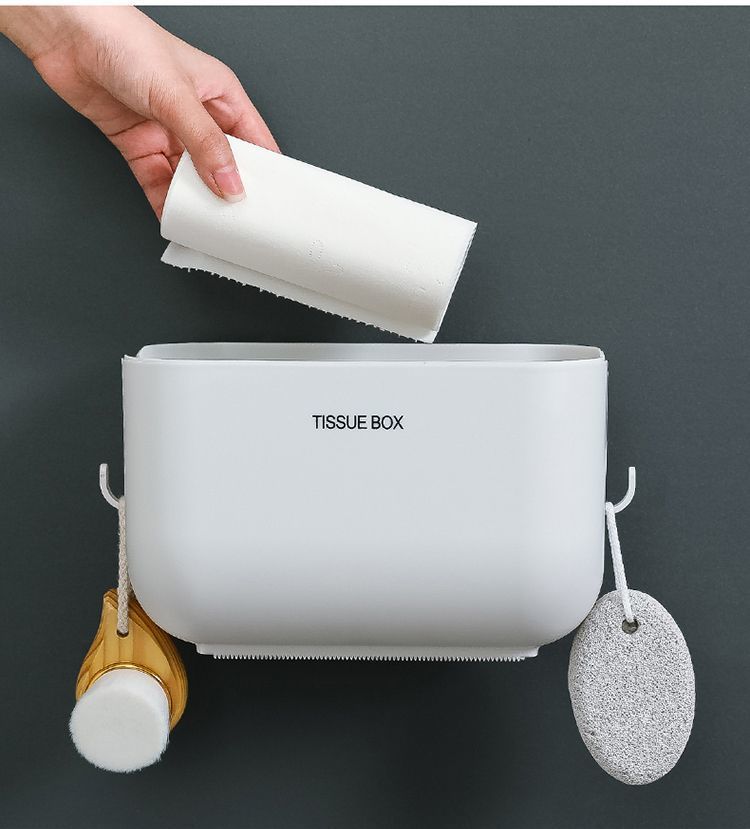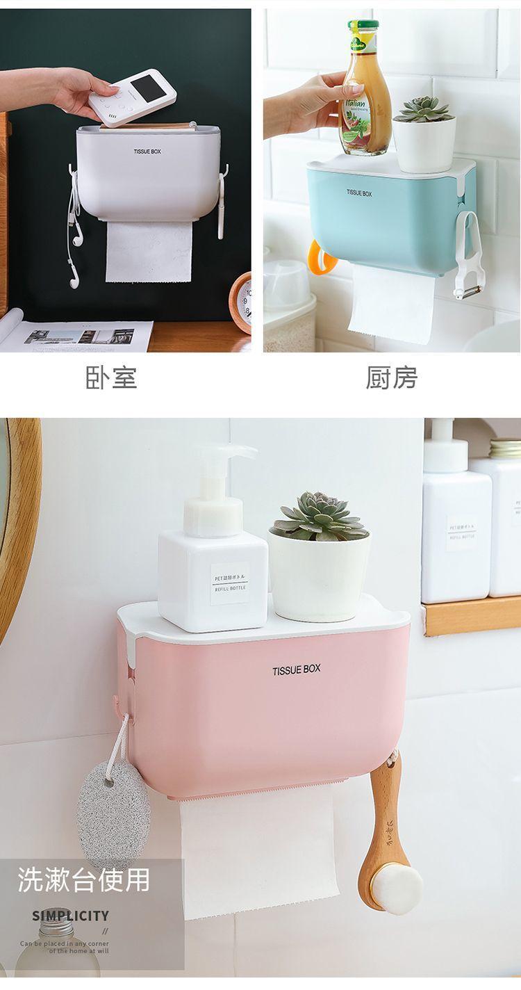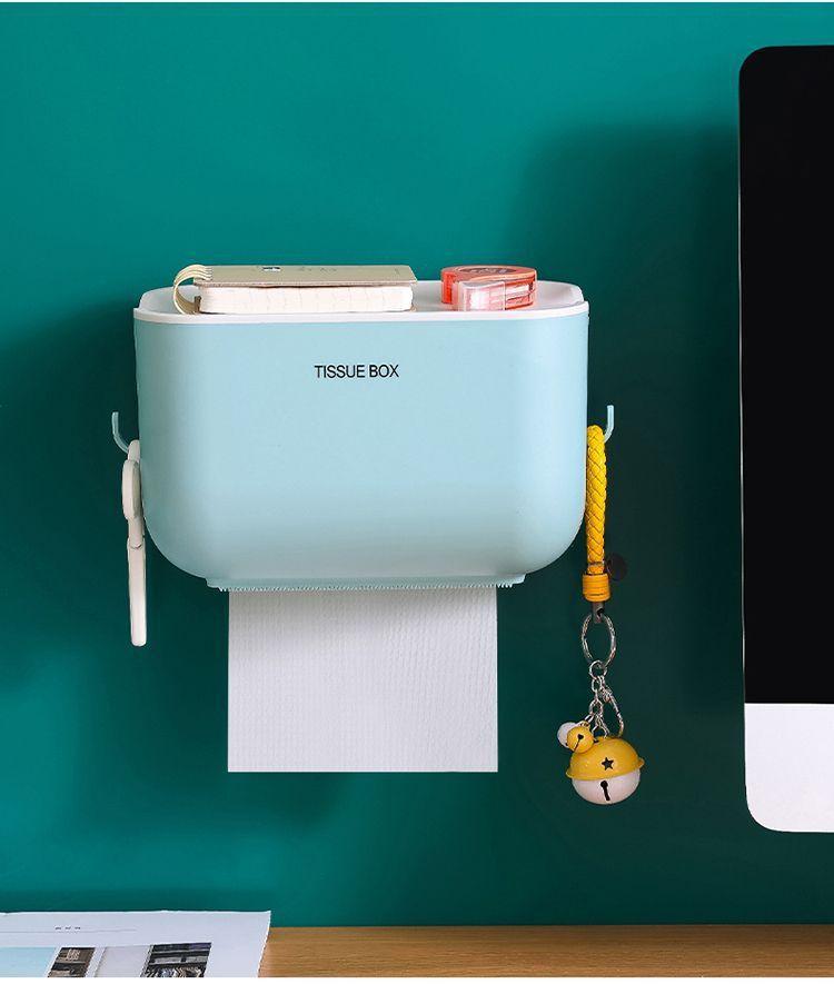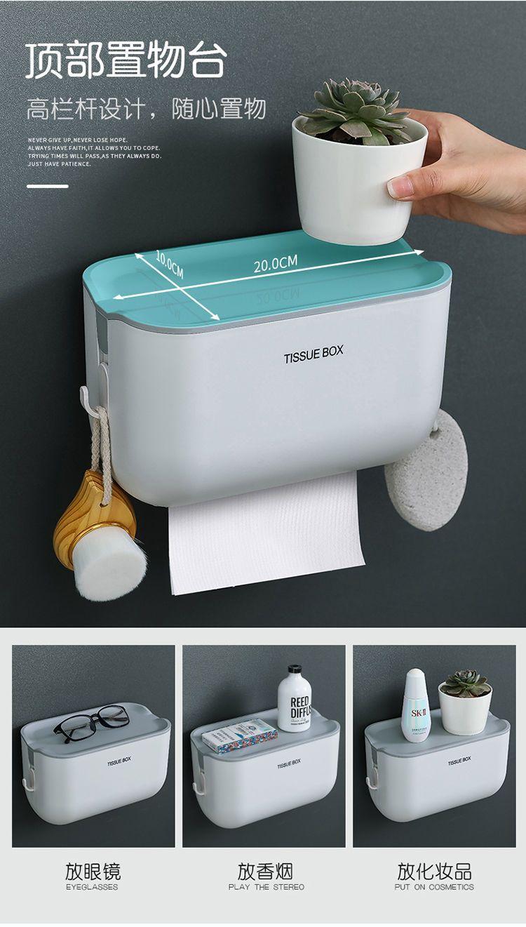 Caja de pañuelos impermeable para baño, caja de papel higiénico, soporte para pañuelos de pared sin perforaciones