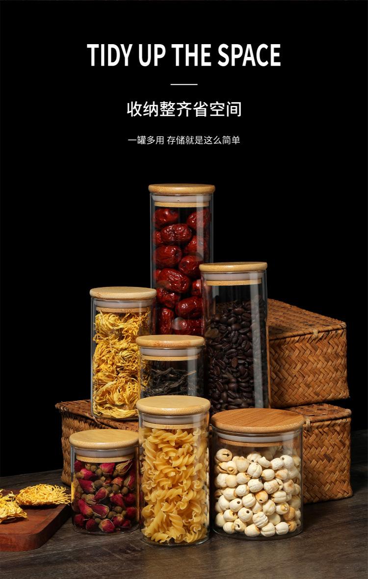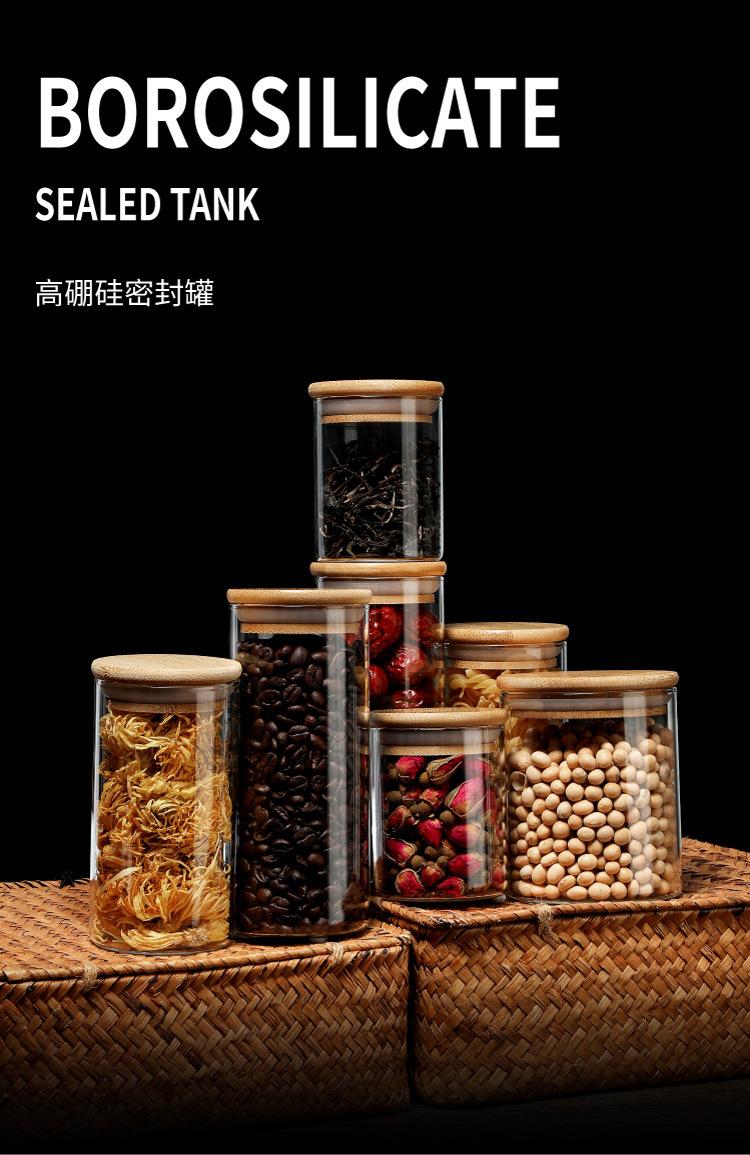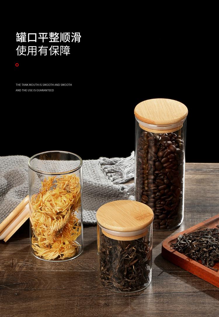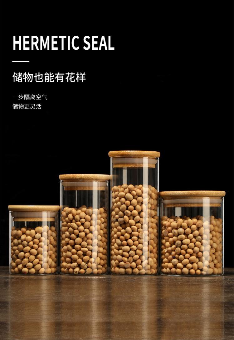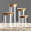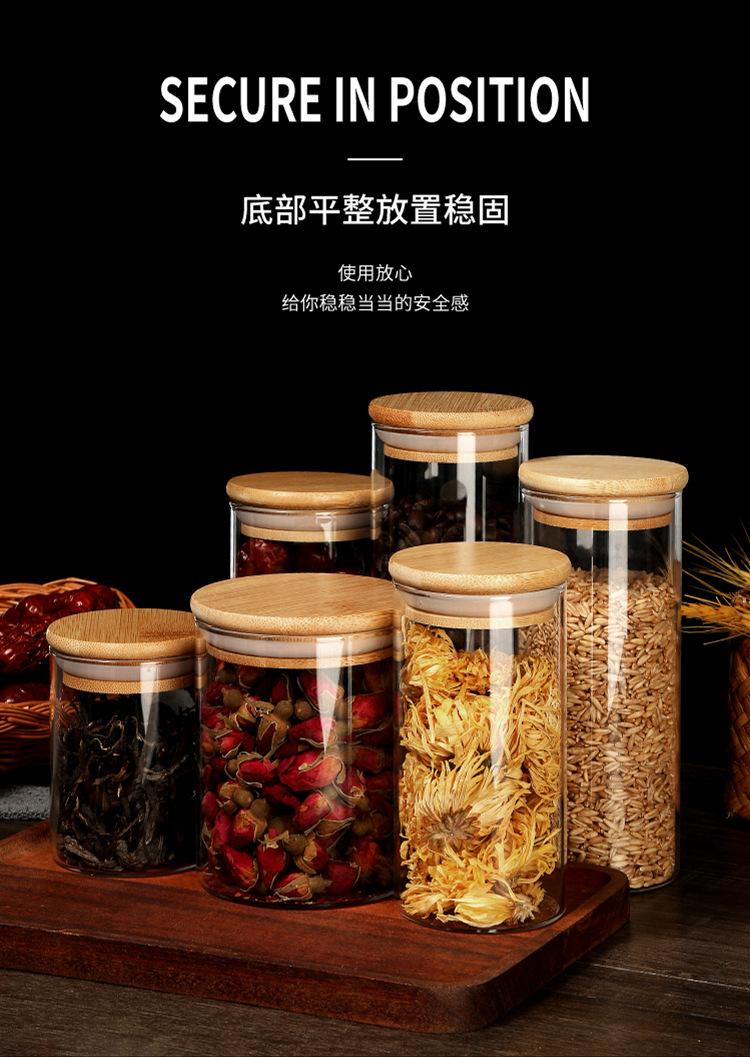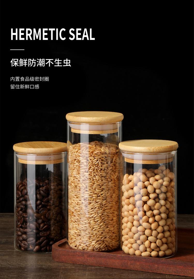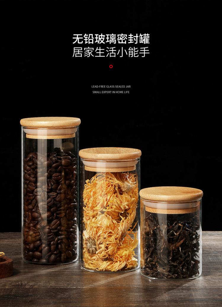 Frasco de vidrio con tapa redonda de bambú y sellado, de borosilicato alto, para almacenar café, té y frutos secos.
