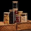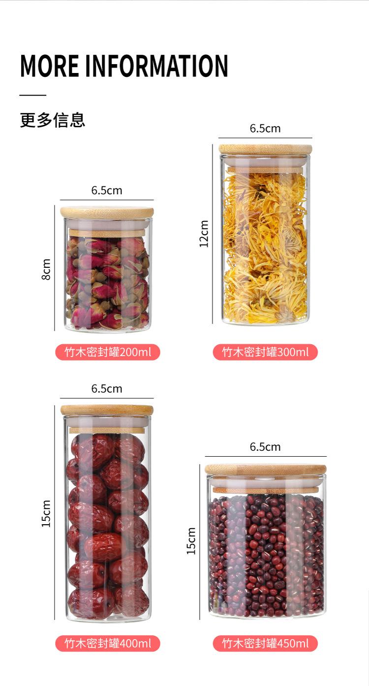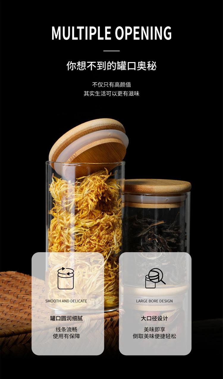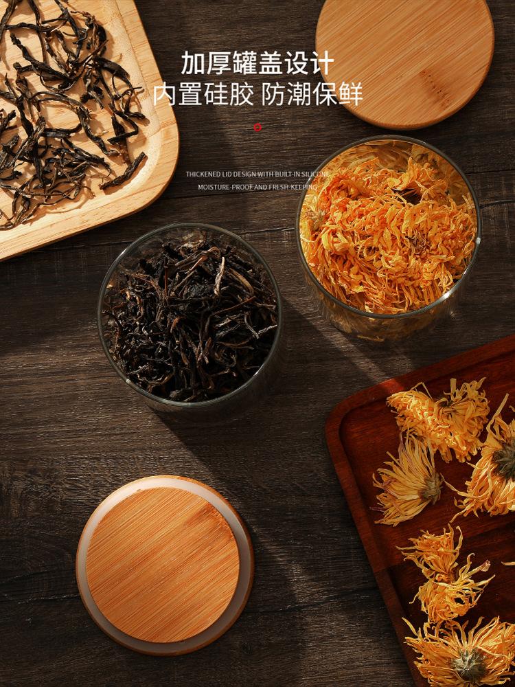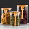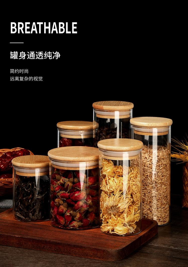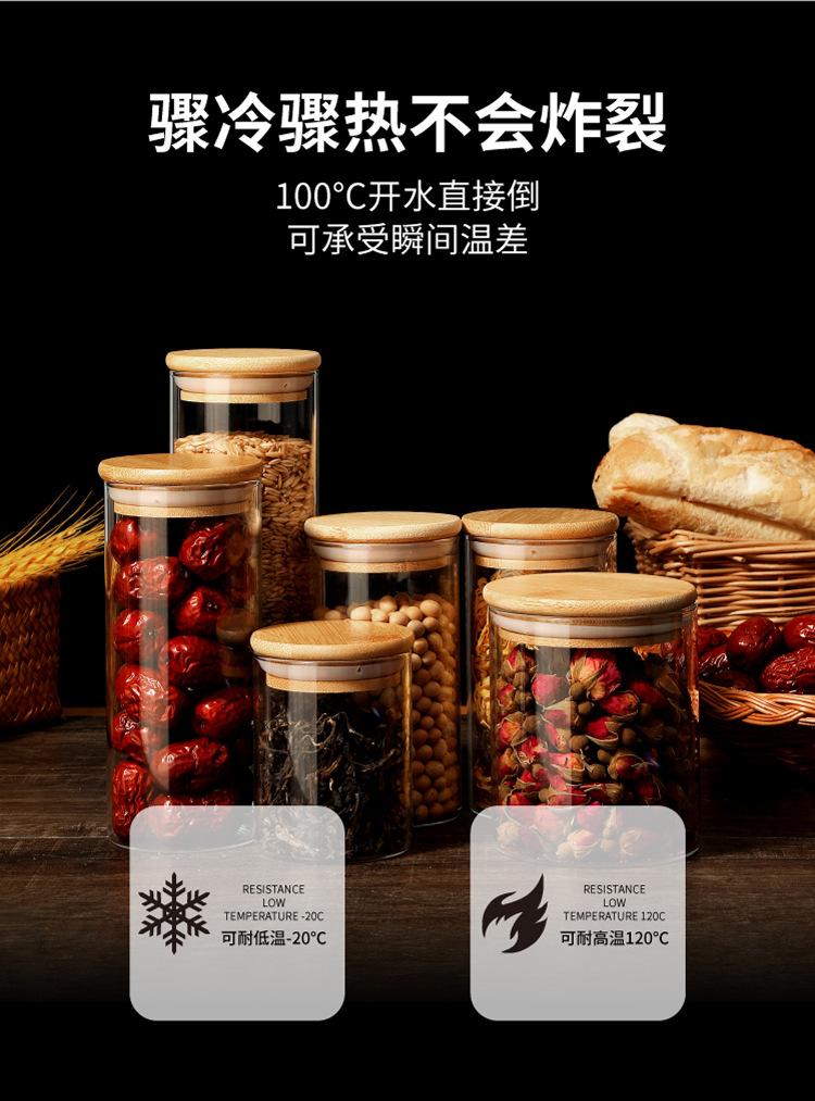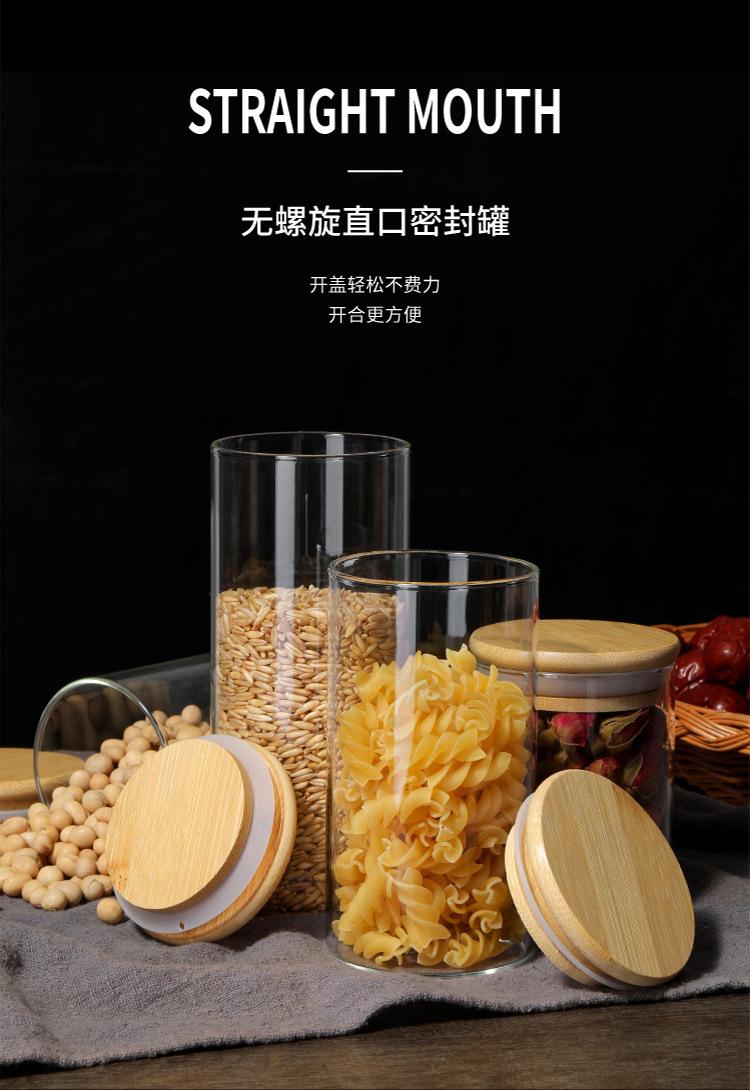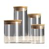 Frasco de vidrio con tapa redonda de bambú y sellado, de borosilicato alto, para almacenar café, té y frutos secos.