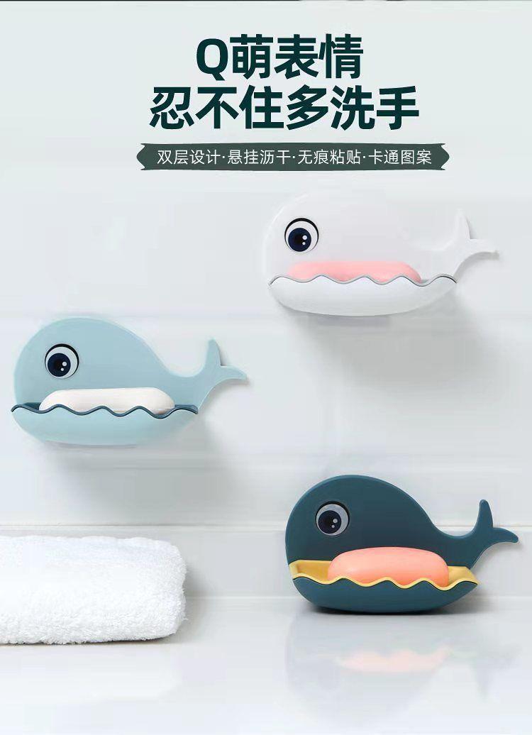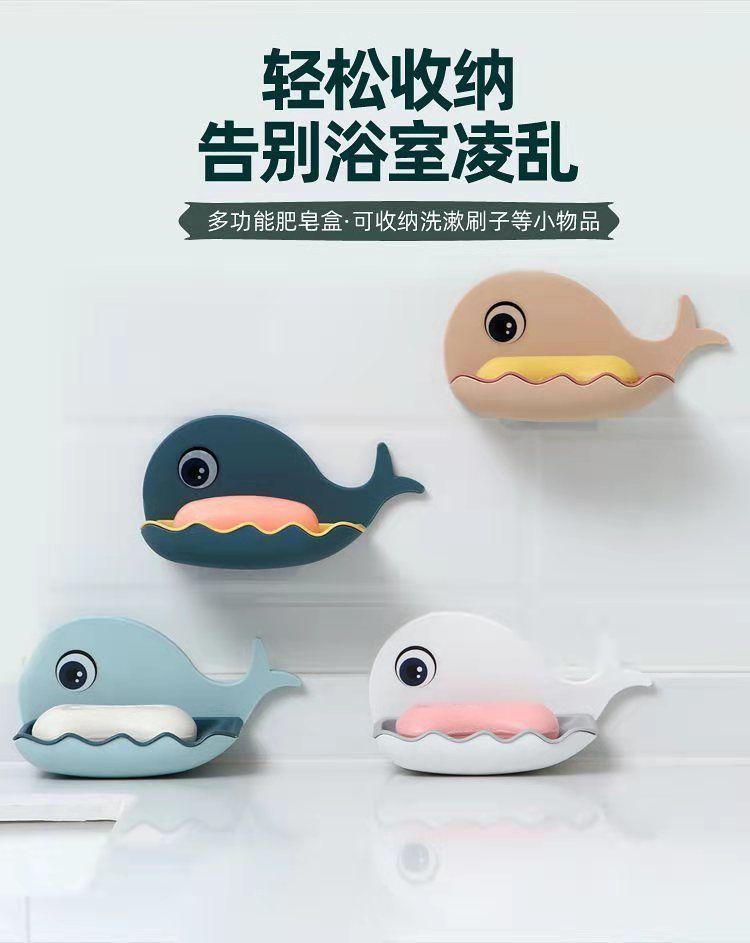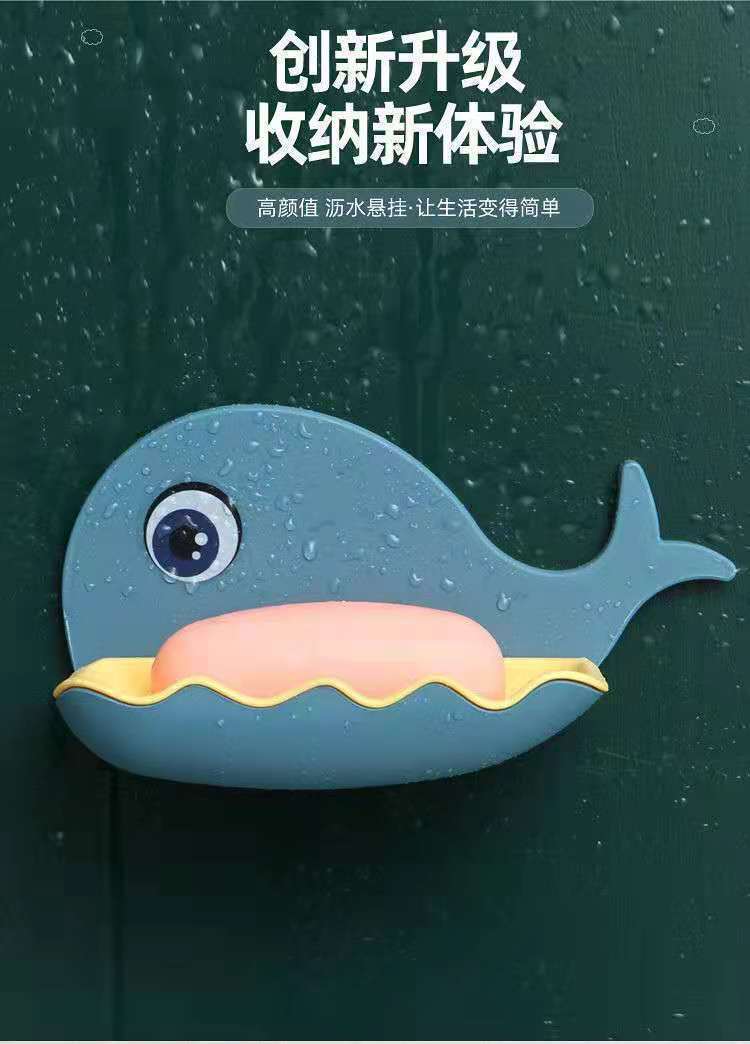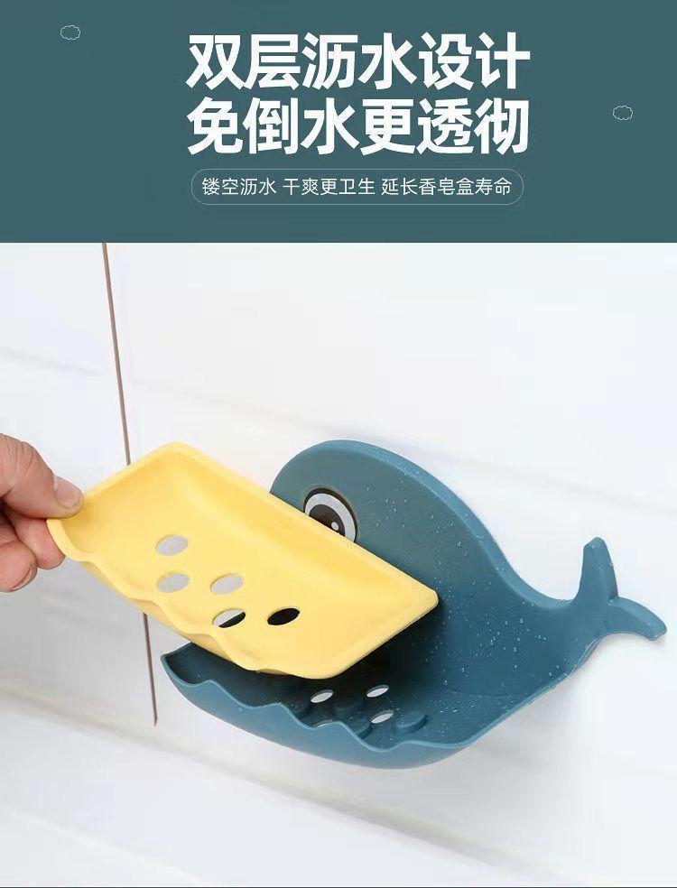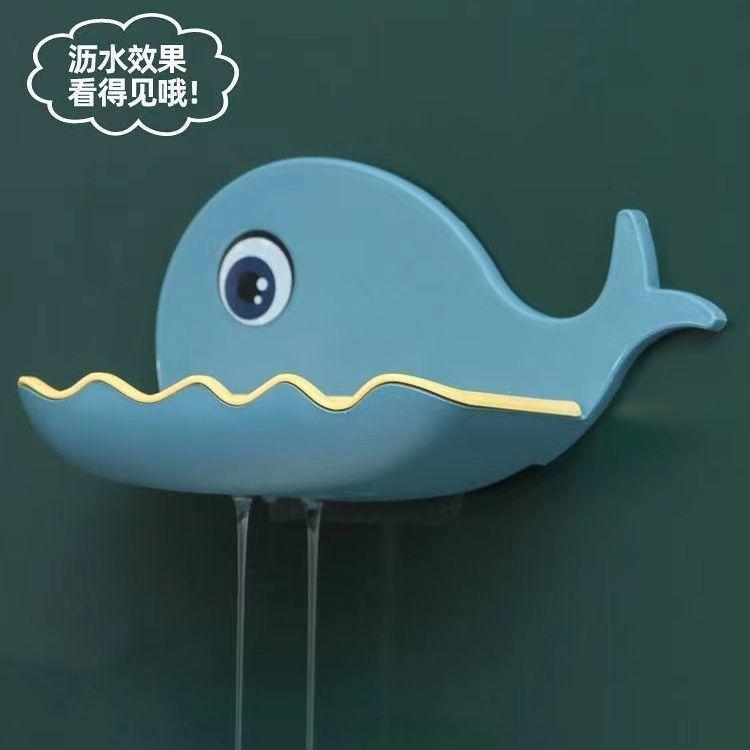 Jabonera con forma de ballena, bonita jabonera con ventosa para pared, sin perforaciones, para baño.