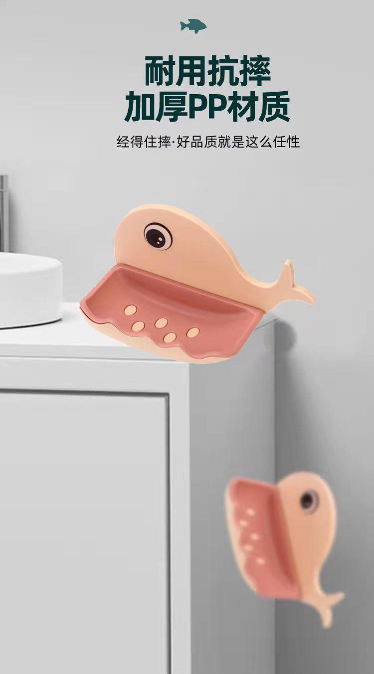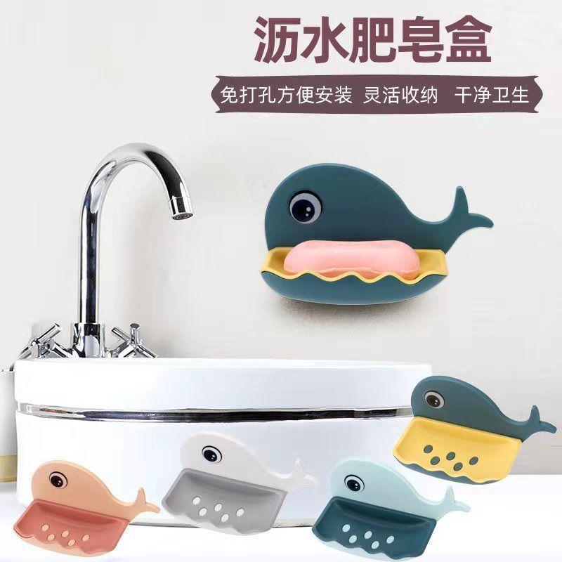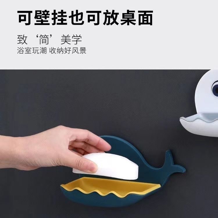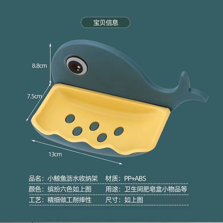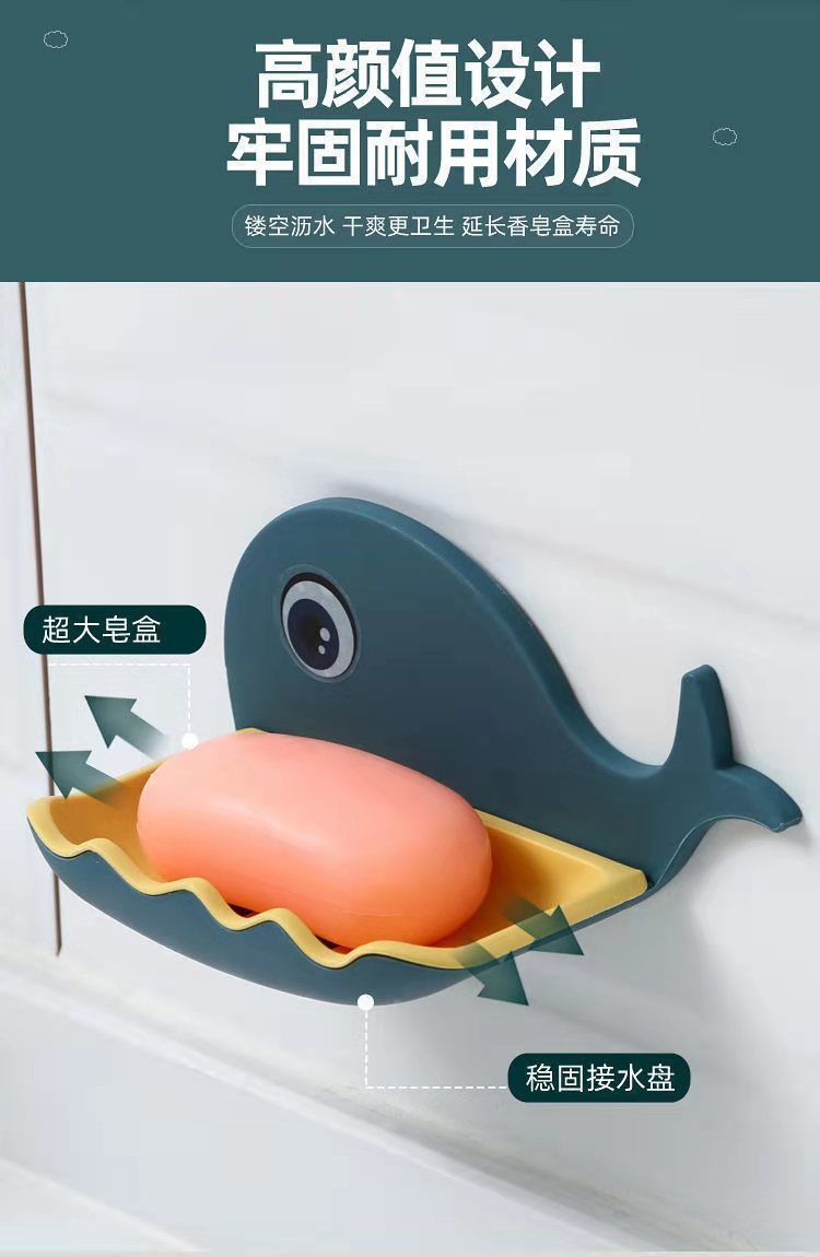 Jabonera con forma de ballena, bonita jabonera con ventosa para pared, sin perforaciones, para baño.