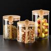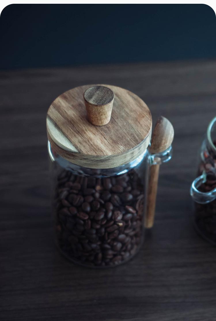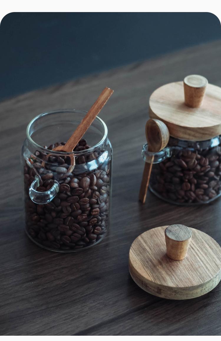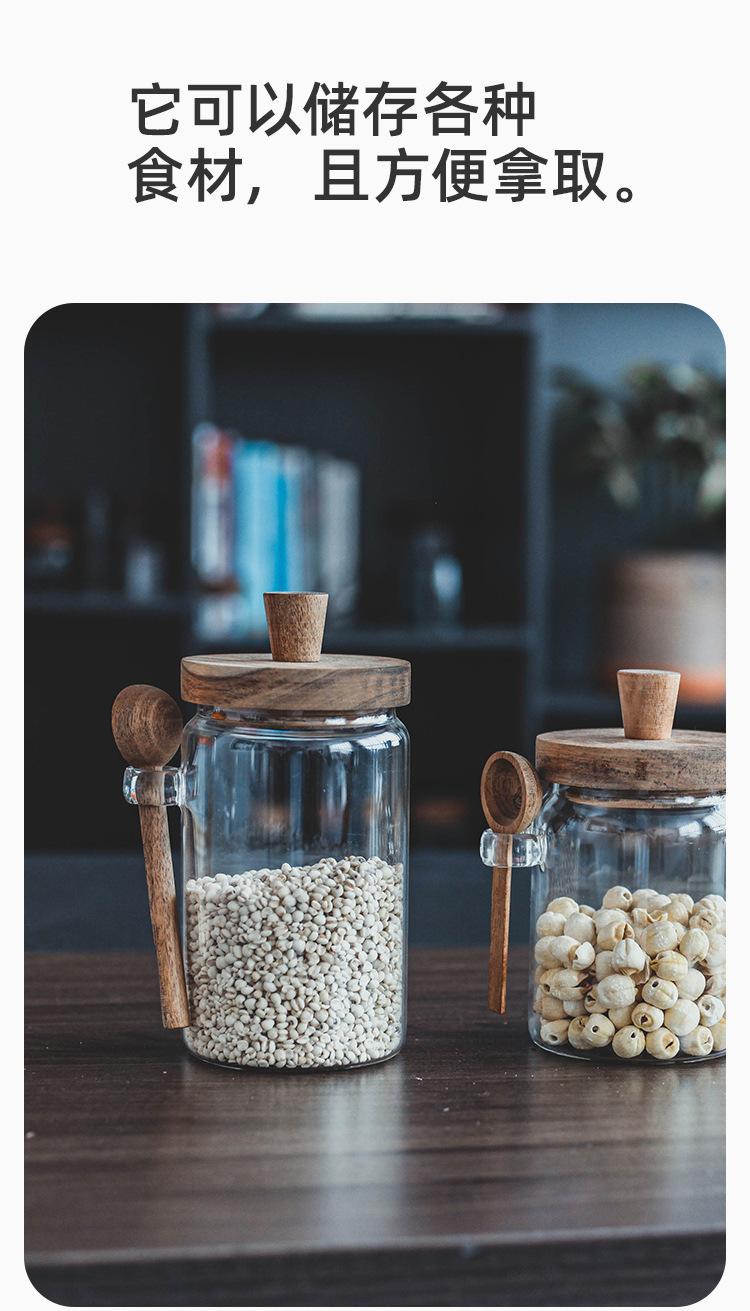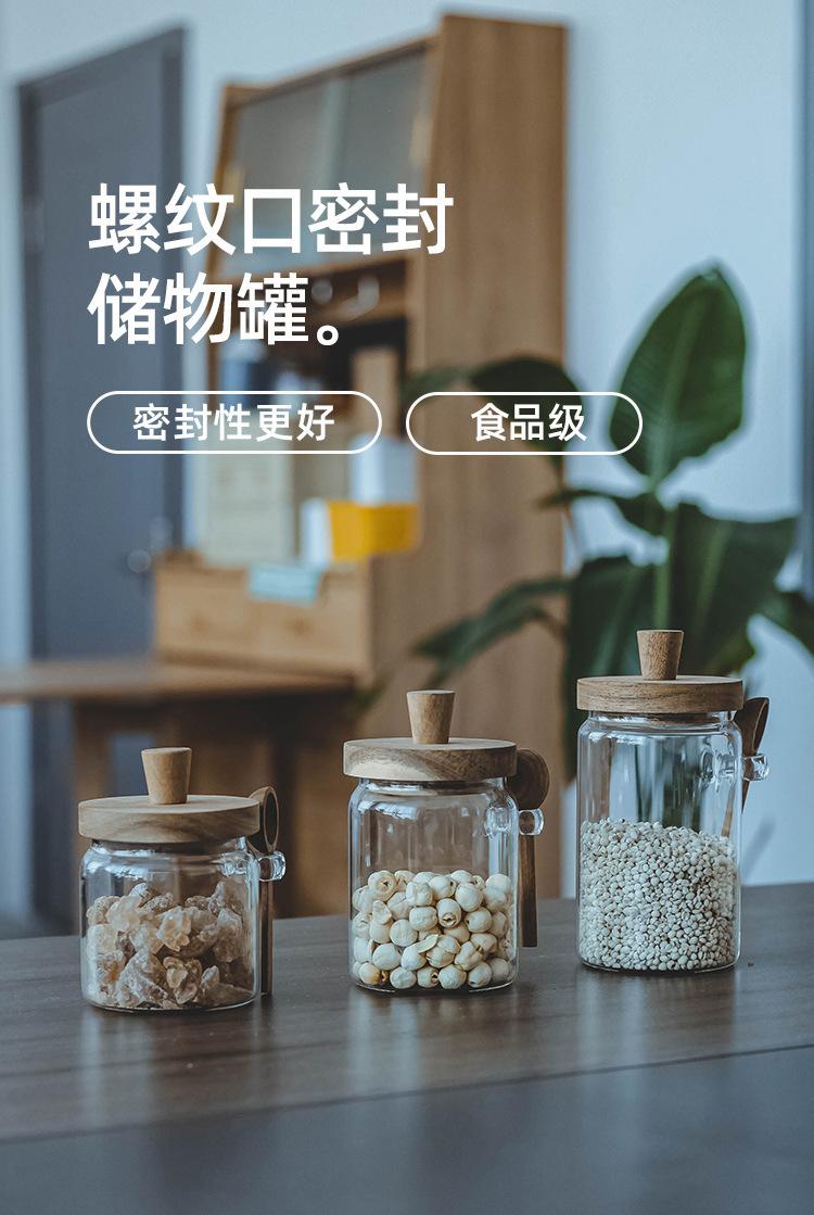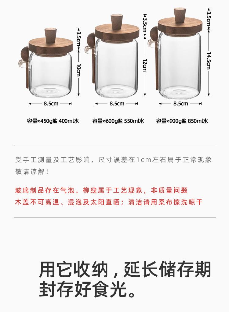 Tarro de condimentos de vidrio de borosilicato de alta calidad con tapa de madera y cuchara, recipiente sellado para almacenamiento en la cocina, frasco de condimentos a prueba de humedad