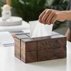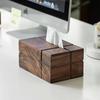 Caja de pañuelos de madera maciza de nogal negro cuadrada para sala de estar, caja de papel para mesa de centro, caja de almacenamiento de pañuelos de lujo ligero de alta gama