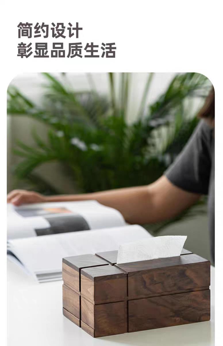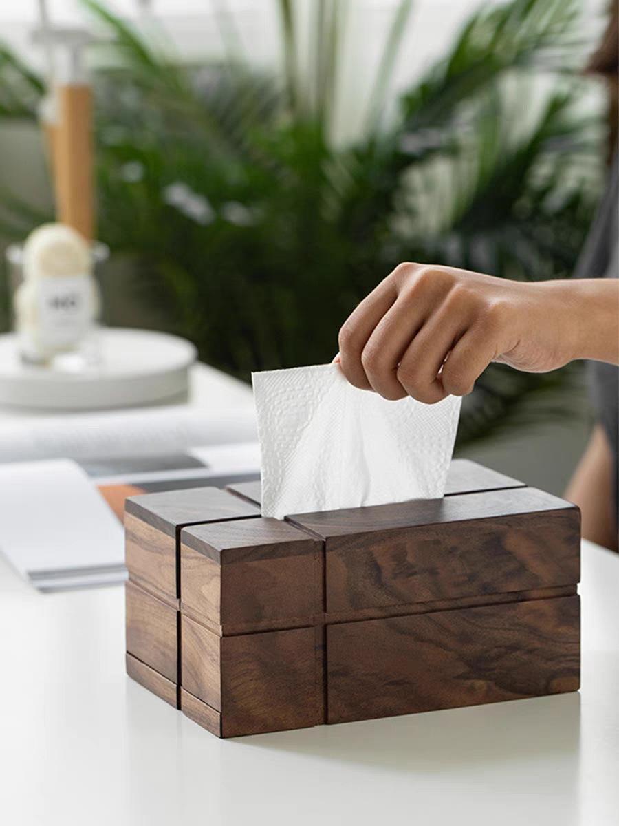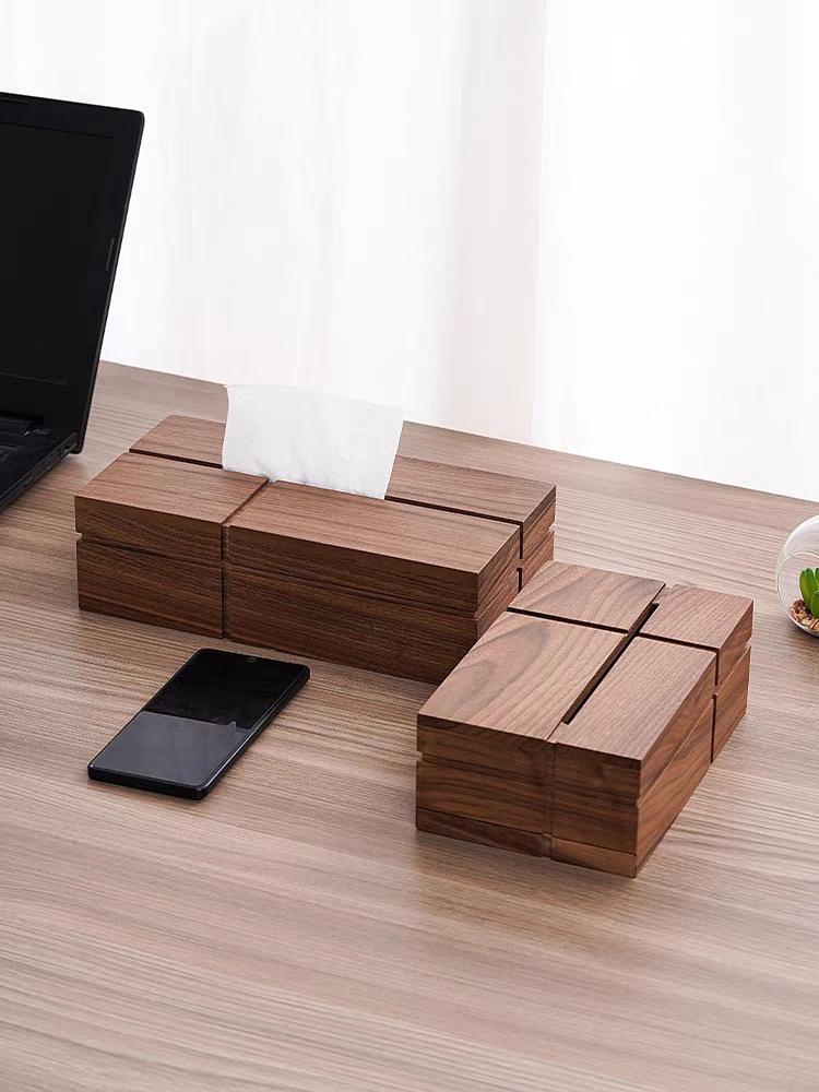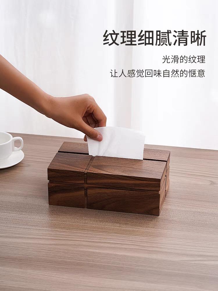 Caja de pañuelos de madera maciza de nogal negro cuadrada para el hogar, sala de estar, caja de papel, mesa de centro, caja de almacenamiento de pañuelos de lujo ligero de alta gama