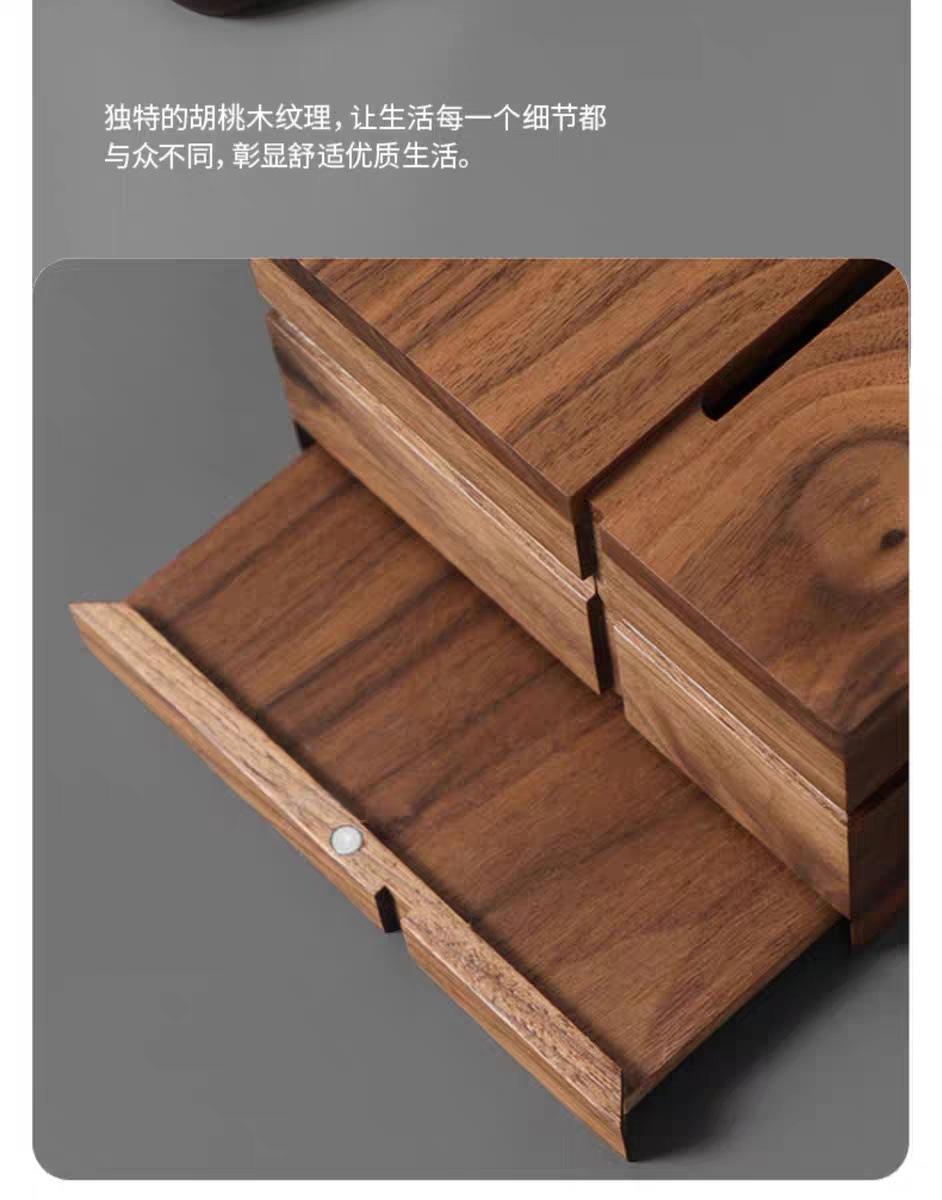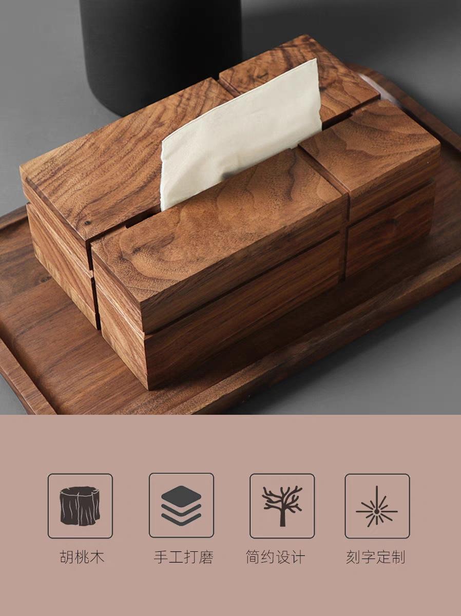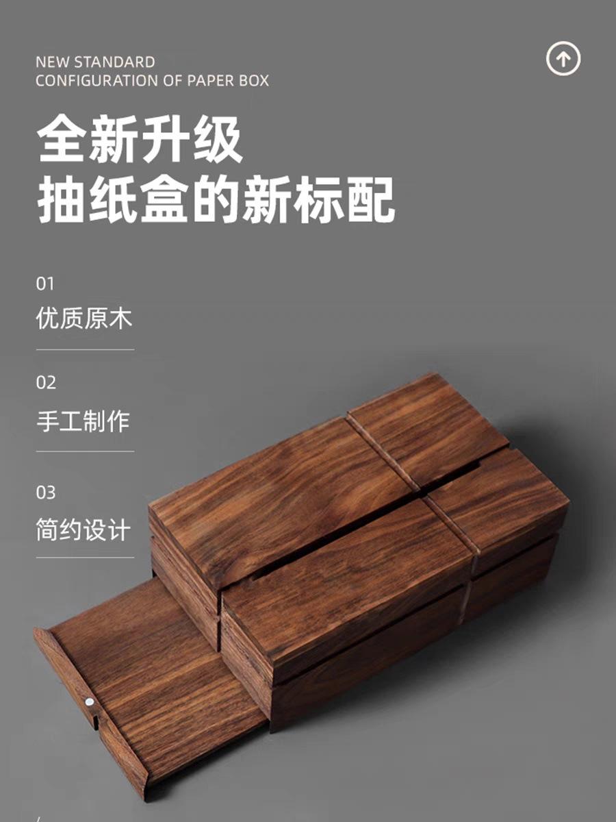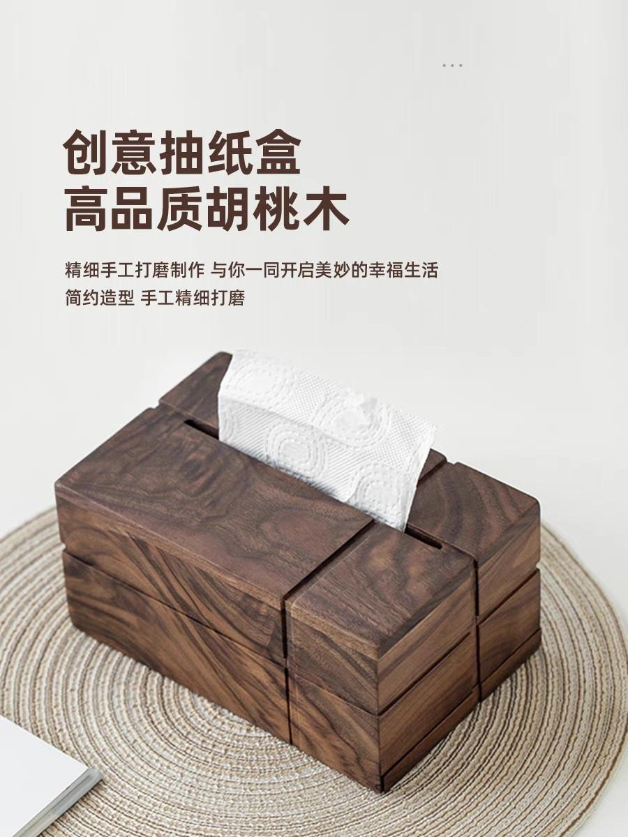 Caja de pañuelos de madera maciza de nogal negro cuadrada para el hogar, sala de estar, caja de papel, mesa de centro, caja de almacenamiento de pañuelos de lujo ligero de alta gama