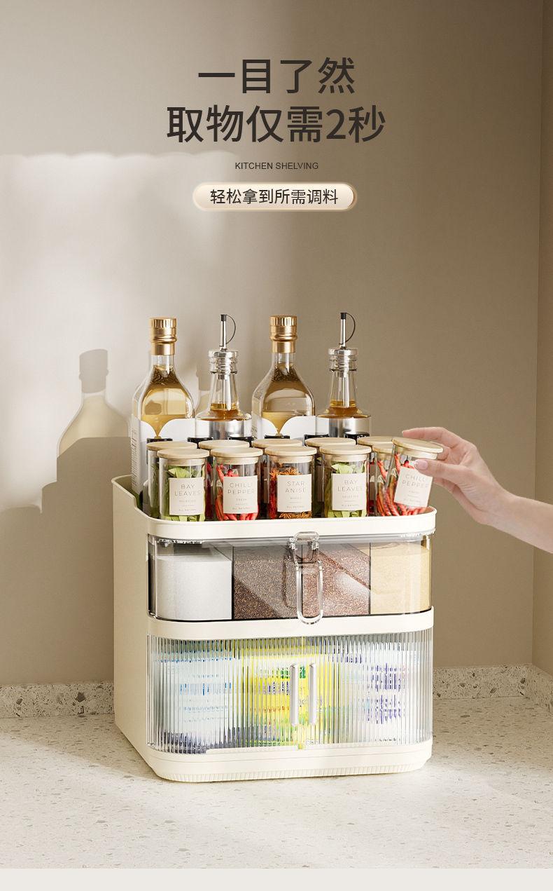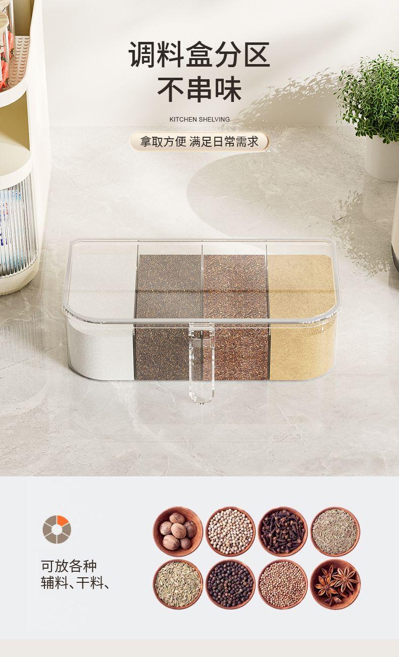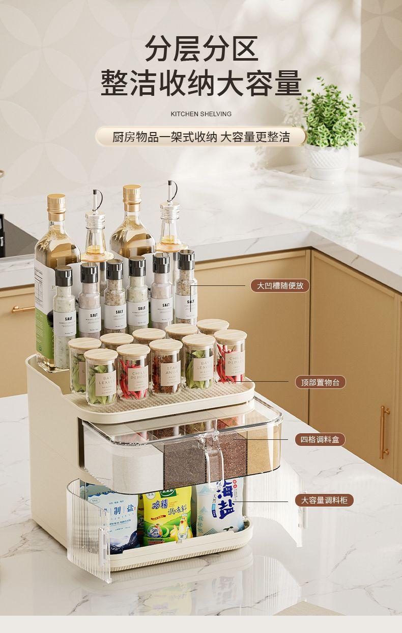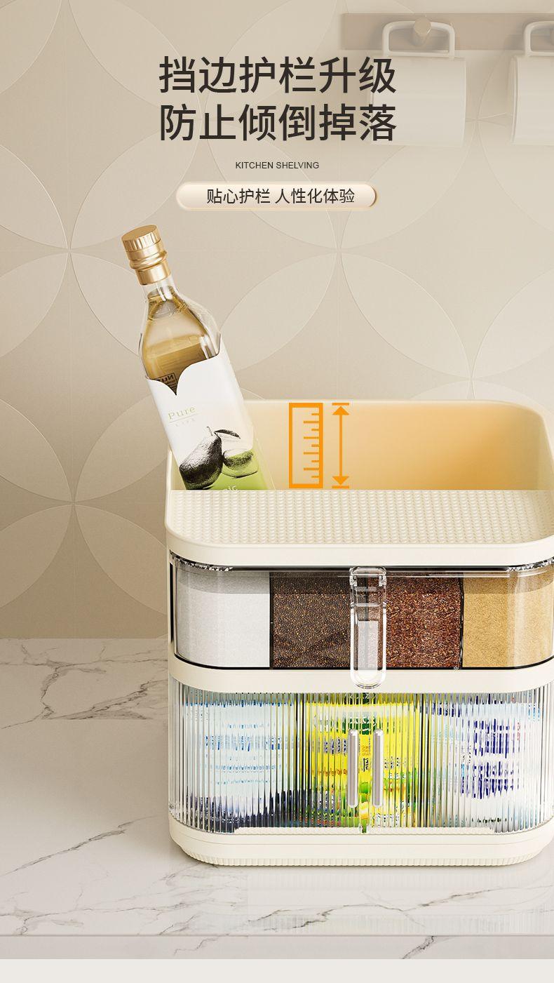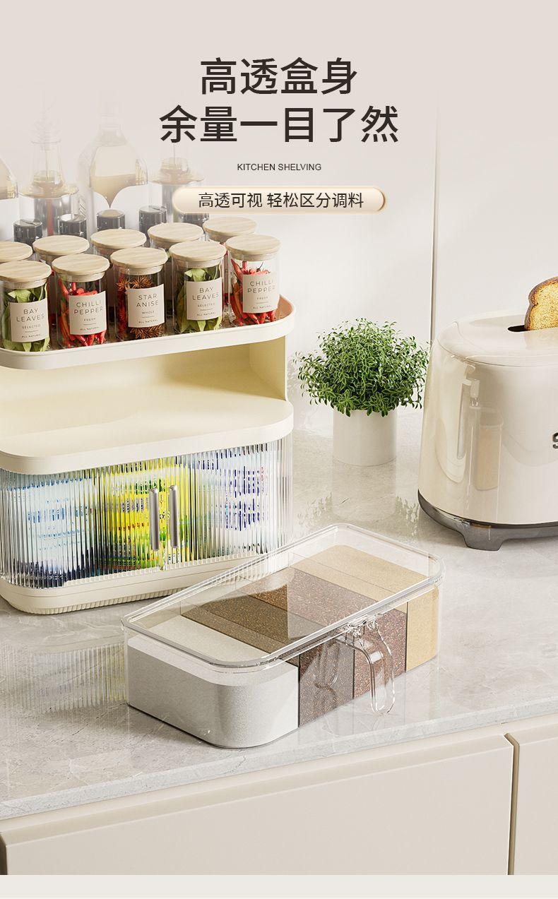 Caja de condimentos multifuncional de estilo crema para cocina, estante de almacenamiento de condimentos con compartimentos múltiples integrados
