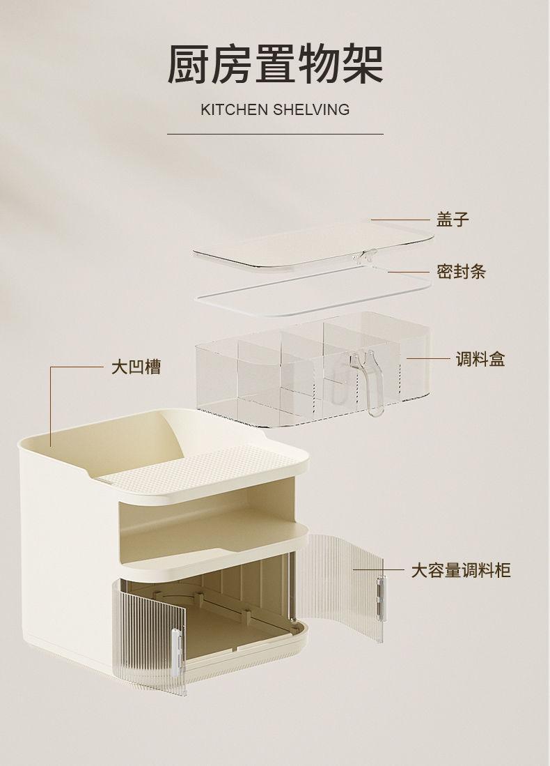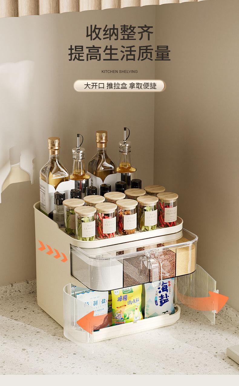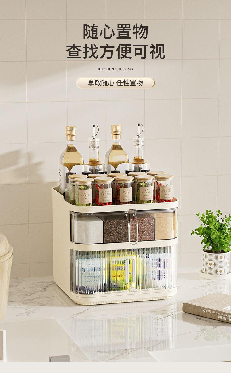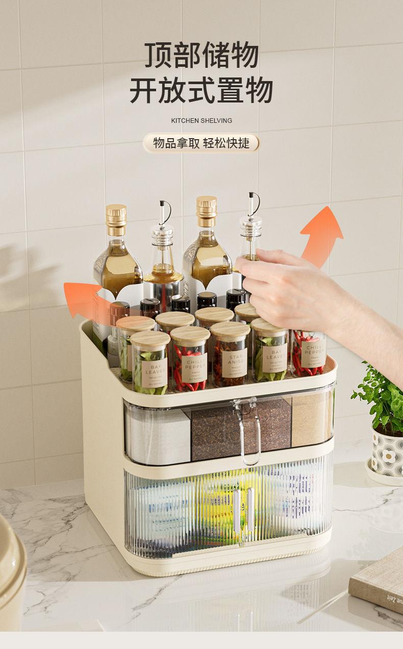Caja de condimentos multifuncional de estilo crema para cocina, estante de almacenamiento de condimentos con compartimentos múltiples integrados