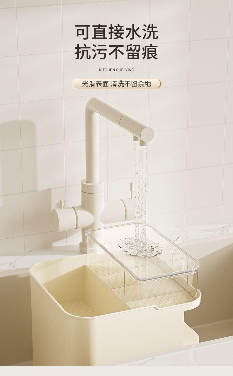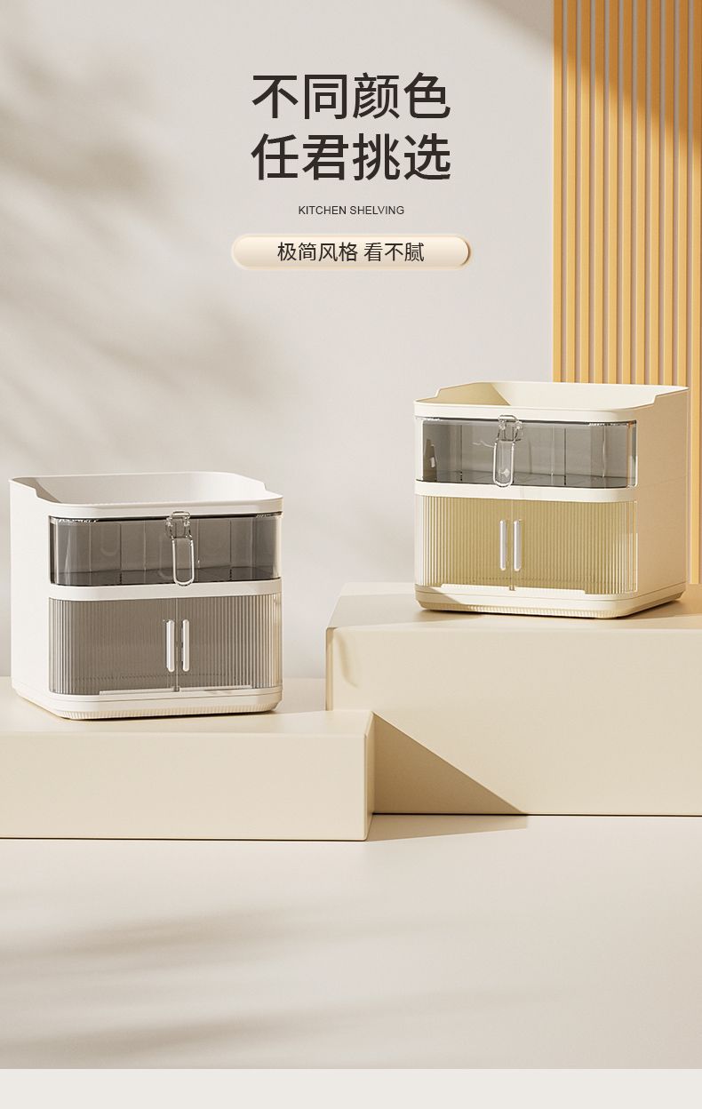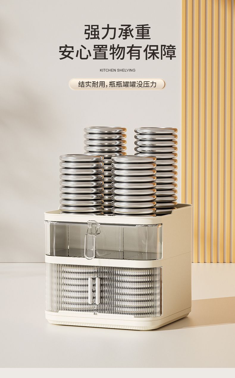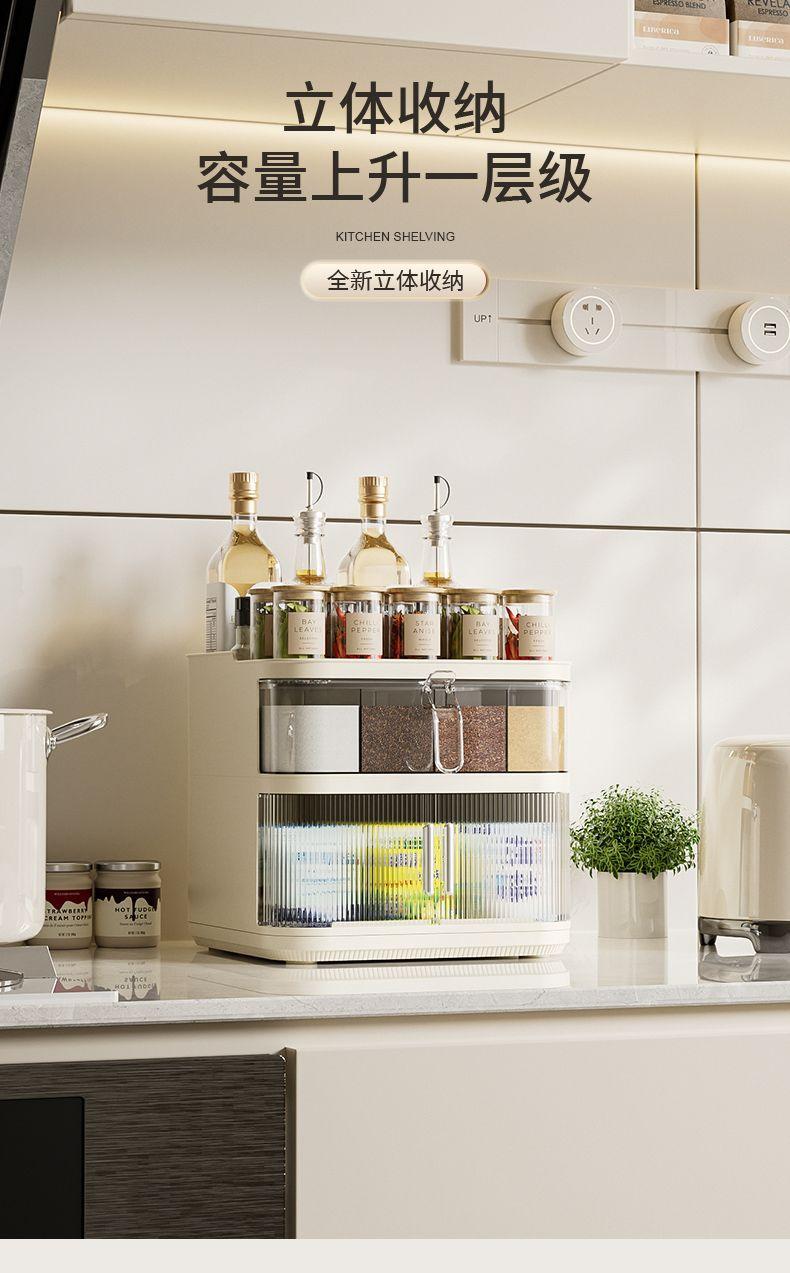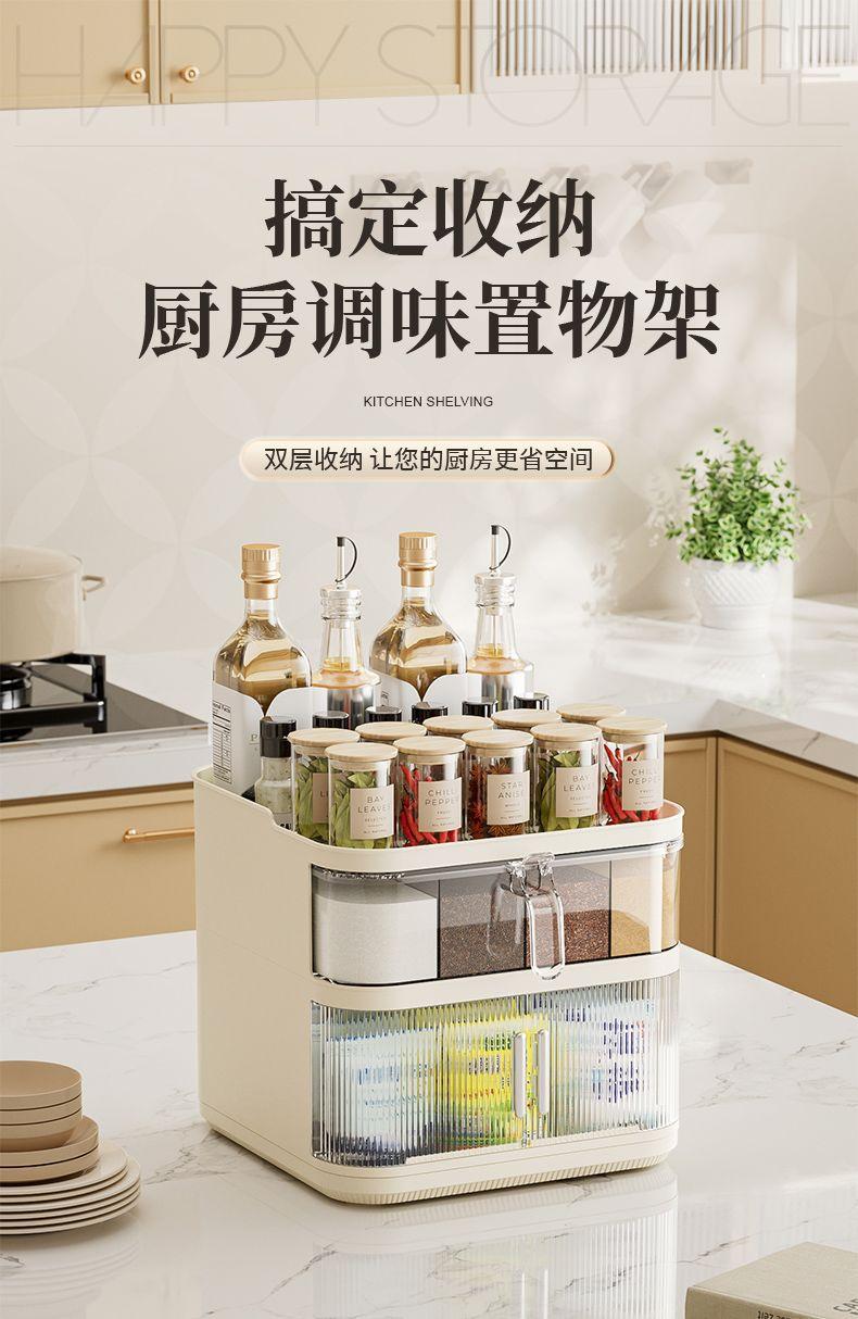 Caja de condimentos multifuncional de estilo crema para cocina, estante de almacenamiento de condimentos con compartimentos múltiples integrados